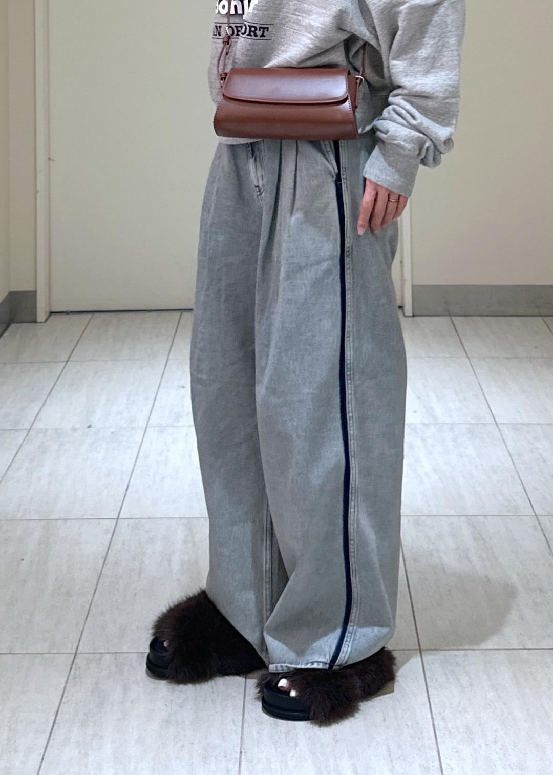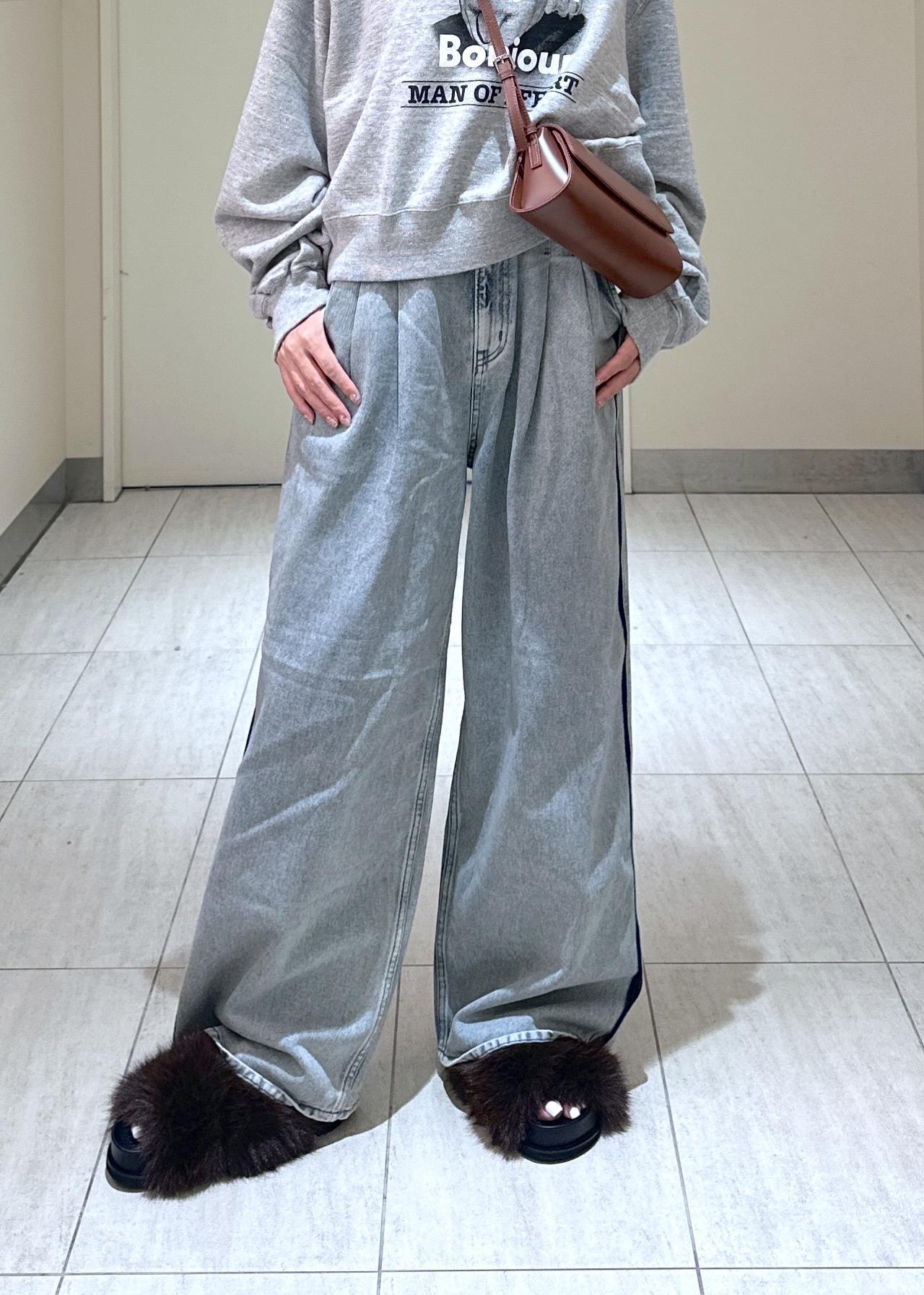 ドレスデニムパンツは新色が先日発売になり、試着してみたら前よりも長くなっていて36サイズでもいい長さで履くことが出来ました◎165cmで腰で落としてこの感じです!