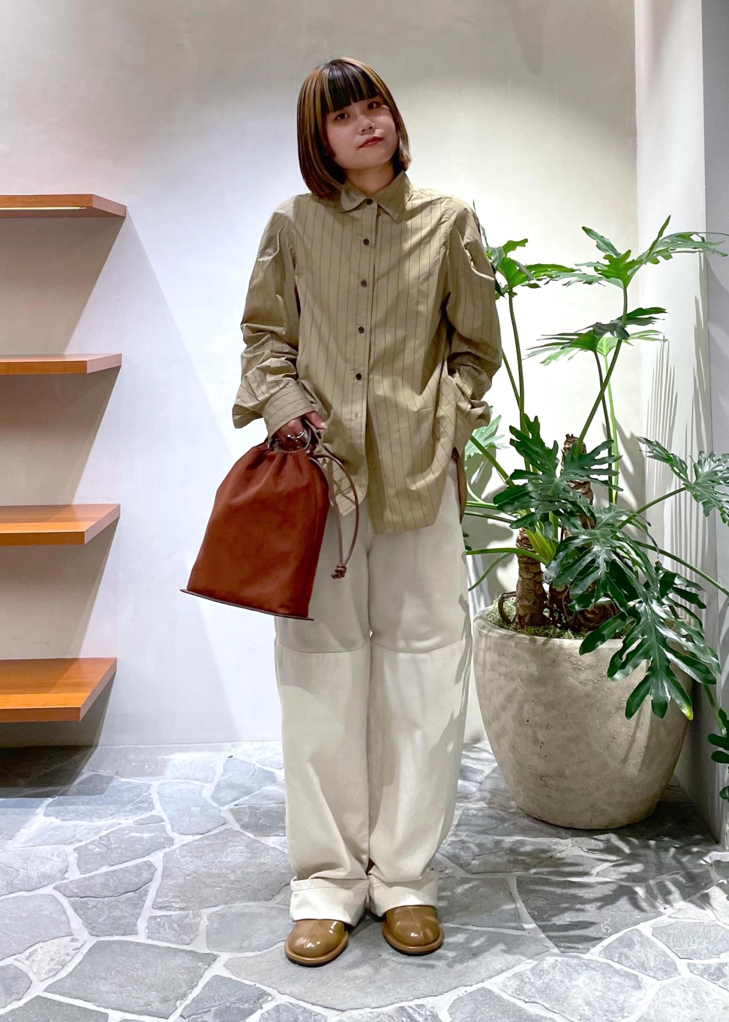 袖にタックが入っていてボリュームがあるので、羽織りだけでなくボタンを閉めてもメンズっぽくなりにくいです。 -