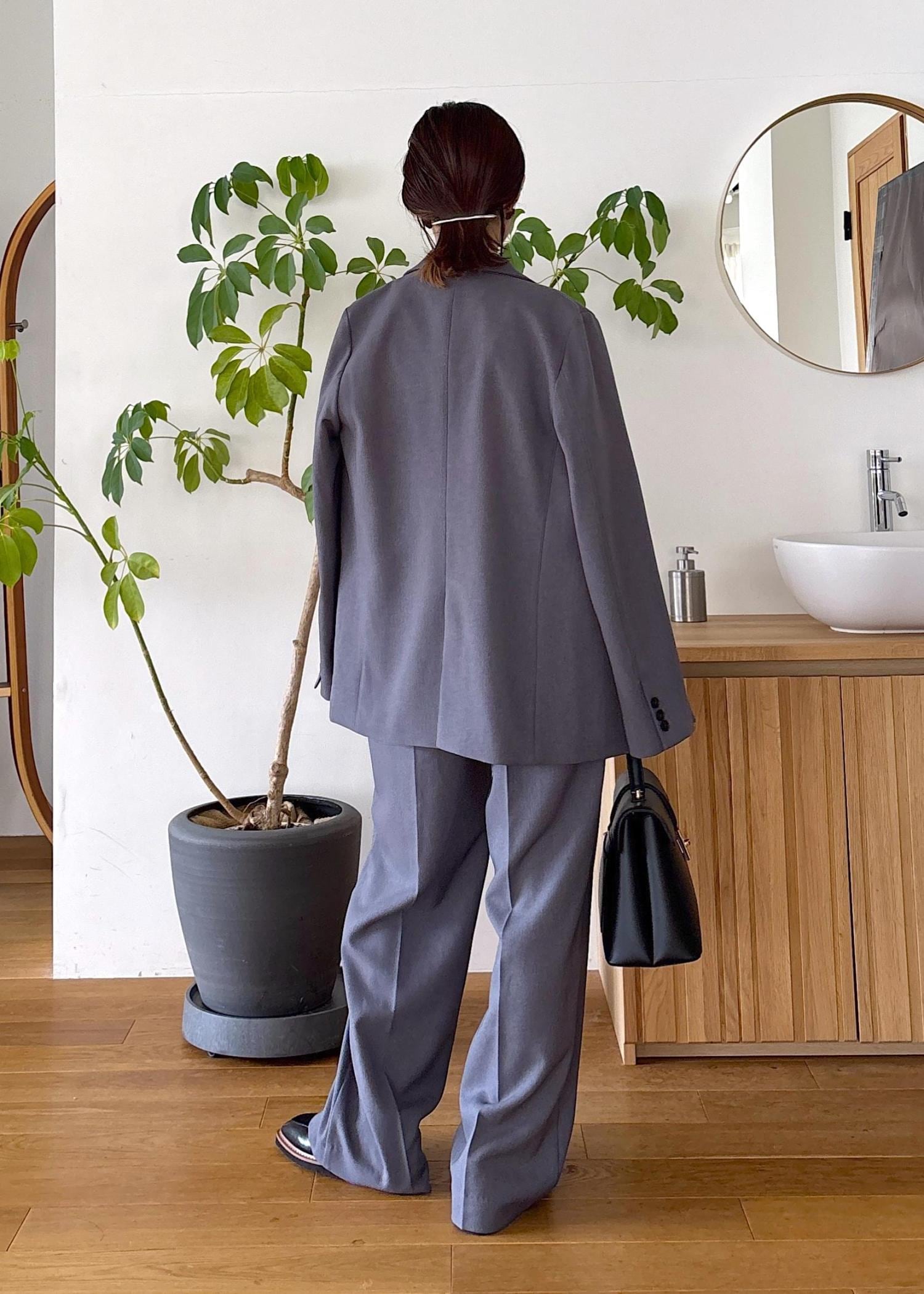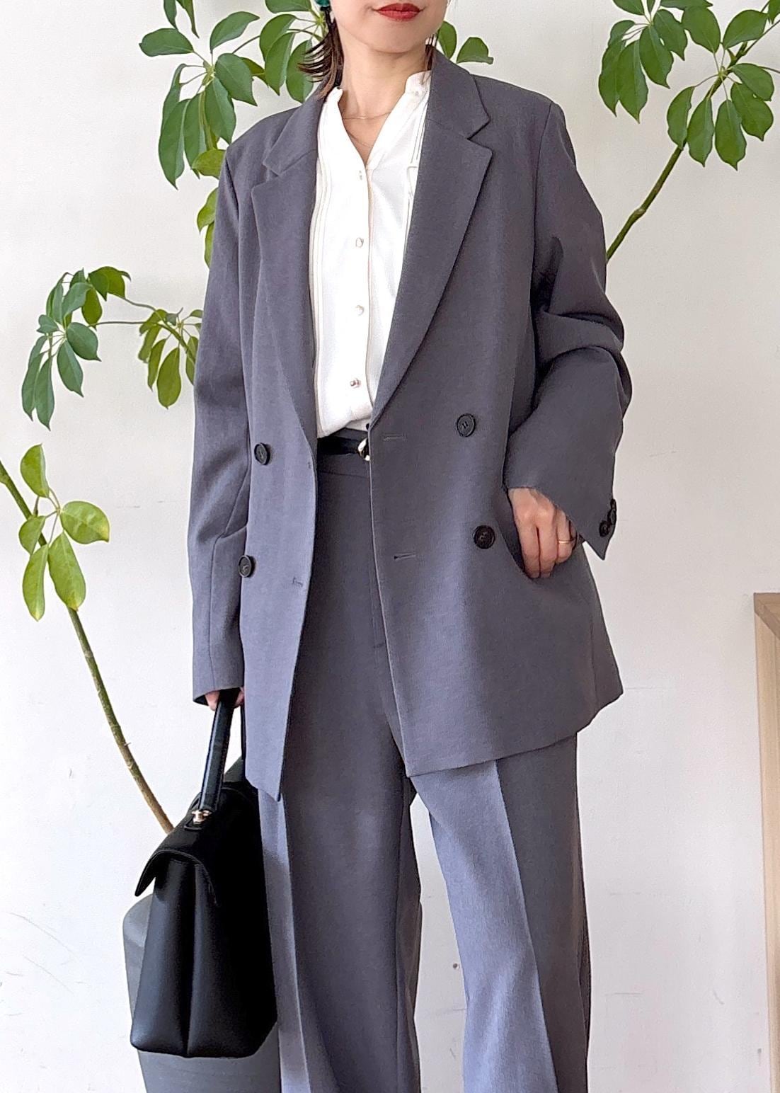 VIS【美easy】ウーリッシュダブルブレストテーラードジャケット【セットアップ対応/洗える】グレー / M¥8,899レビュー人気シリーズ「美easy」の秋冬バージョンのジャケット♪程よいハリのある生地ですがさらっとした着心地でとても着やすいです。裏地がついているので袖も通しやすく、折り返すとストライプ柄が見えるのもさりげないオシャレ感◎全体的に程よくゆったりめ、着丈はお尻が隠れるくらいの長さでした。