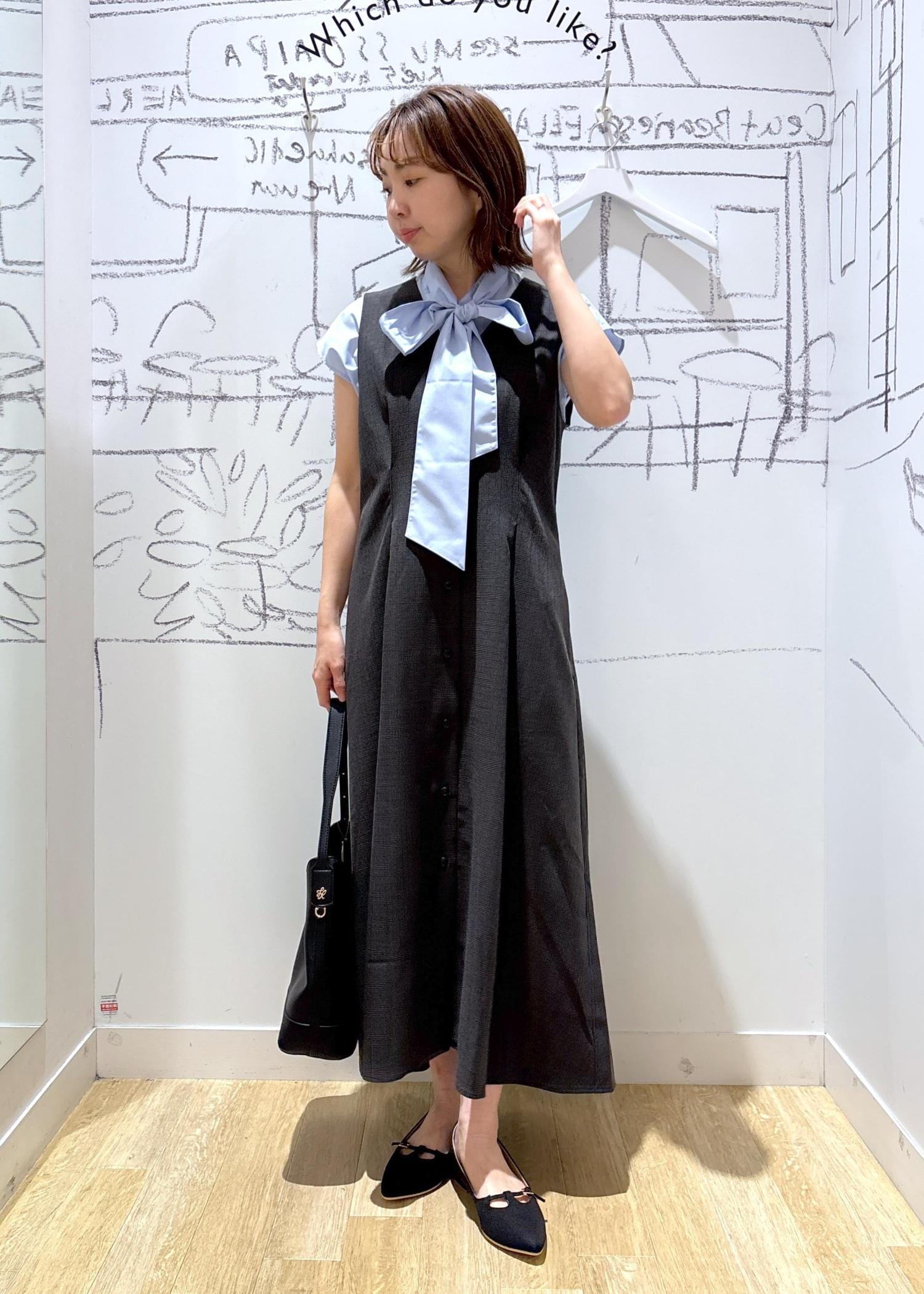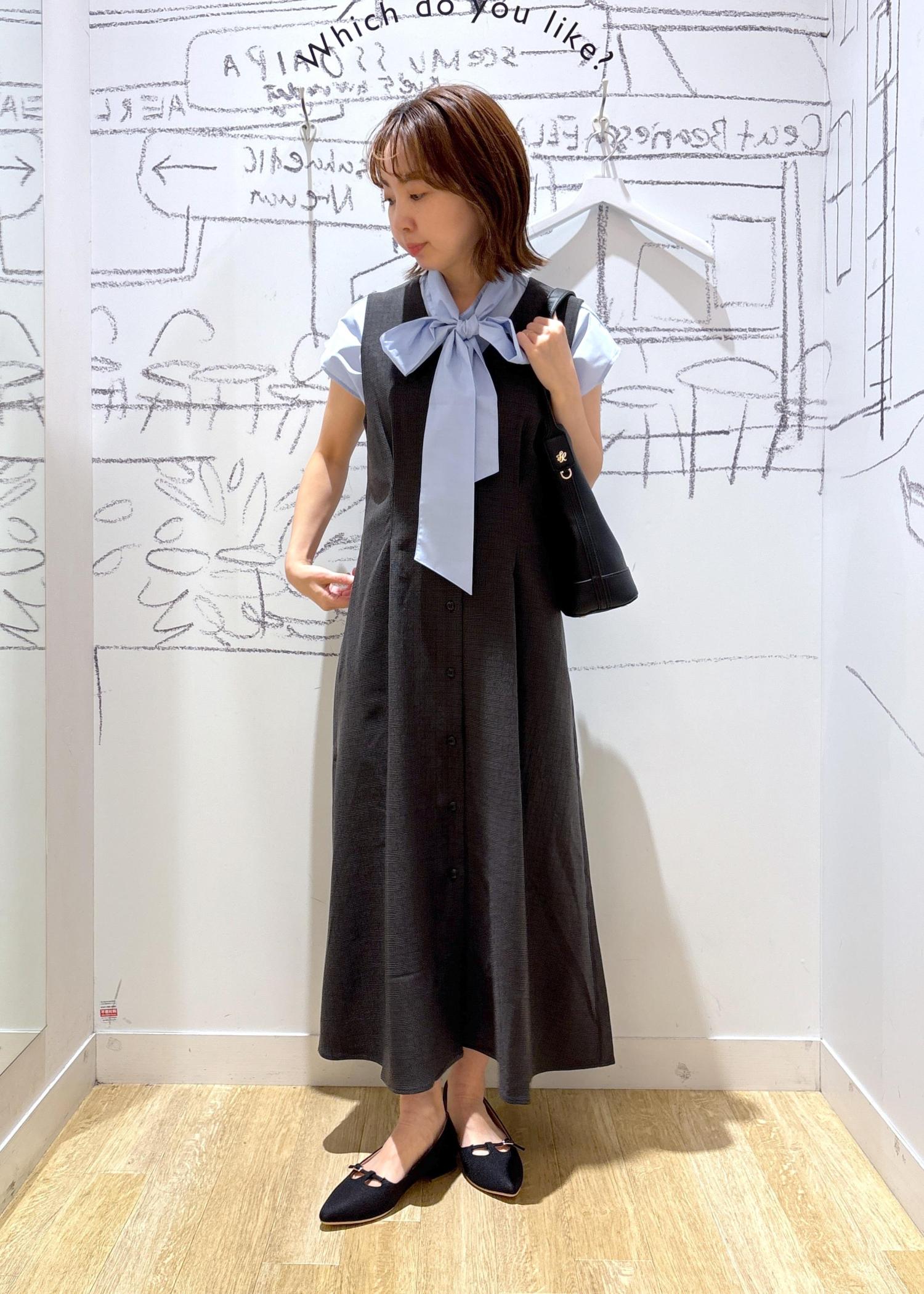 胸元のリボンが女性らしい印象に。 -