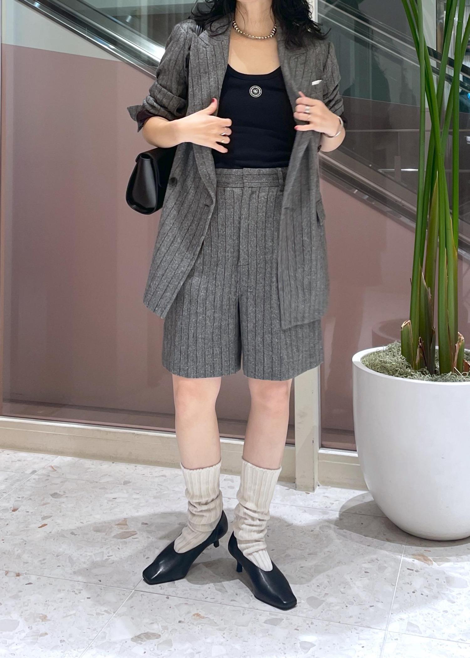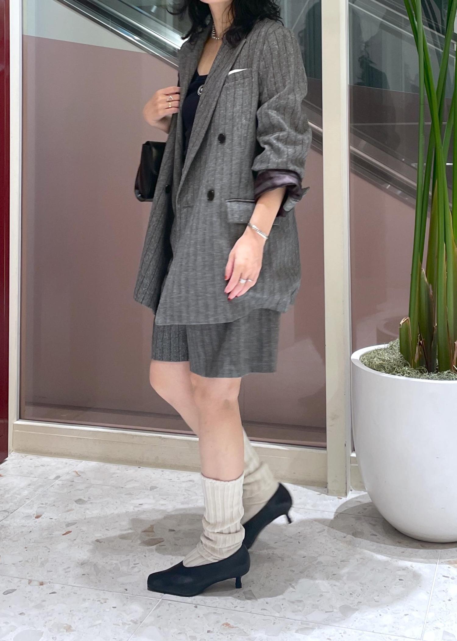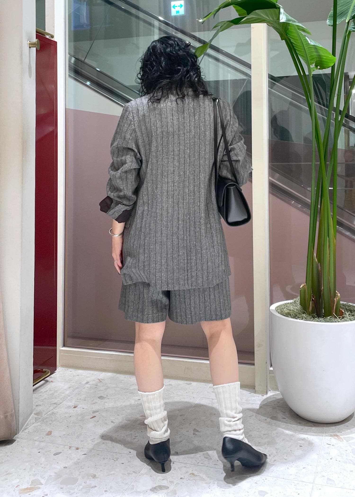 リアバイしたツィードジャケットを、同素材のショートパンツとセットアップで着てみました。