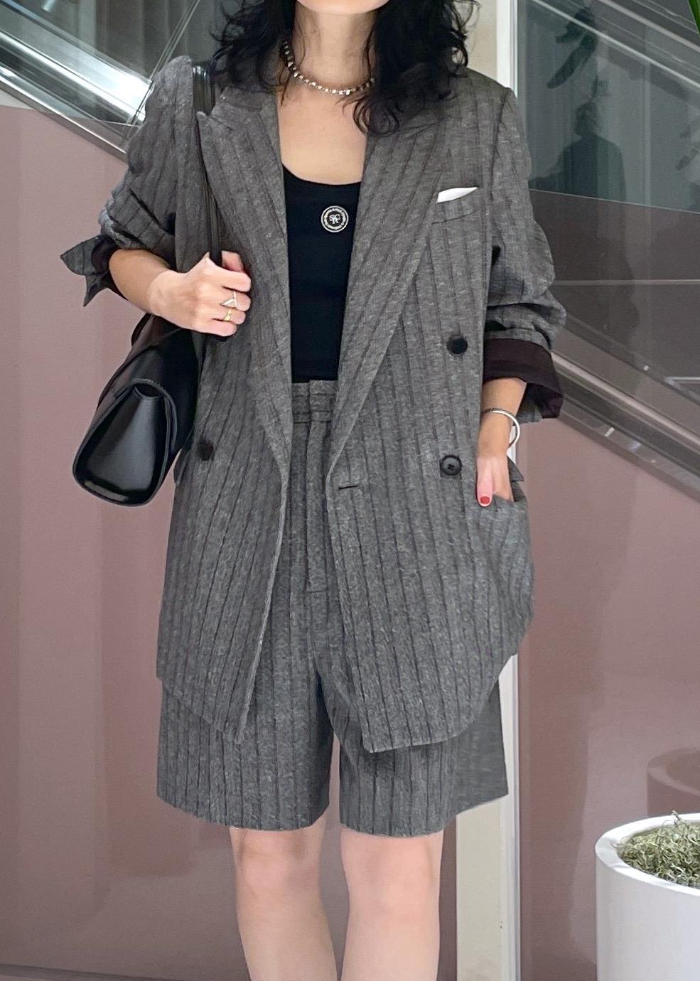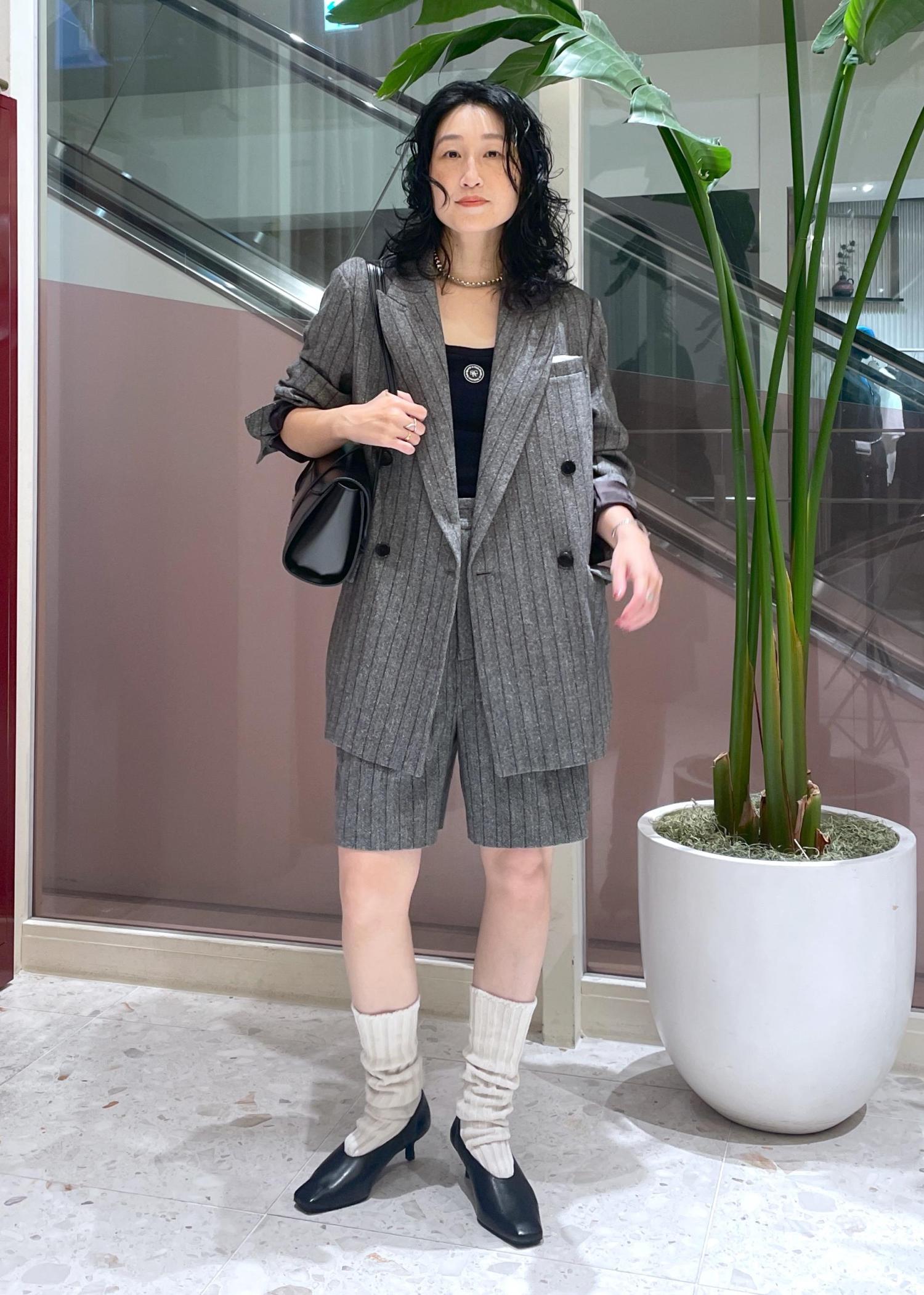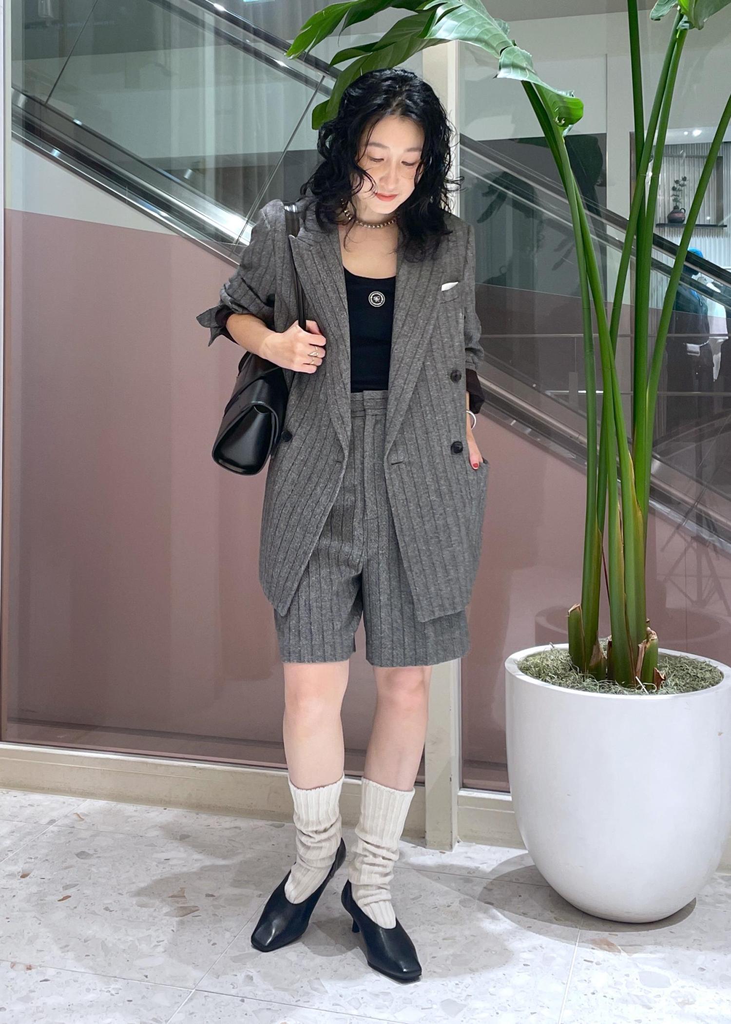 リアバイしたツィードジャケットを、同素材のショートパンツとセットアップで着てみました。