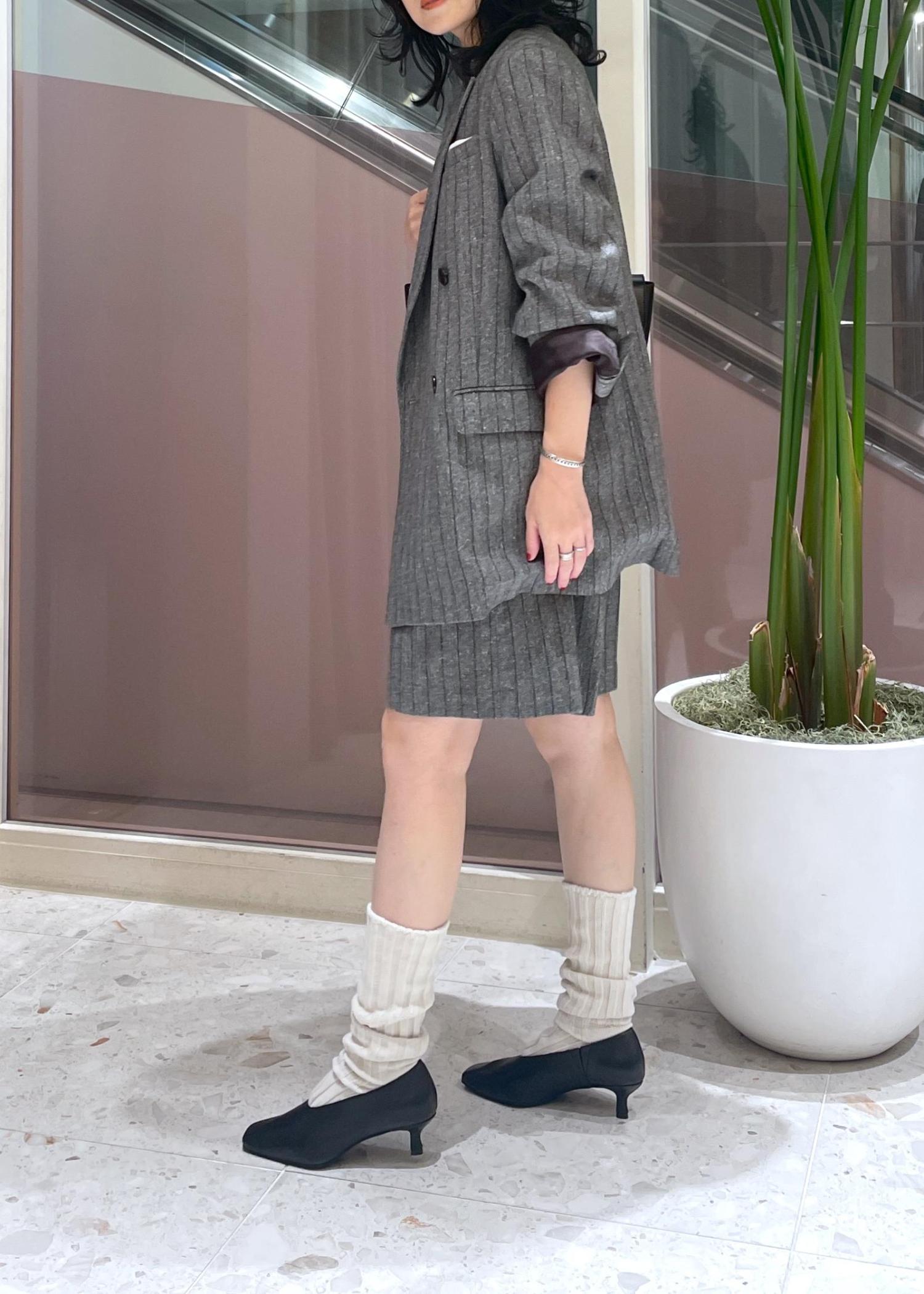 オーバーサイズのジャケットに、コンパクトなパンツの丈感がベストバランスです。