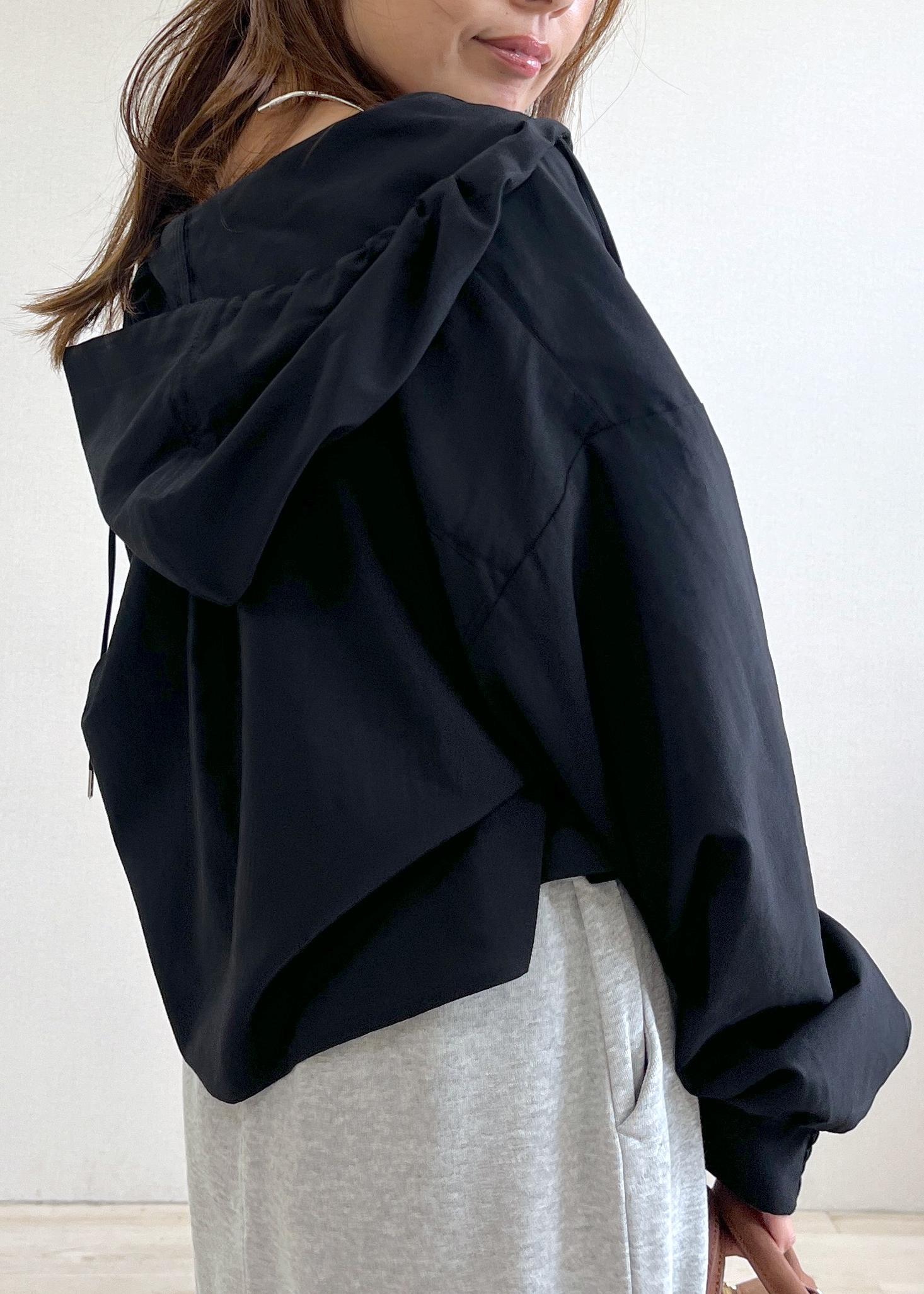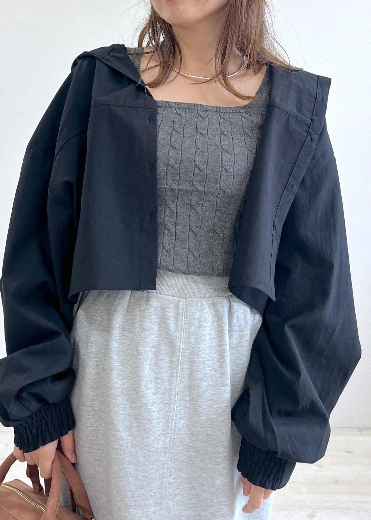 VISフード付きクロップドシアーシャツブラック / F¥3,953レビュー152cmで腰にかかるくらいのやや短め丈。とっても柔らかい素材で着心地◎オーバーサイズですが、オチ感があるので横に広がりすぎません。そのまま着ても羽織のインナーにレイヤードするのもお勧めです。ややシアー素材なので、重く見えすぎずまだまだ暑いこの時期の羽織りとしても◎