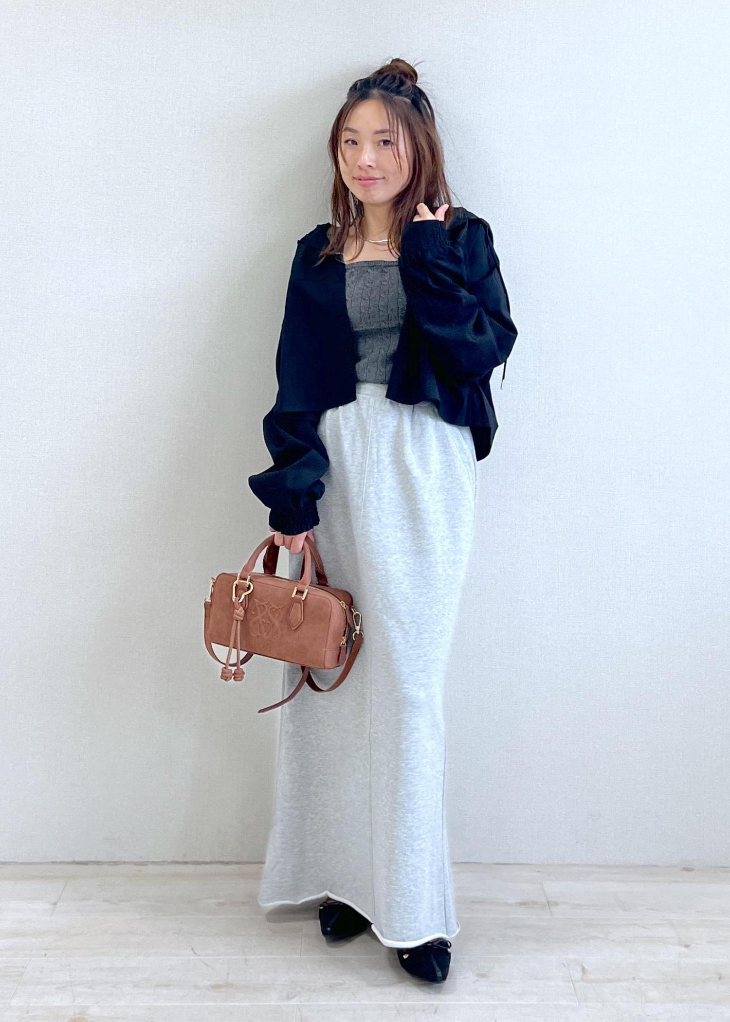 抜け感ブラック×やわらかグレーの大人カジュアル