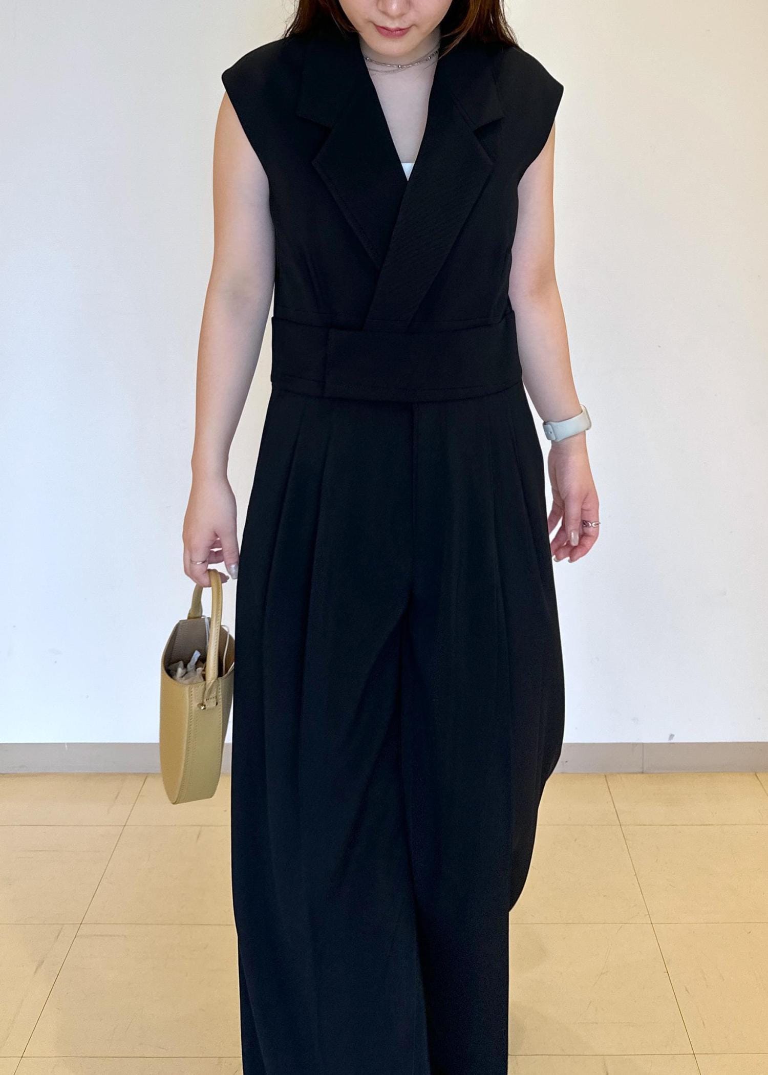 EMOELLE【EMOELLE】スリーブレスオールインワン カルゼブラック / 36¥49,500レビューとっても形の綺麗なオールインワンです!着るだけで女性らしさもありつつかっこよさも出してくれる嬉しいアイテムです。インナー変えるだけで幅広い季節で着ていただけます◎
