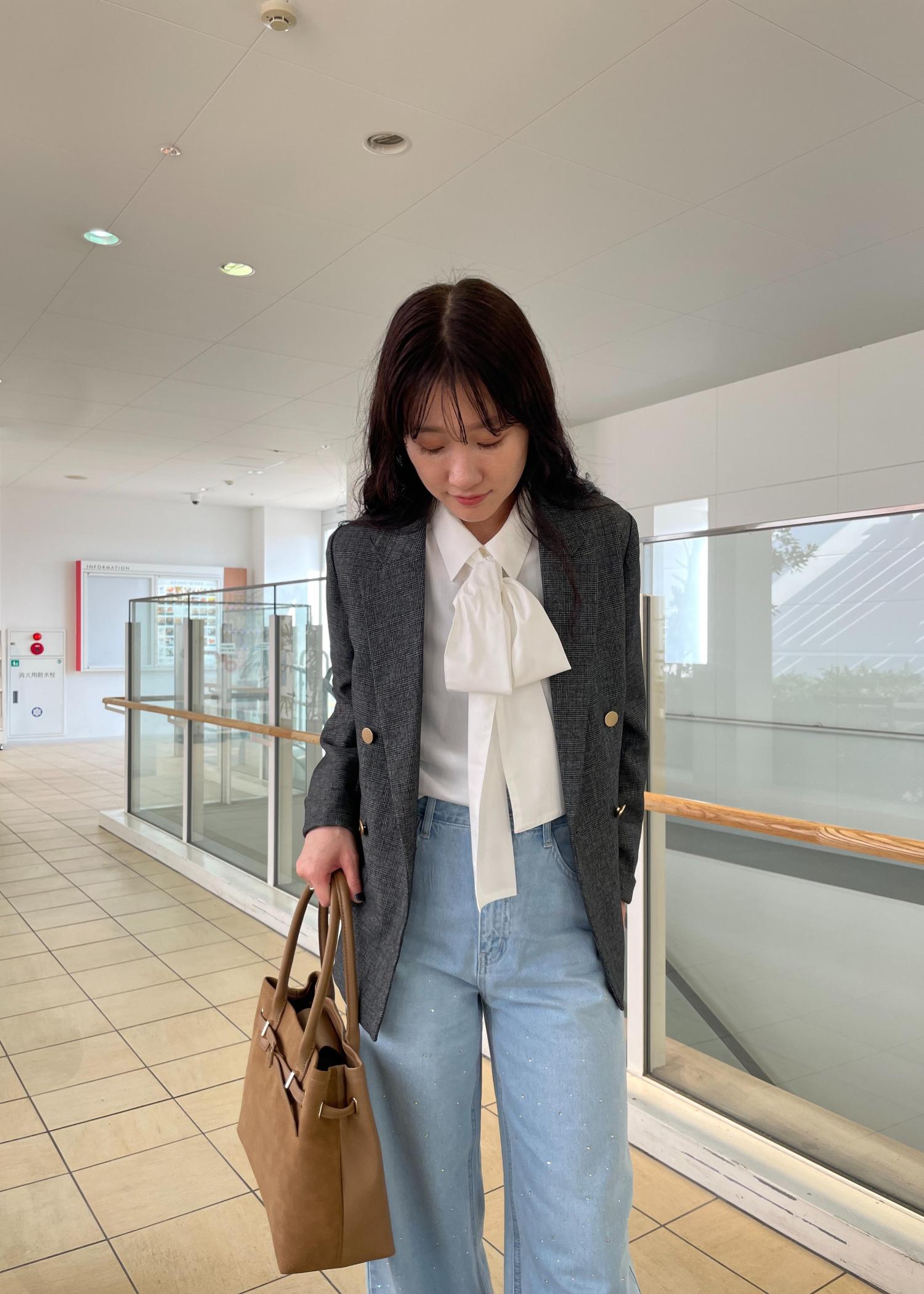 リボン付きシャツを合わせれば