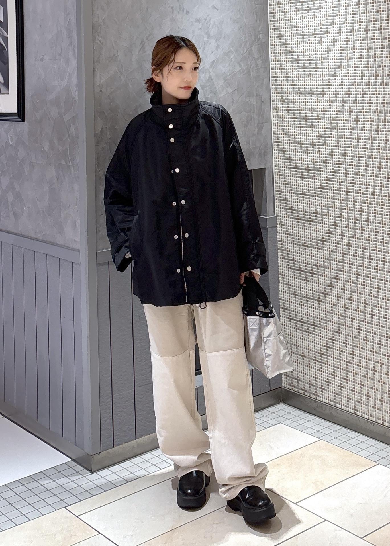 着丈の長すぎないコンパクトさ、コクーン型になっているシルエットなど、どんなボトムとも合わせやすい万能アウターです!