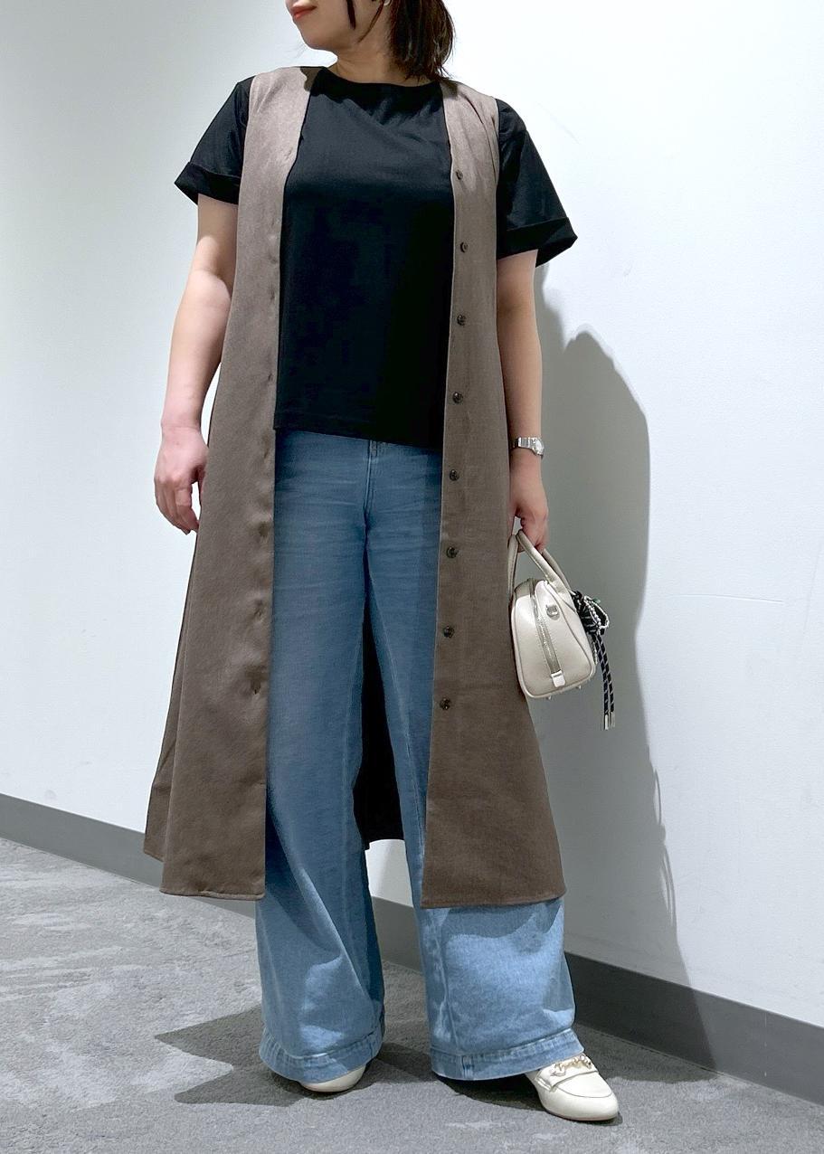 ウエストタックジャンパースカート× デニムワイドパンツ