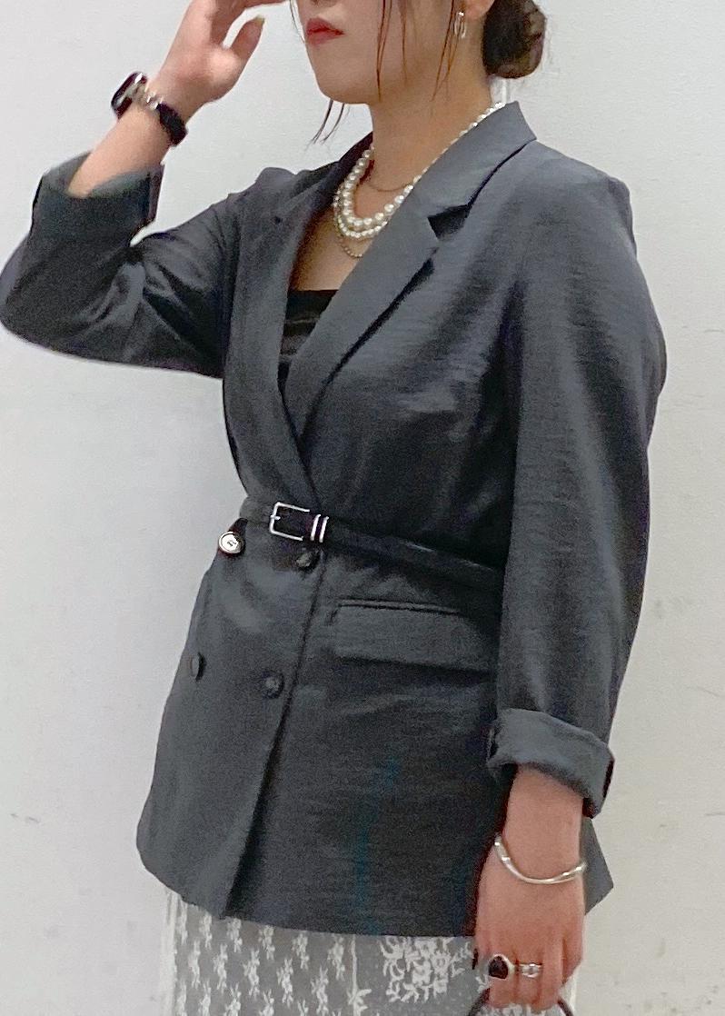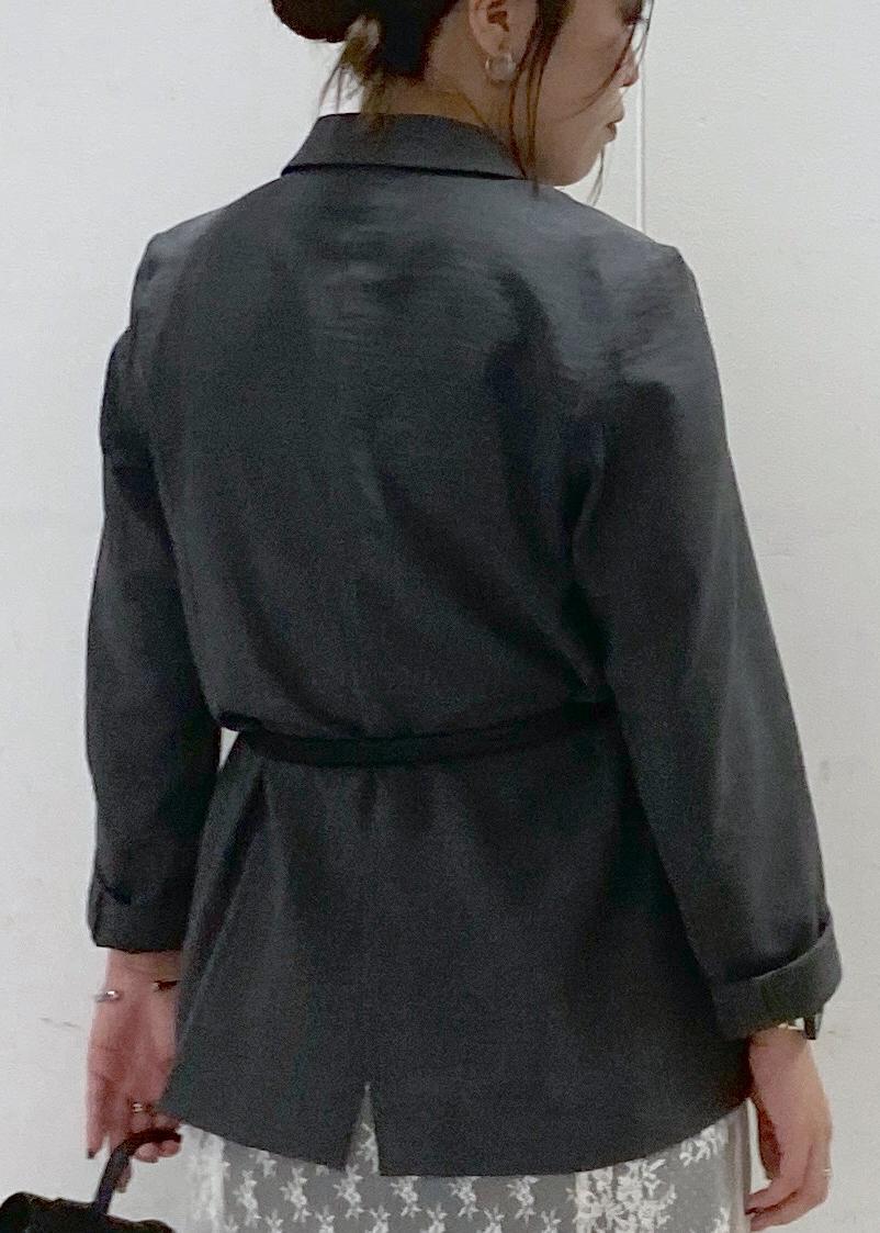 袖まわりは少しゆとりがあるので、シャツやニットをレイヤードしやすいです。