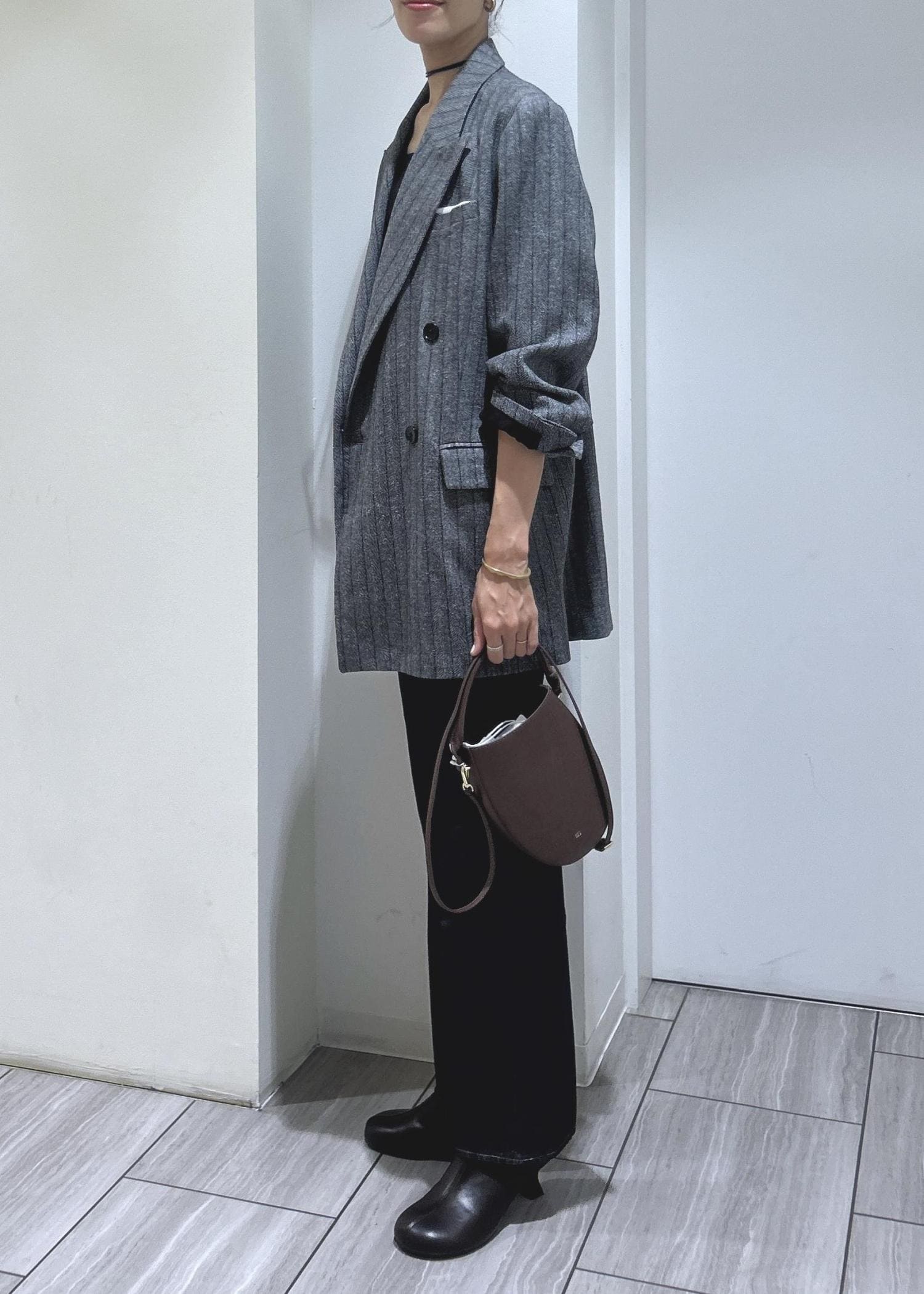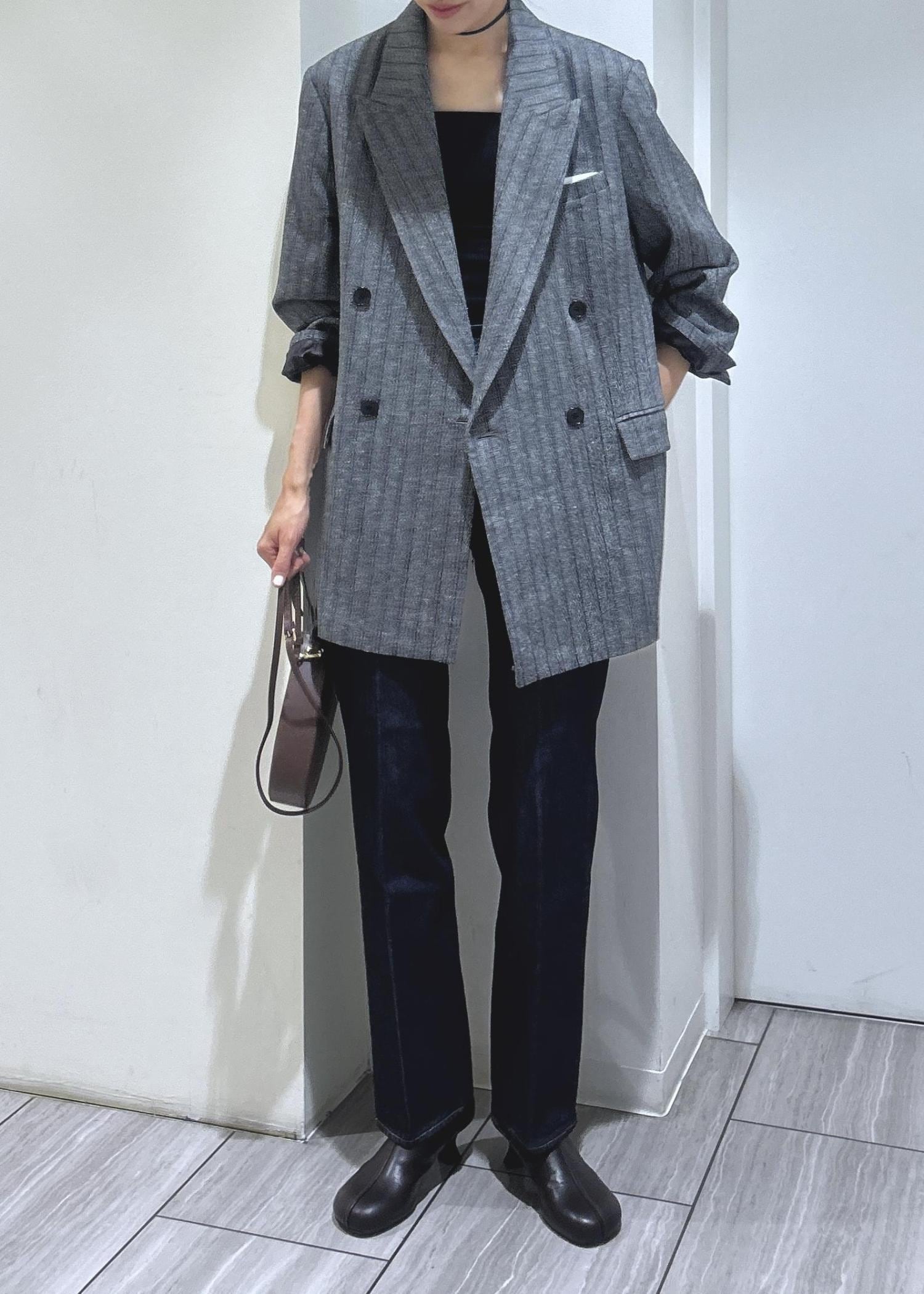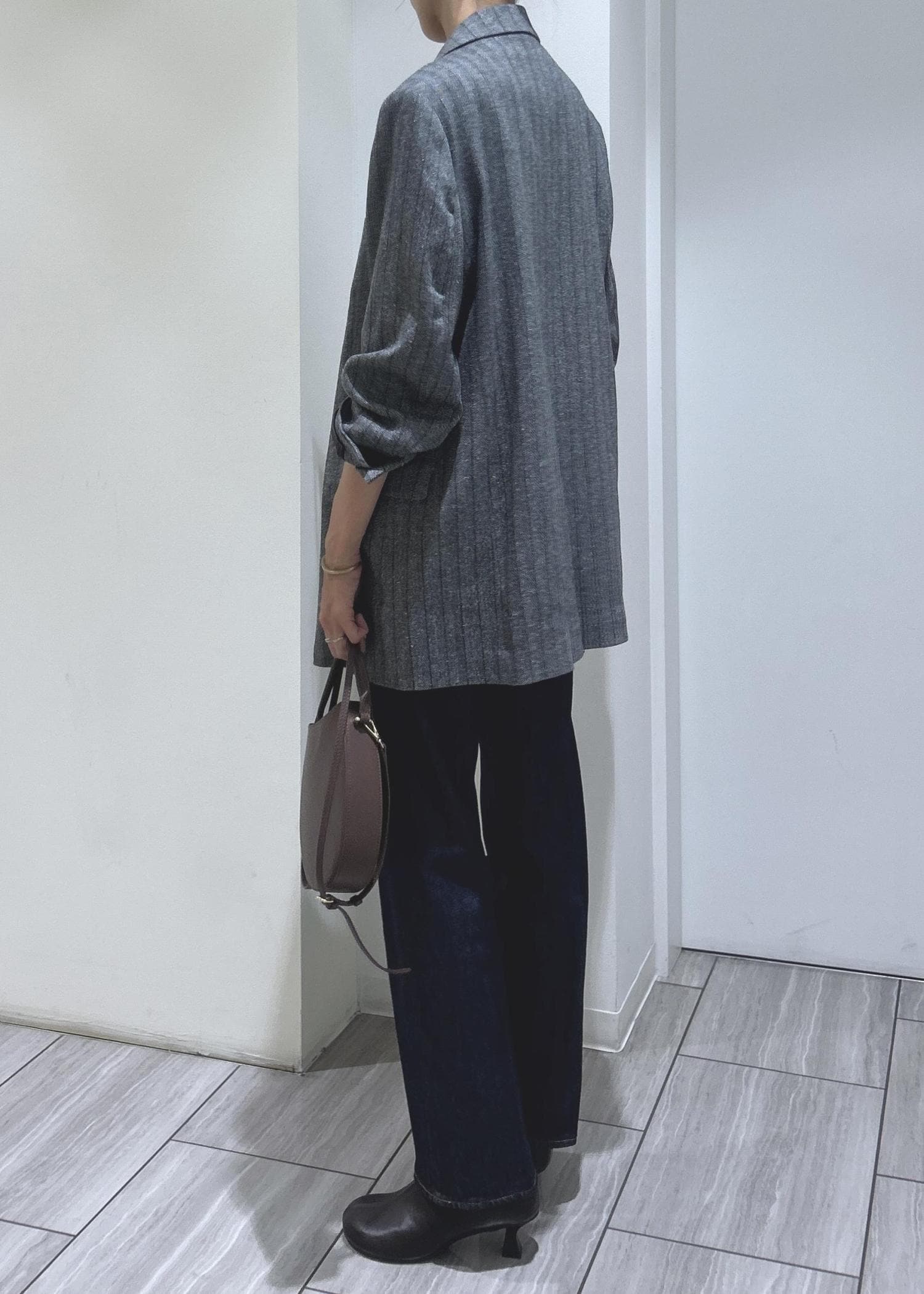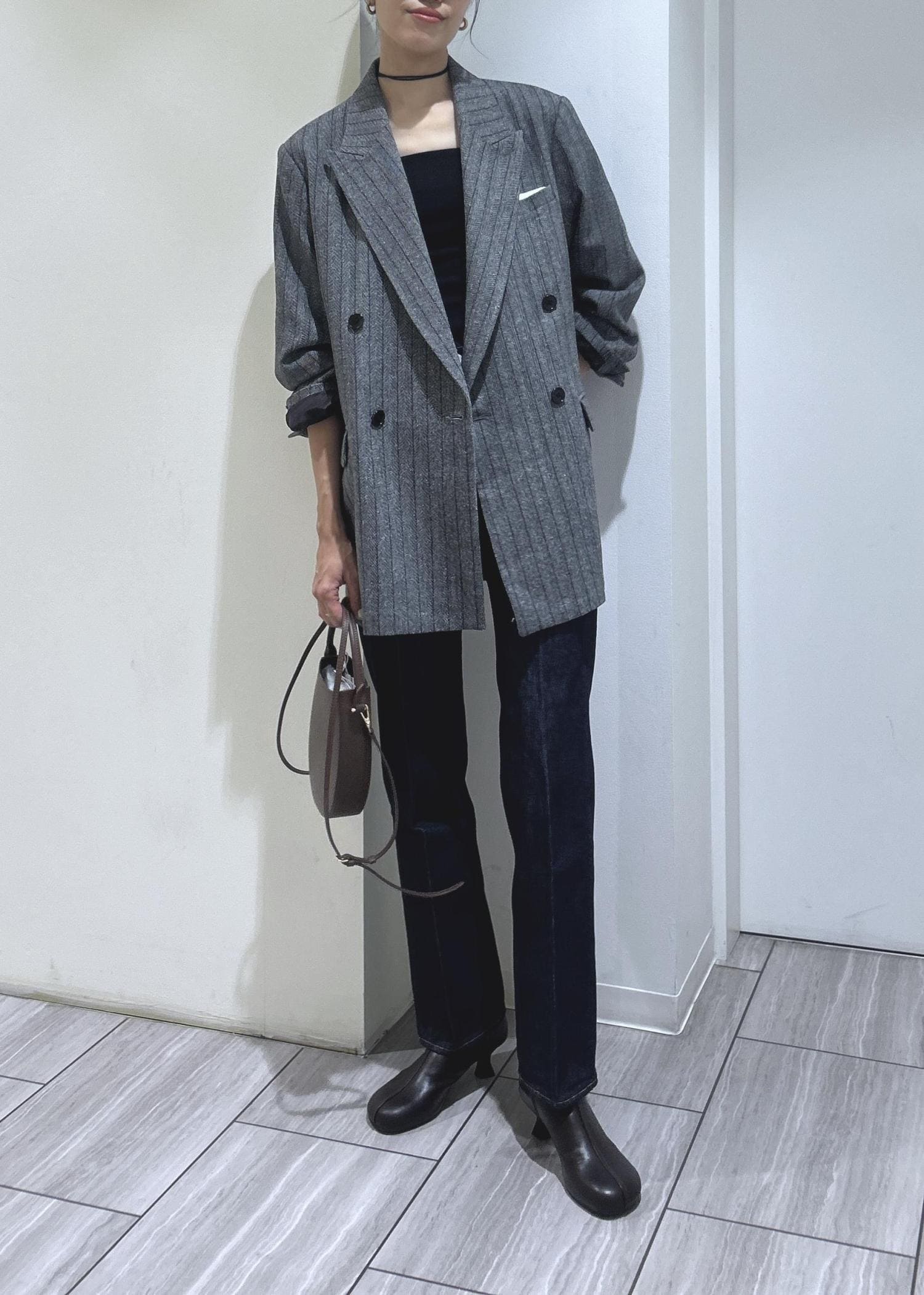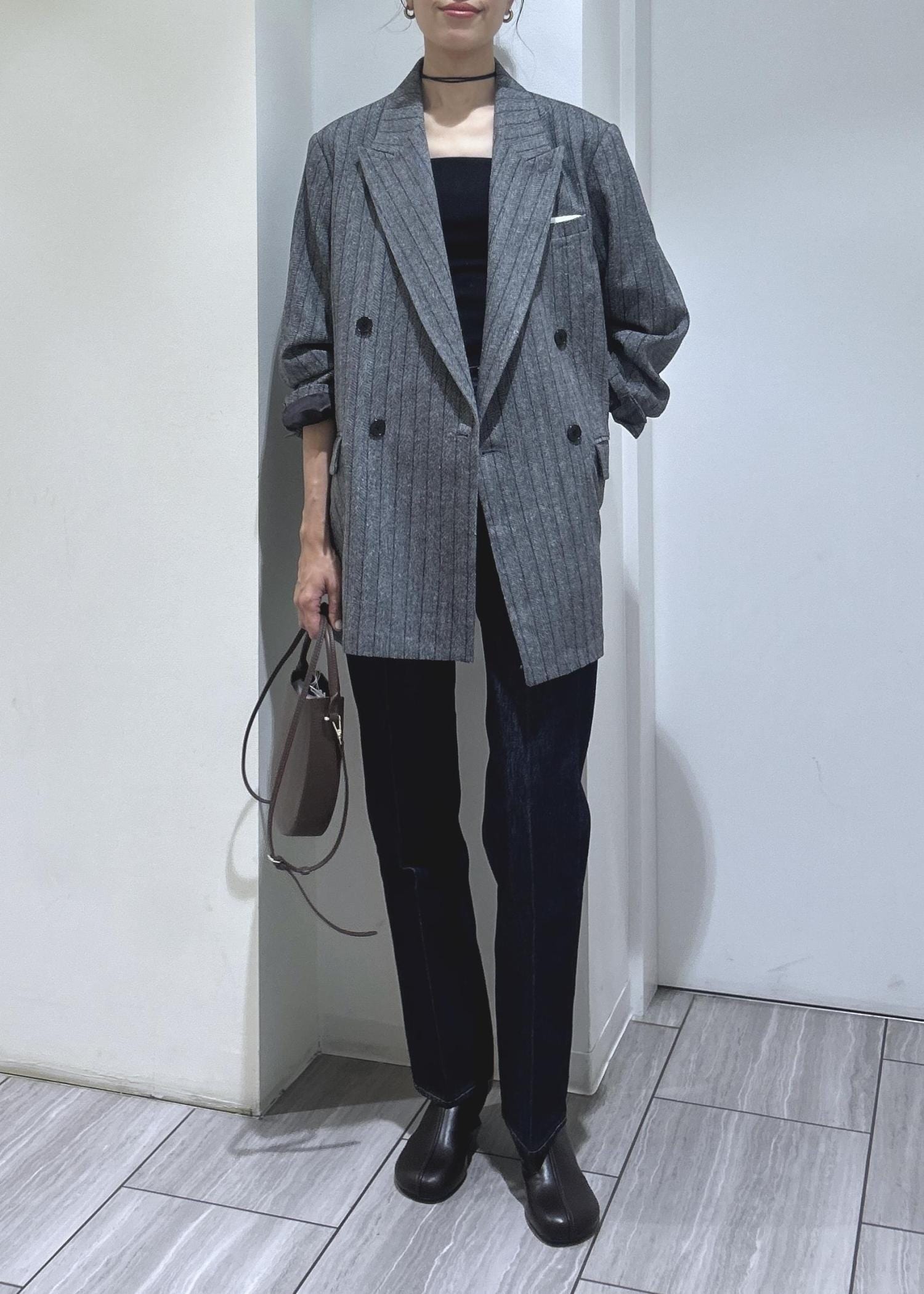 本日は、マニッシュな雰囲気漂うオーバージャケットを主役に、ゆったりとしたシルエットでこなれ感を出しつつ、AURALEEのセンタープレスデニムを合わせてすっきりとコーディネートしてみました。