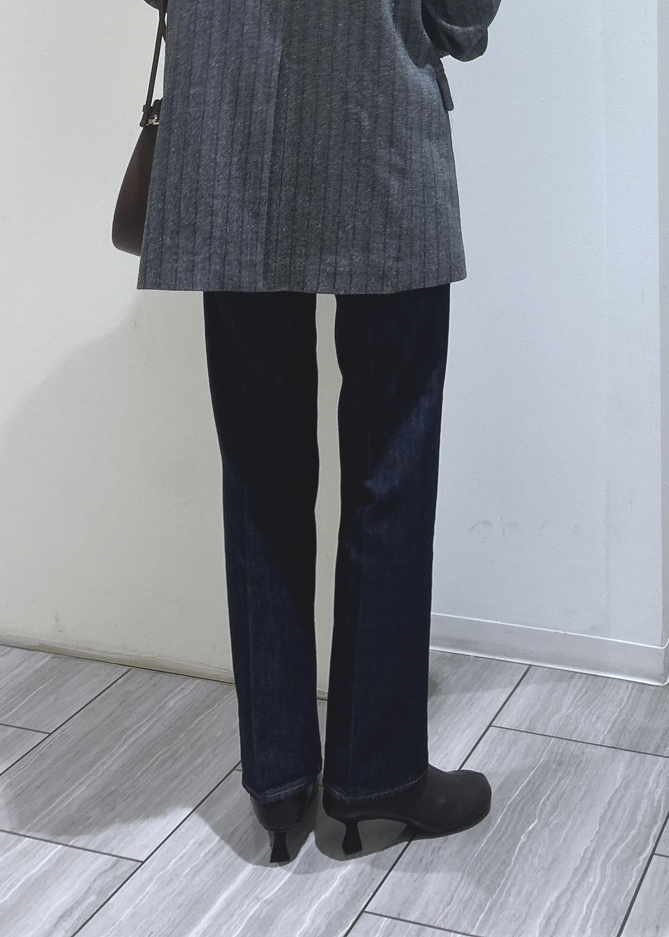 ストレートシルエットにセンタープレスで、上品さときちんと感があります。