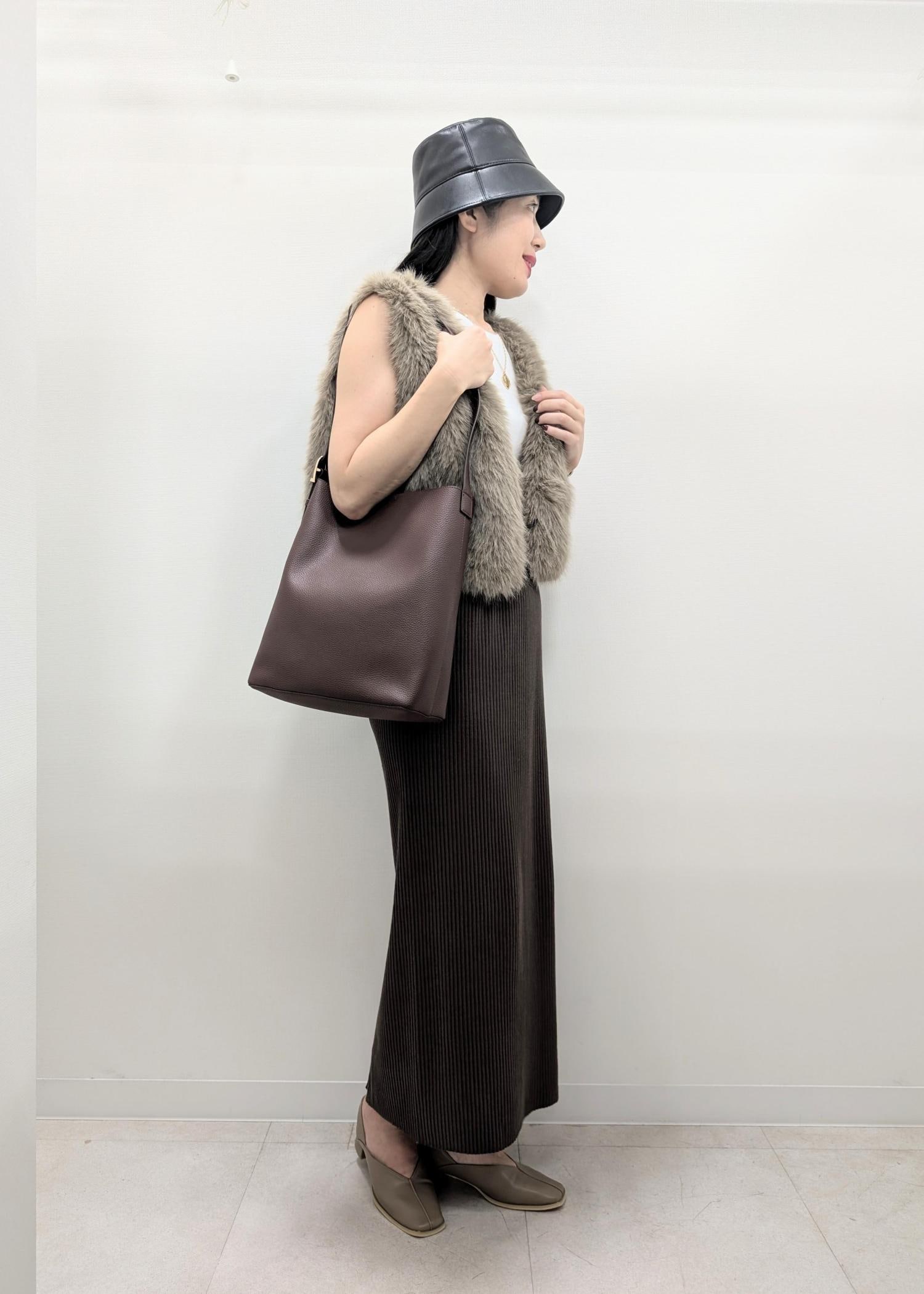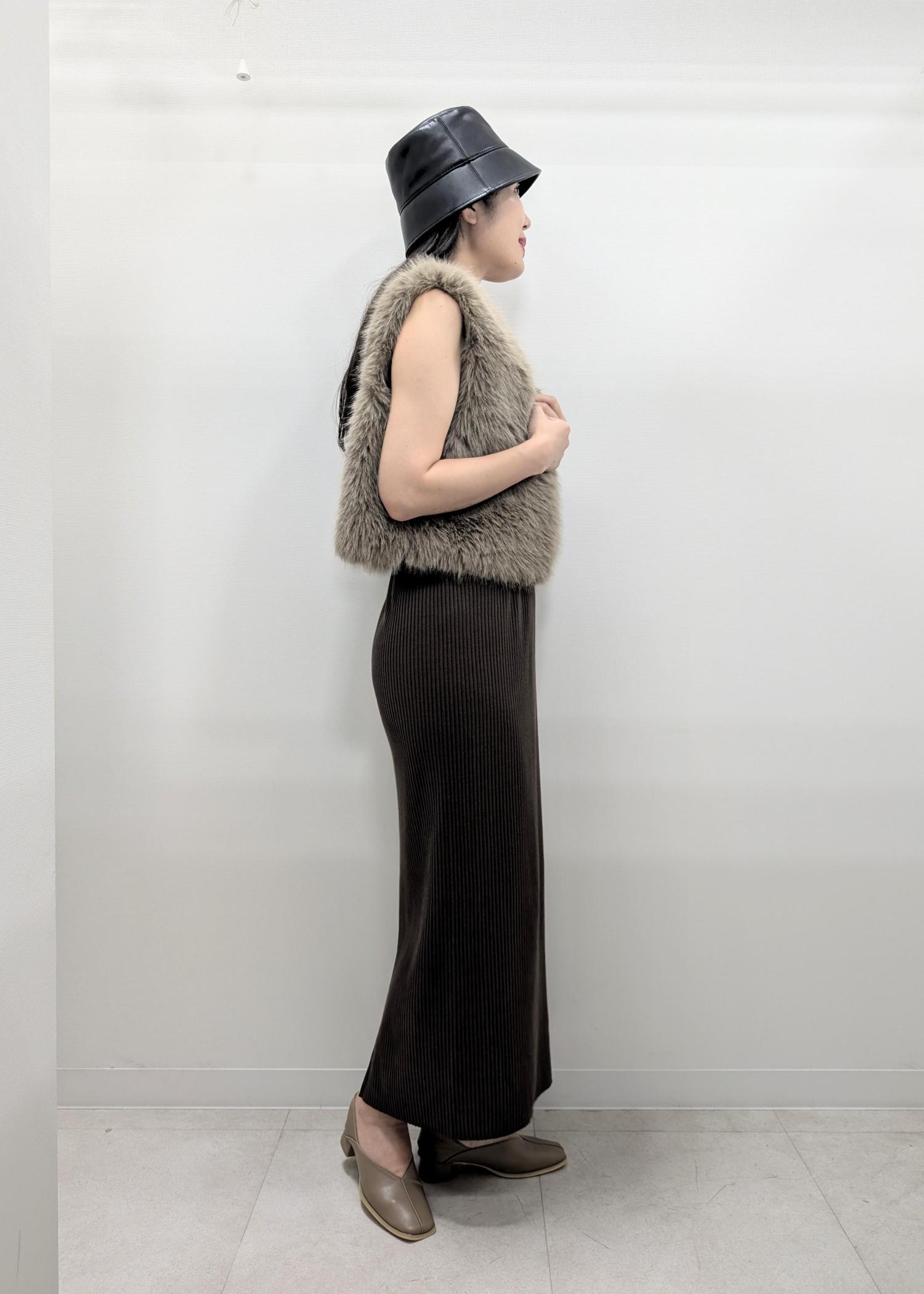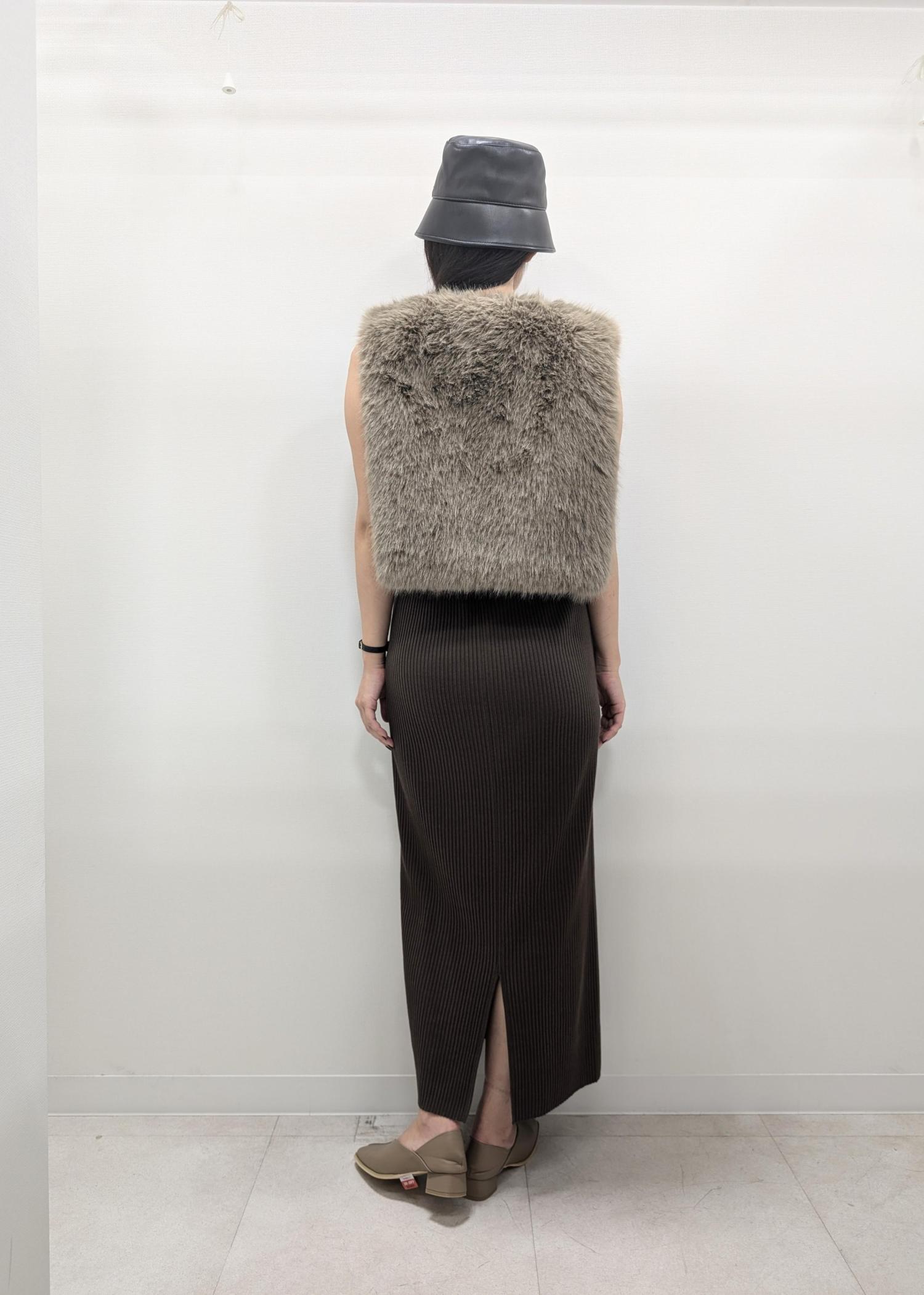 私は肩幅広めなのでファーのジレは膨張しがちですが