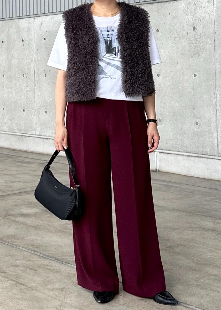 ROPÉ【洗える・カセット服】ライトトリアセイージーワイドパンツ/お仕事・通勤・セットアップ対応ワイン / 38¥25,300レビュー162センチ 普段ボトム38、40サイズ