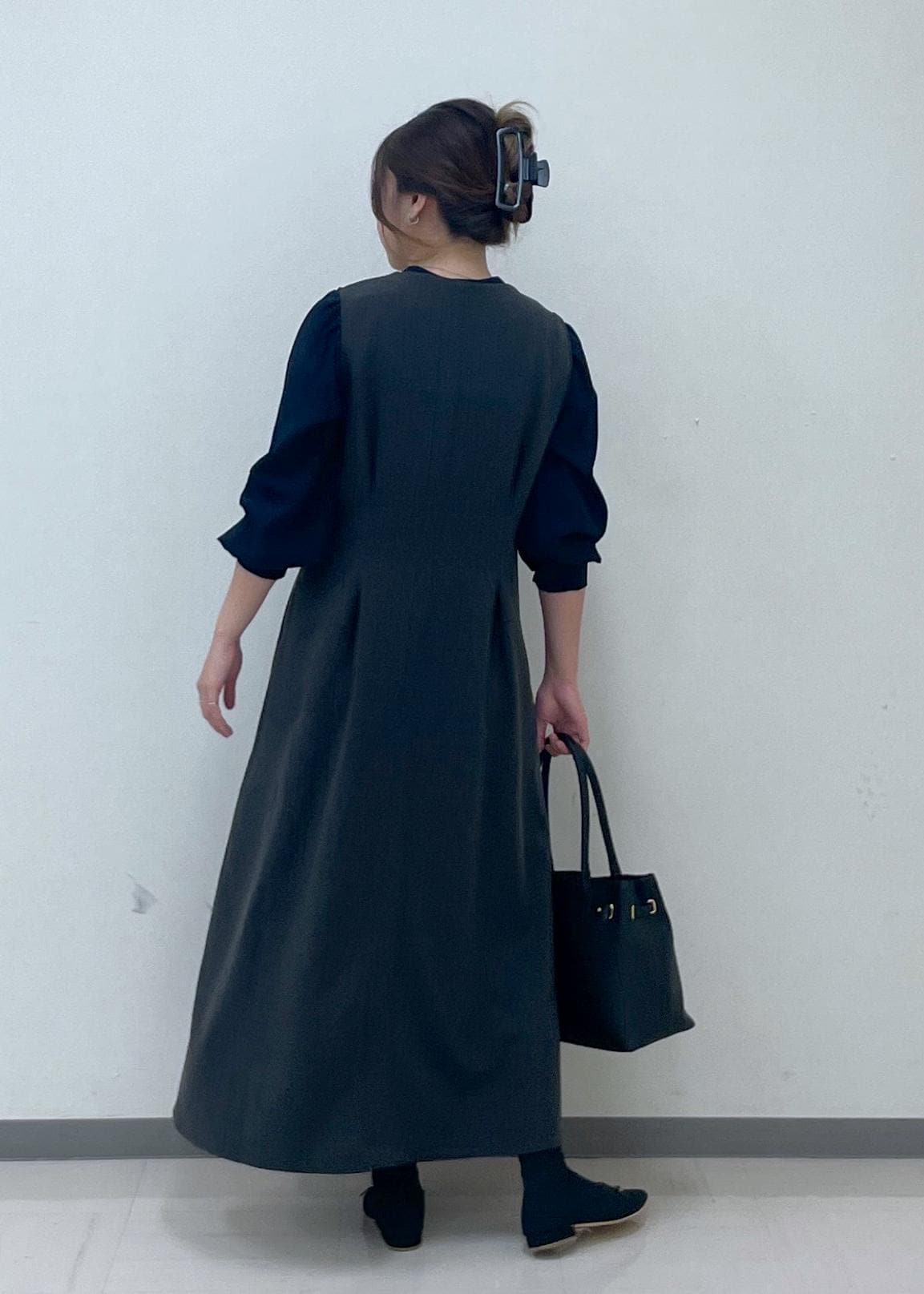 黒×ネイビーで落ち着きのあるワンピースコーデにしました!