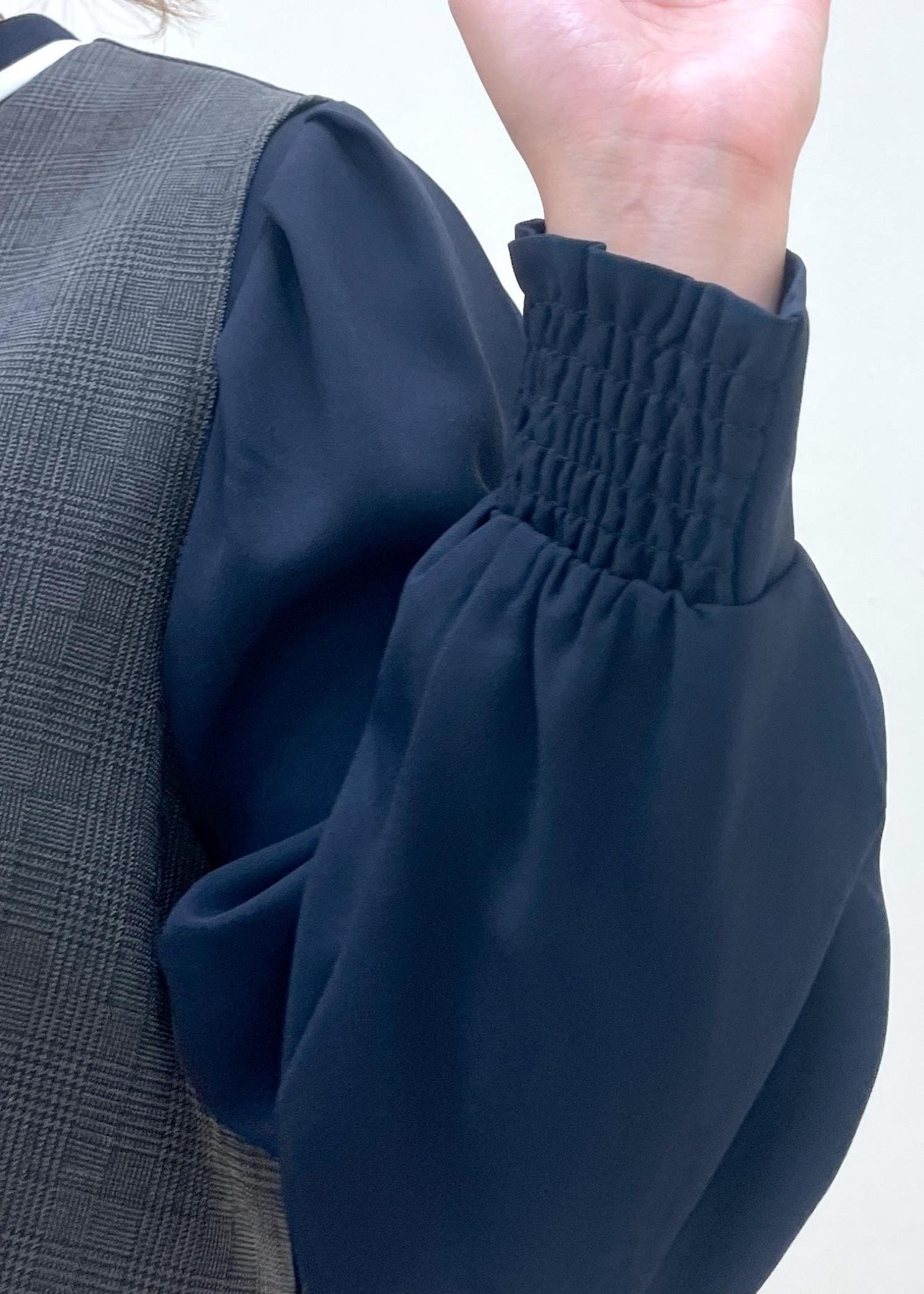 袖口にゴムが入っているので腕まくりもしやすく、動きやすいです! -