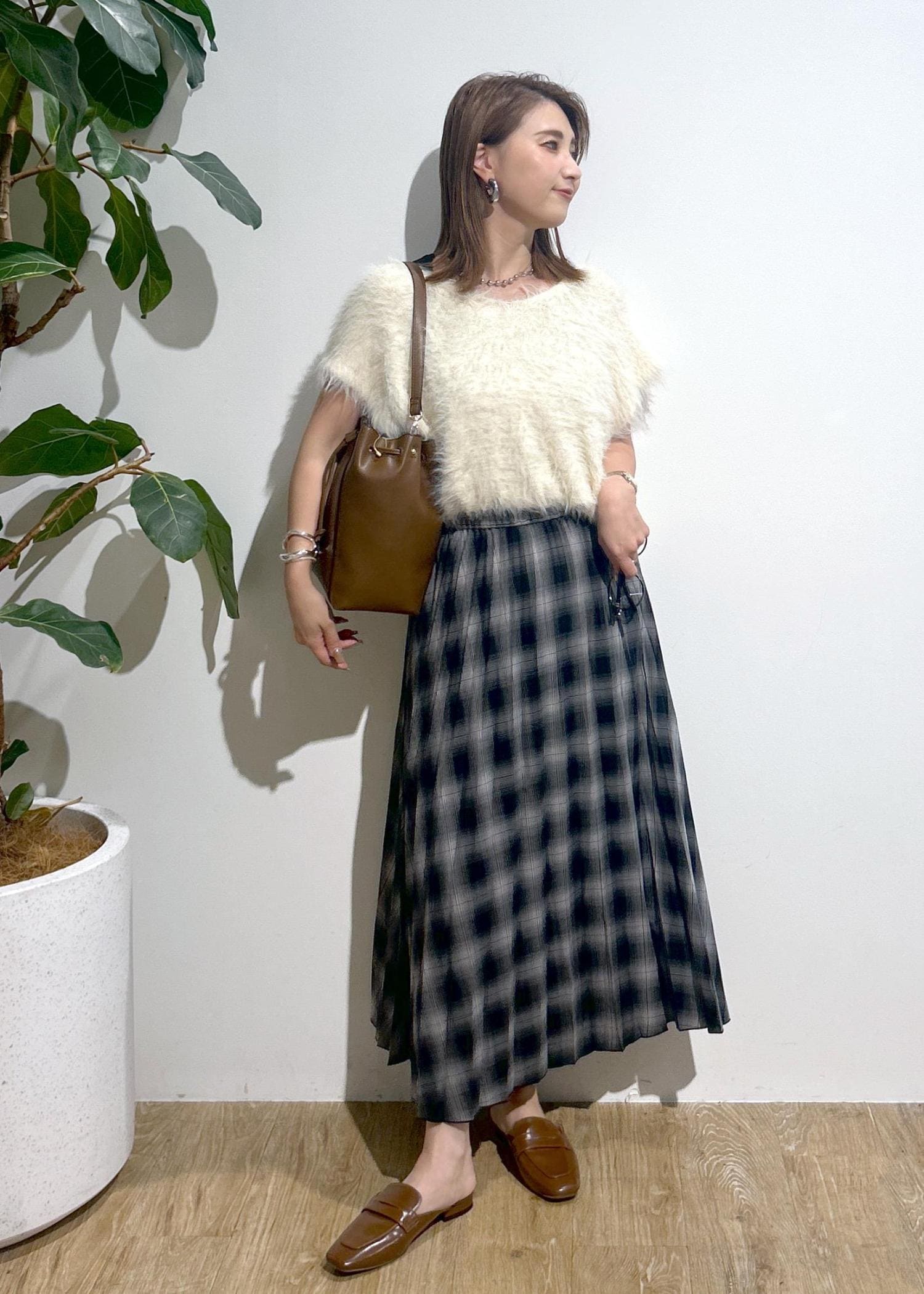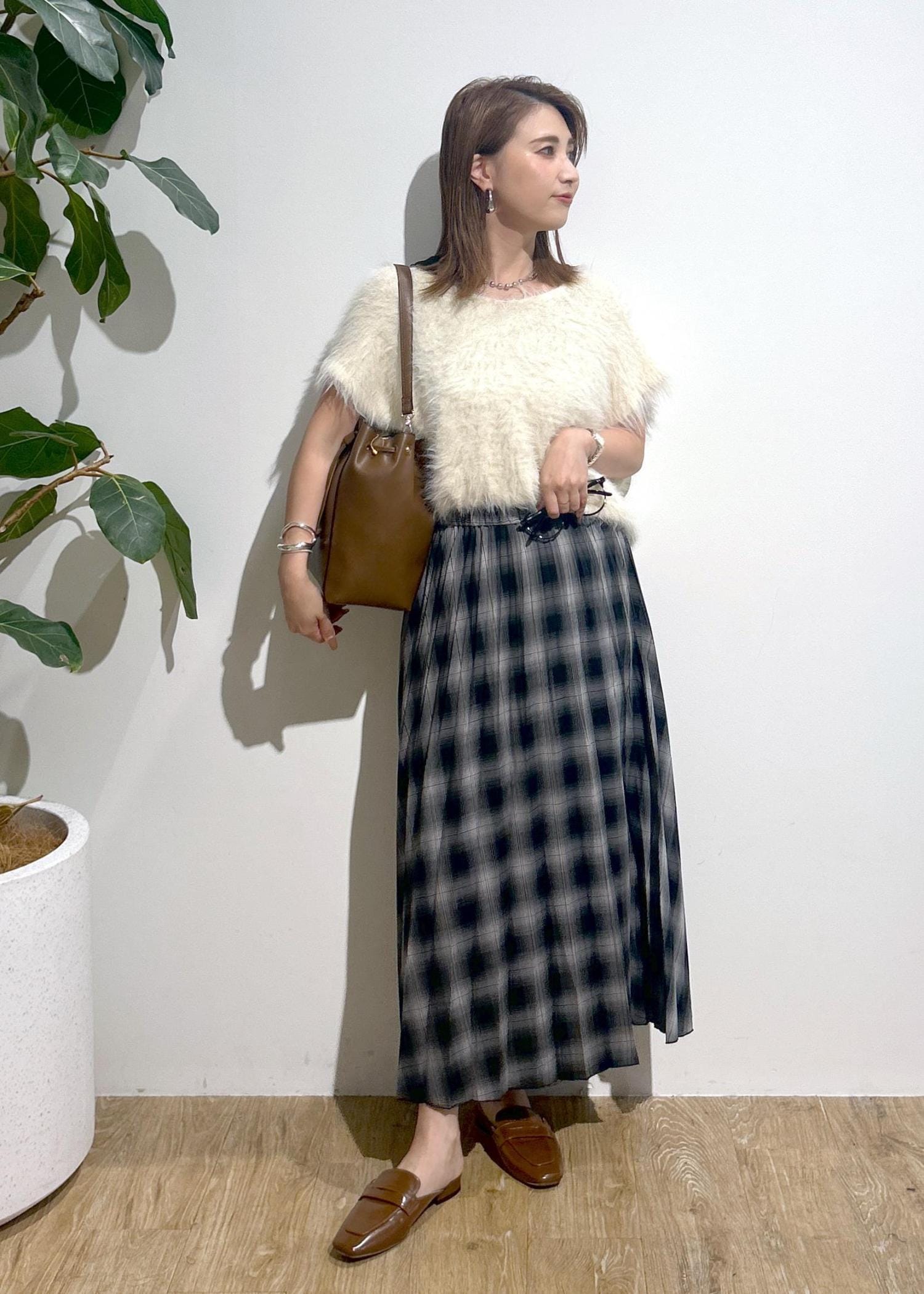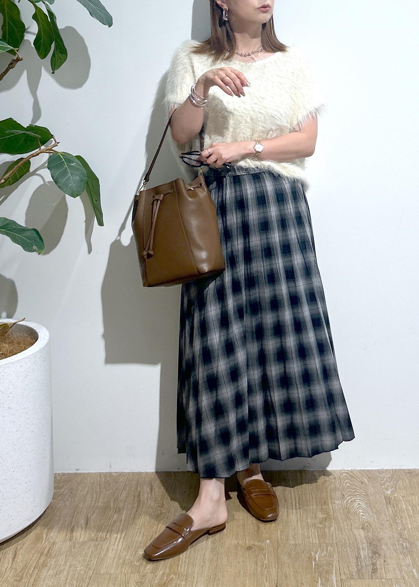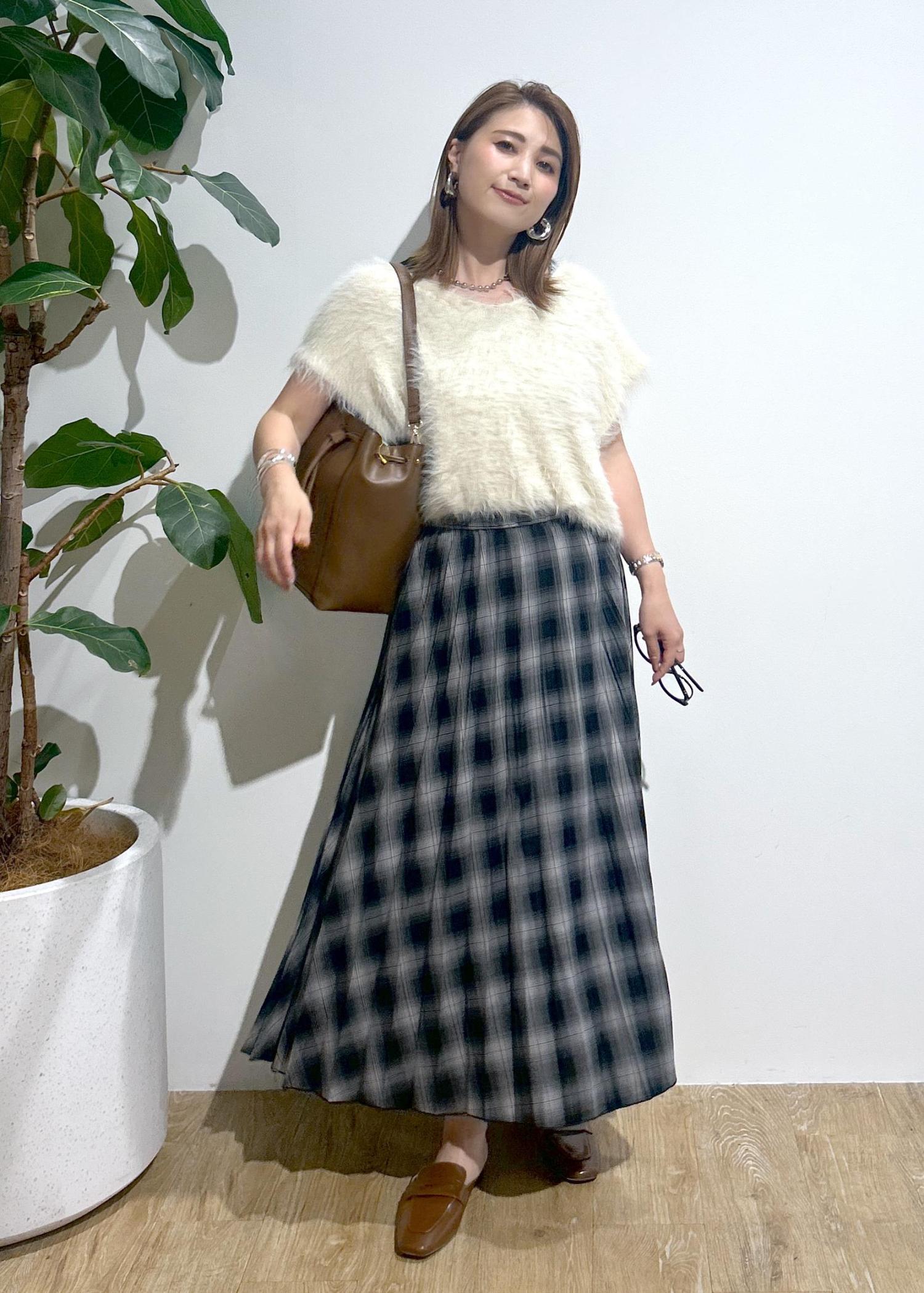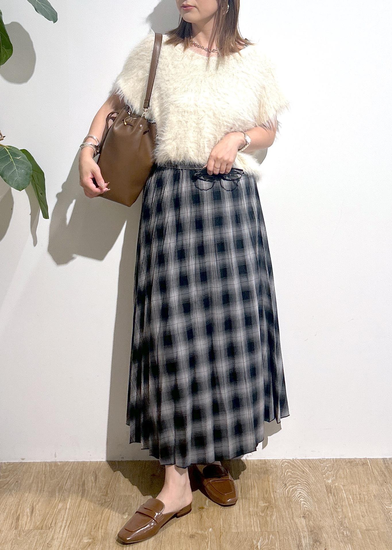 フェザーニット×チェックスカート♪