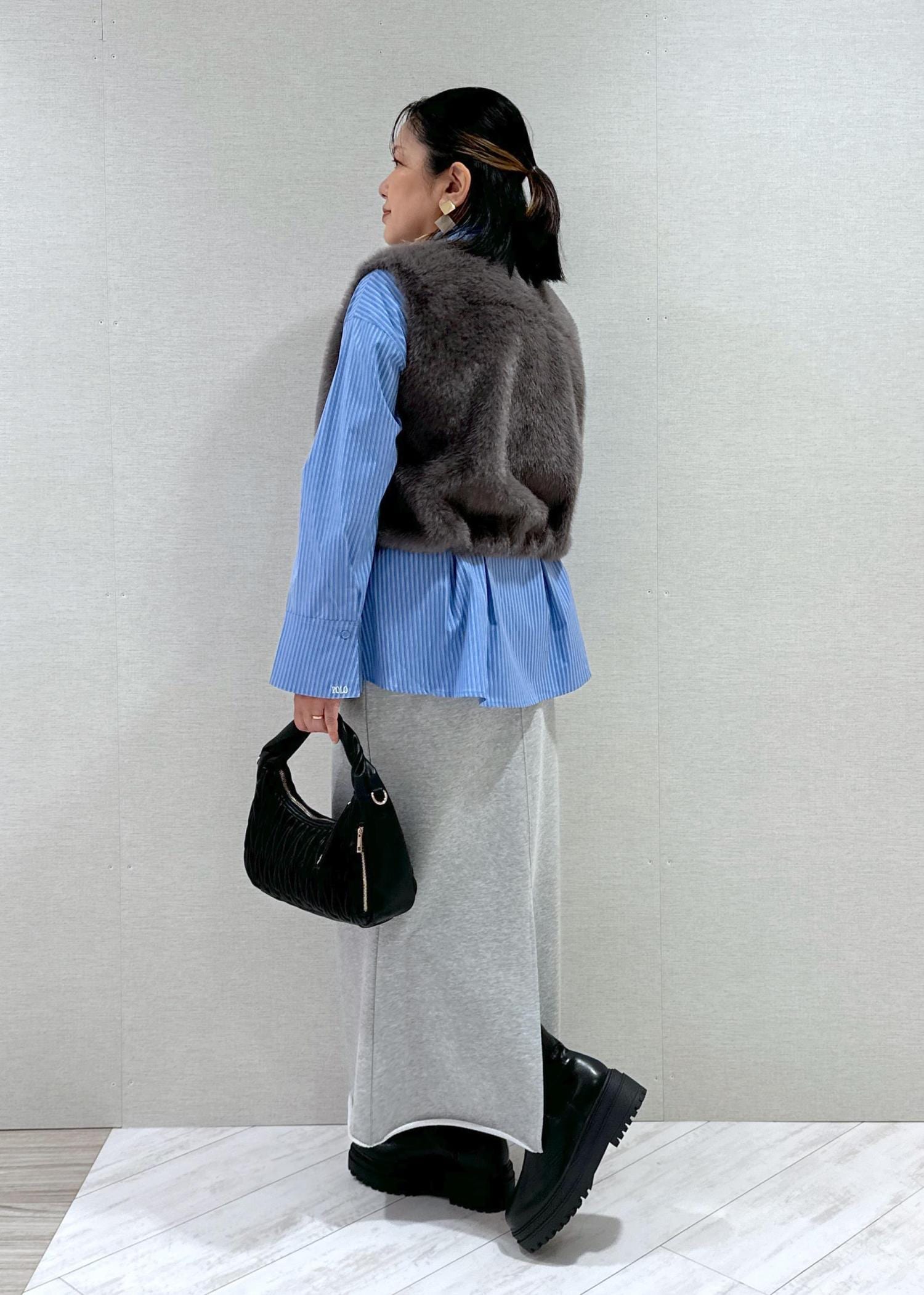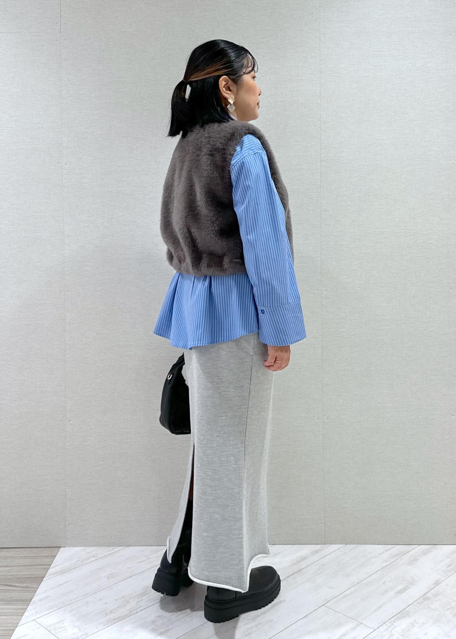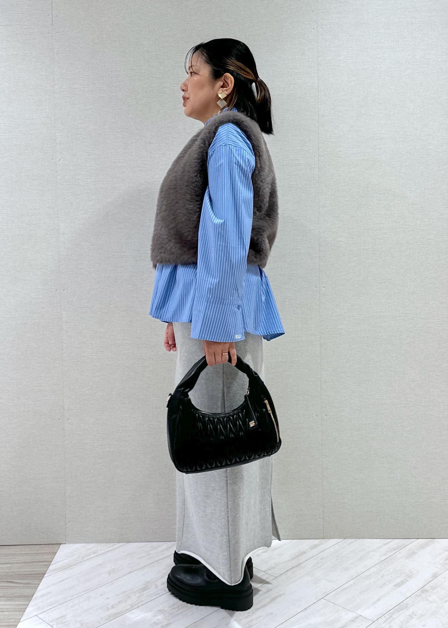 VISアソートファーショートベストグレー系 / F¥8,899レビュー着丈は短めでシャツ、ワンピース、ハイウエストのボトムに合わせやすい。
