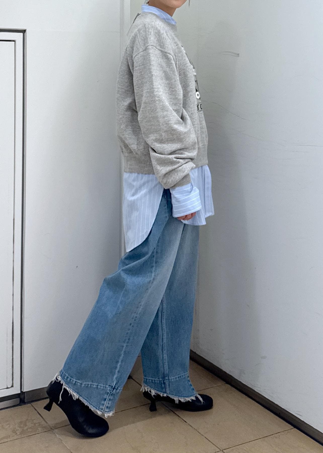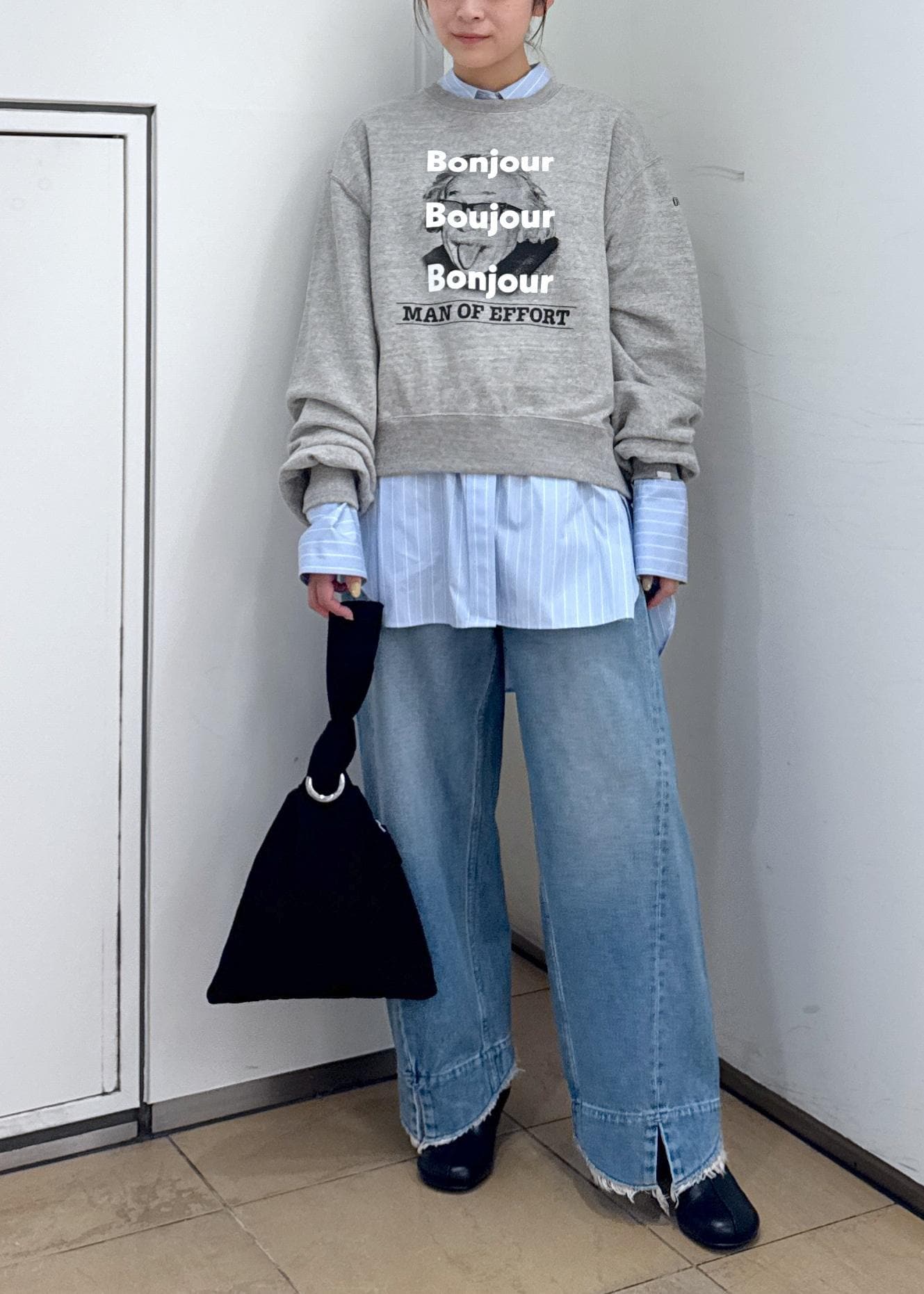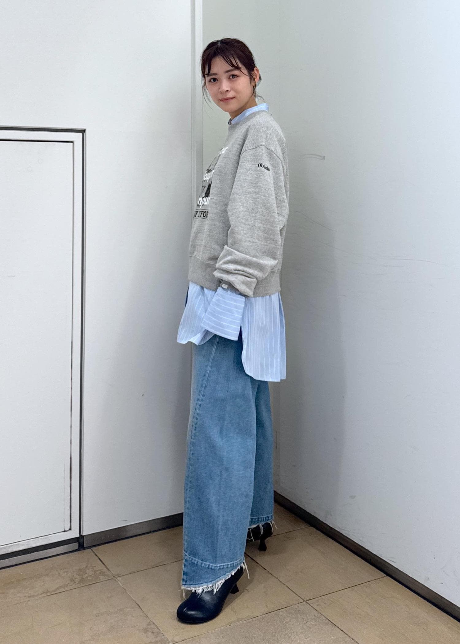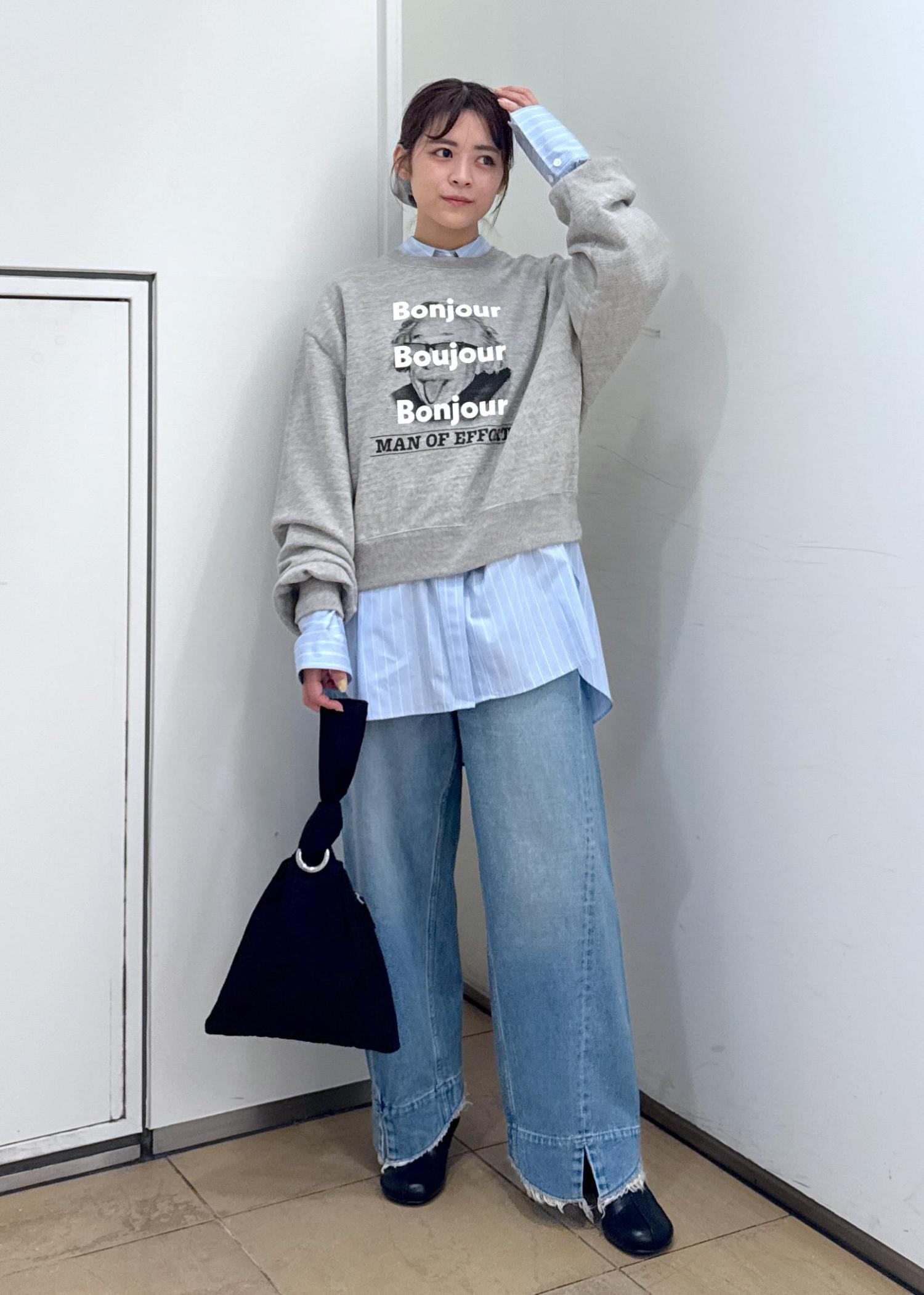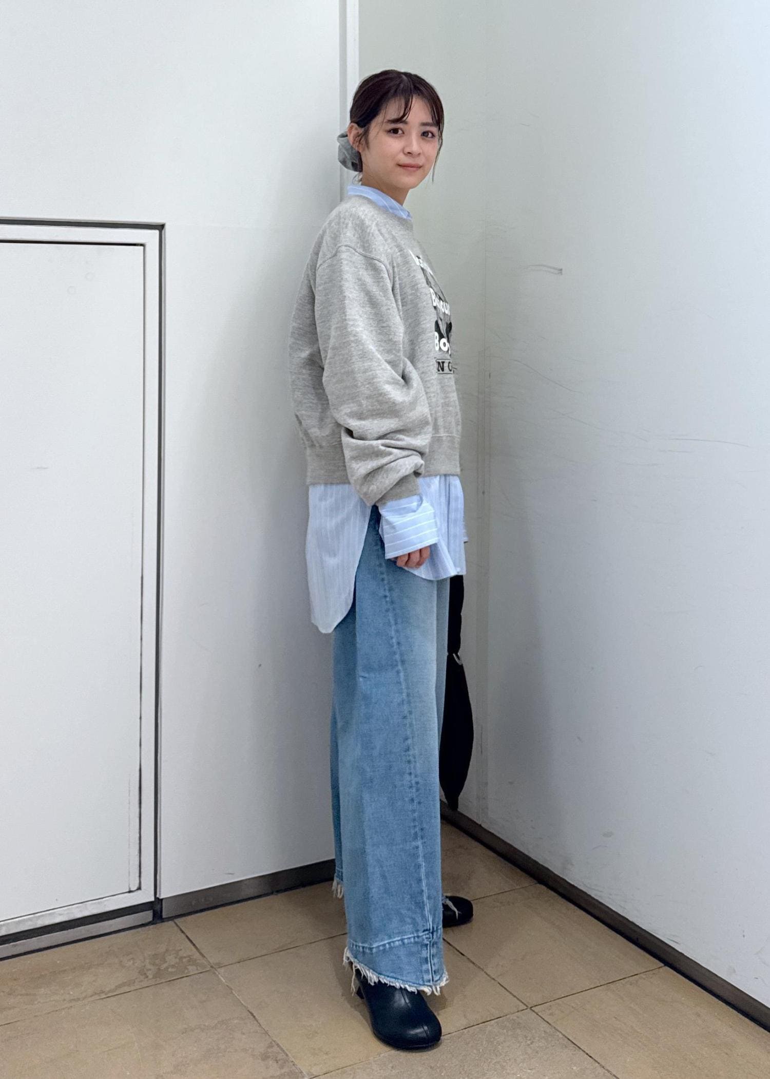 体のラインを拾いにくいデニムなのでヒップや腰周りの体型カバーにも◎!