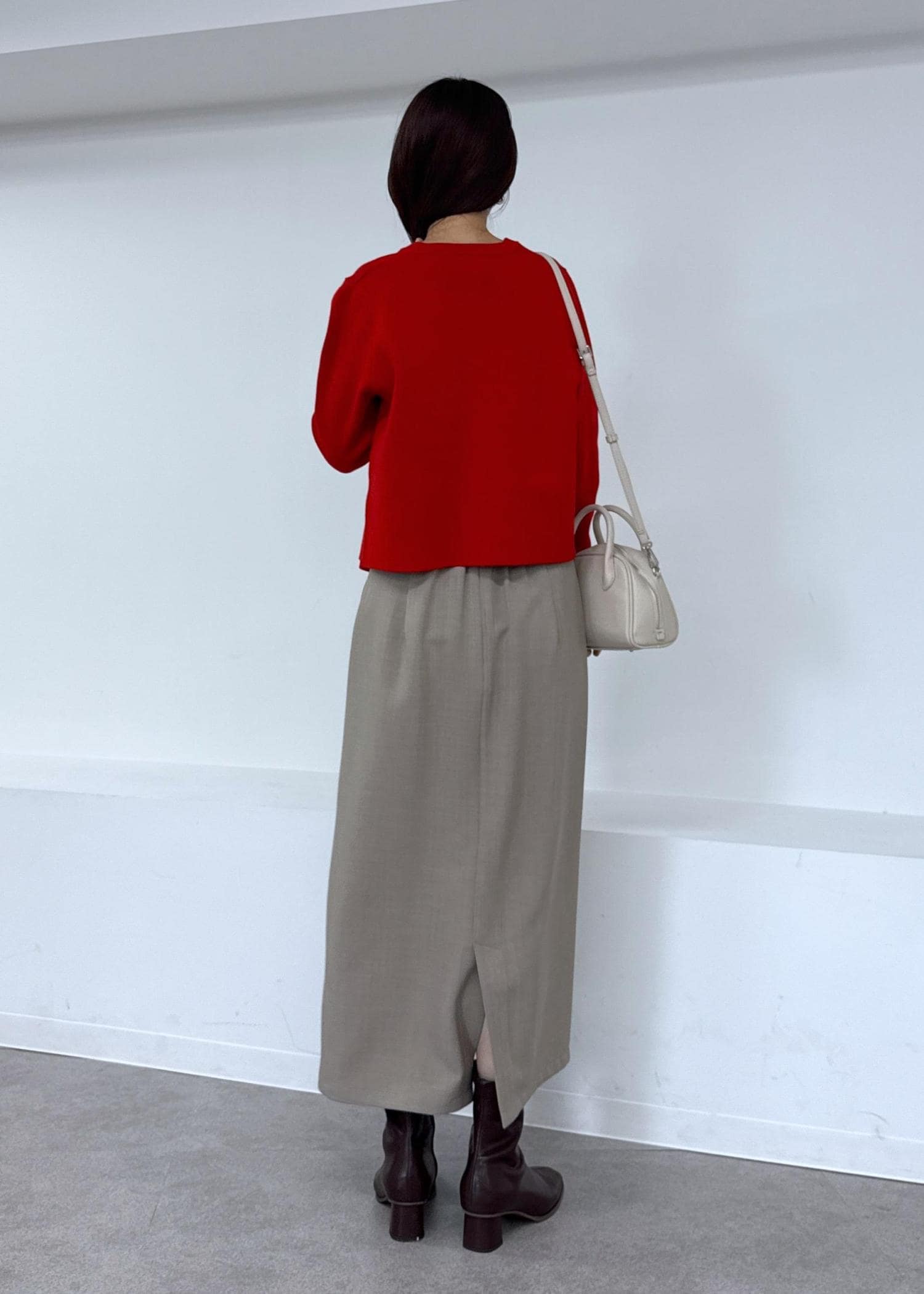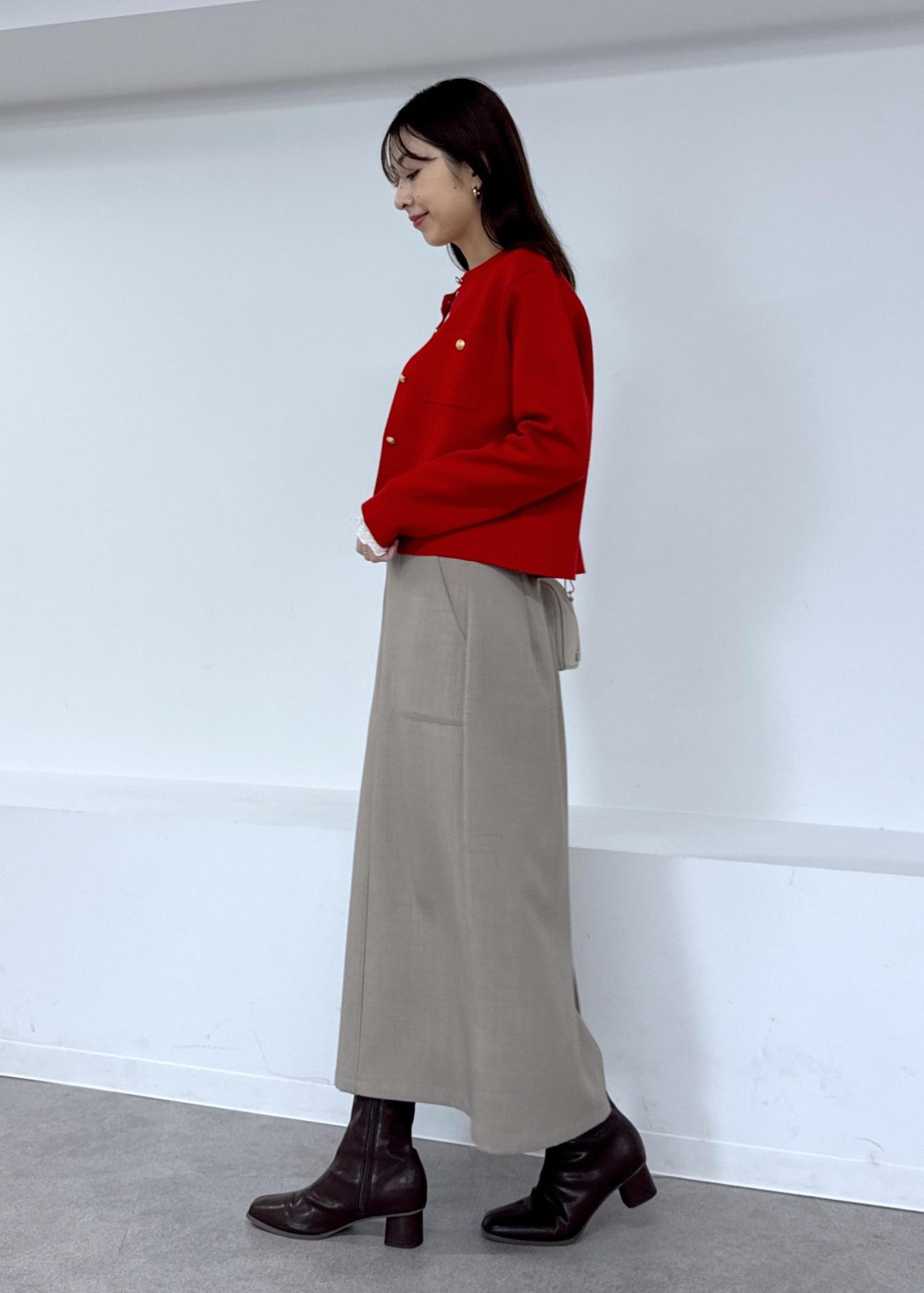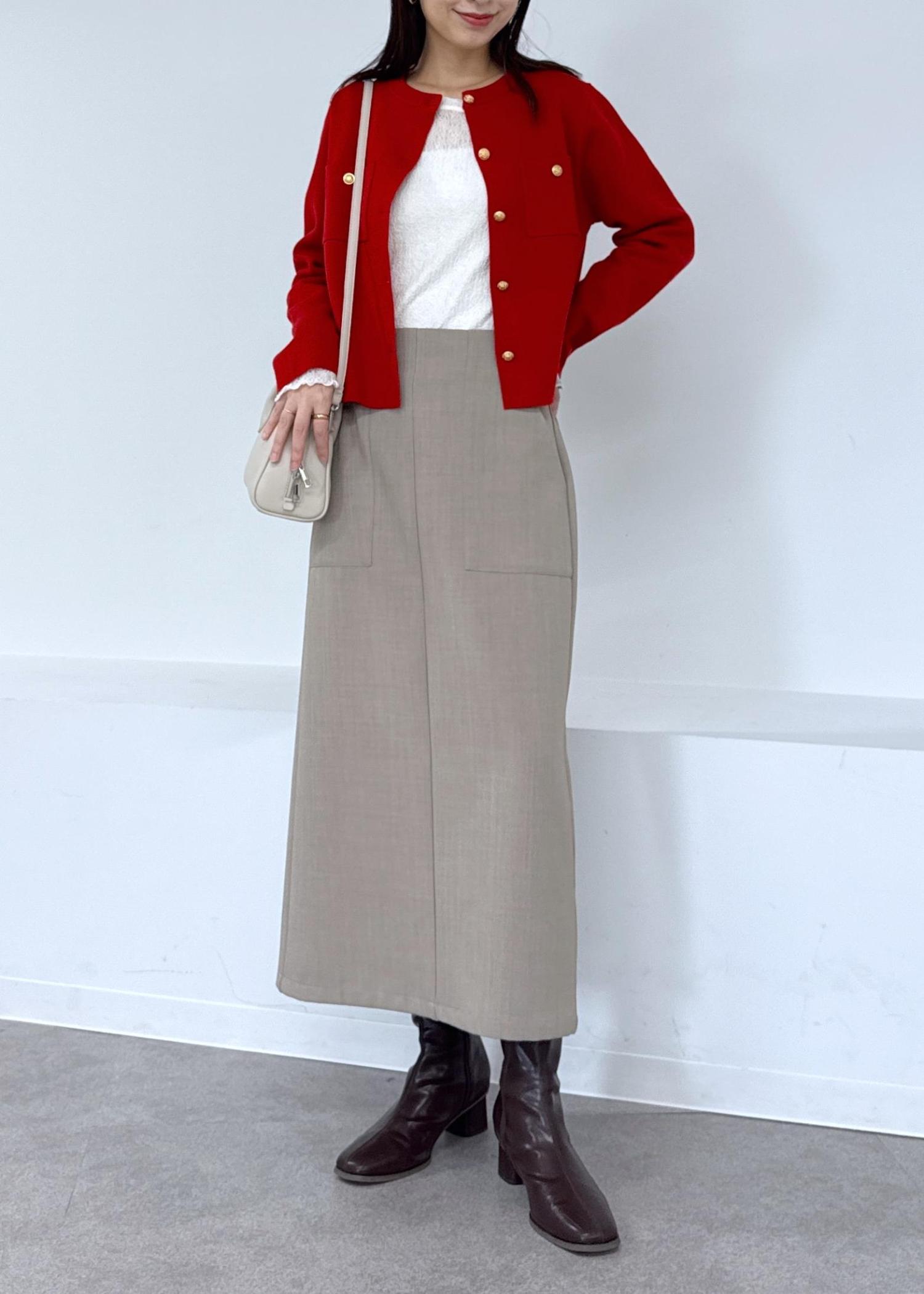 タイトスカートほどピタッとはしないのでボディラインを拾いません。品のあるストレートシルエットなのでお仕事服にもちょうどいいです。162㎝で足首にかかる長さ。38サイズはウエストが緩かったので履くなら36にします。