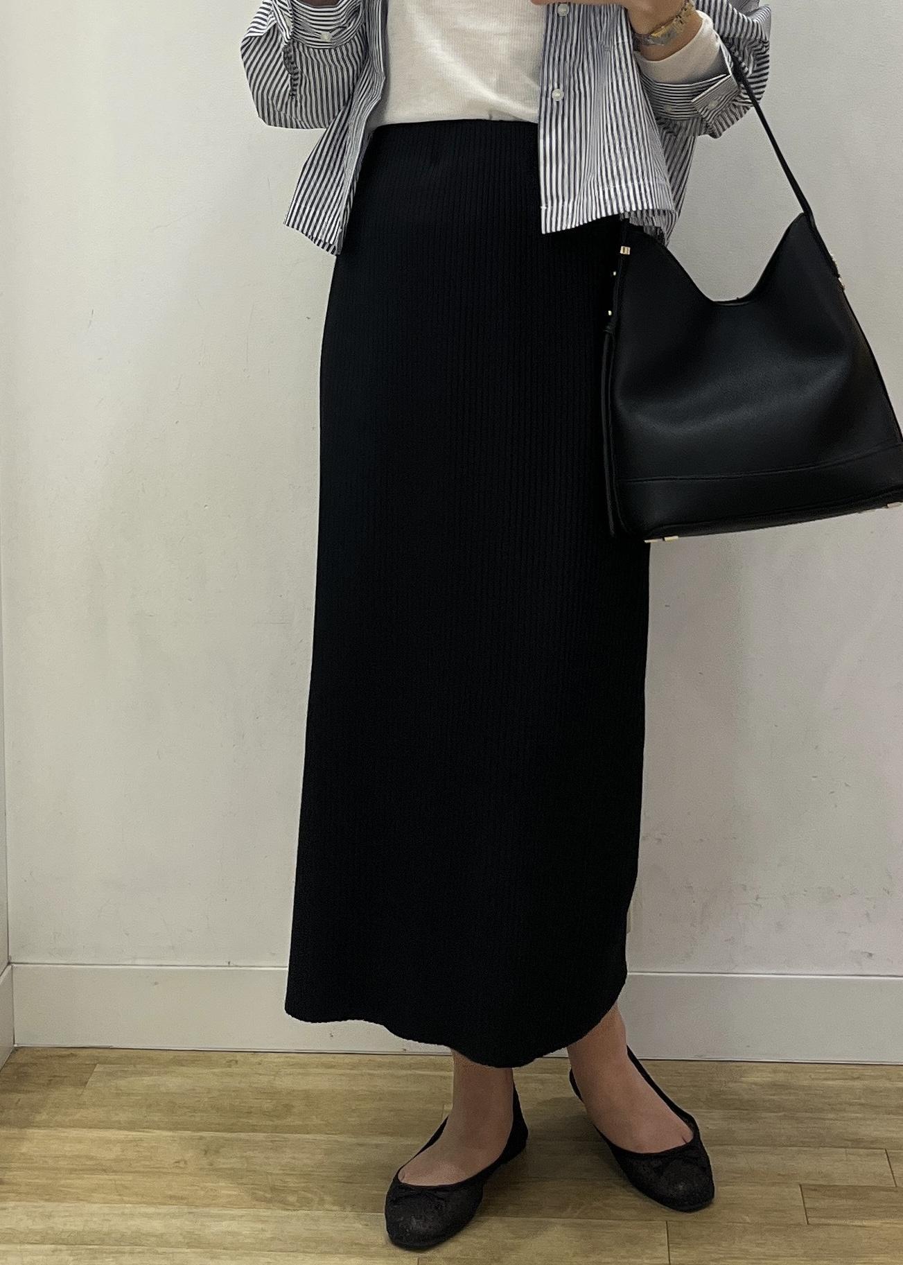 ROPÉ PICNICトタンテレコ Iラインリブニットスカートブラック / 38¥4,499レビュー膝が隠れる長さで安心感があります。ウエストもゴムでファスナーがないので楽に穿いていただけます。