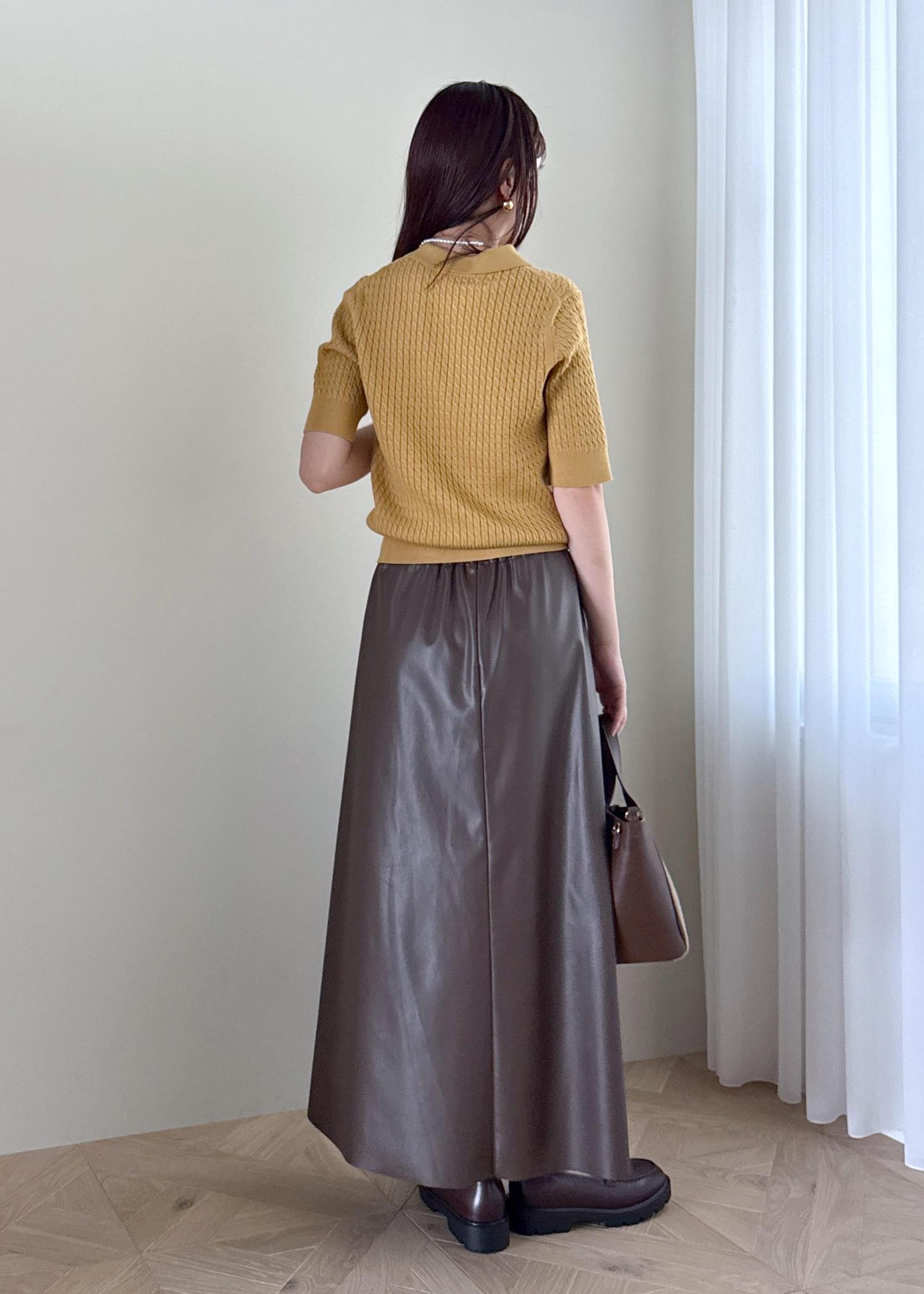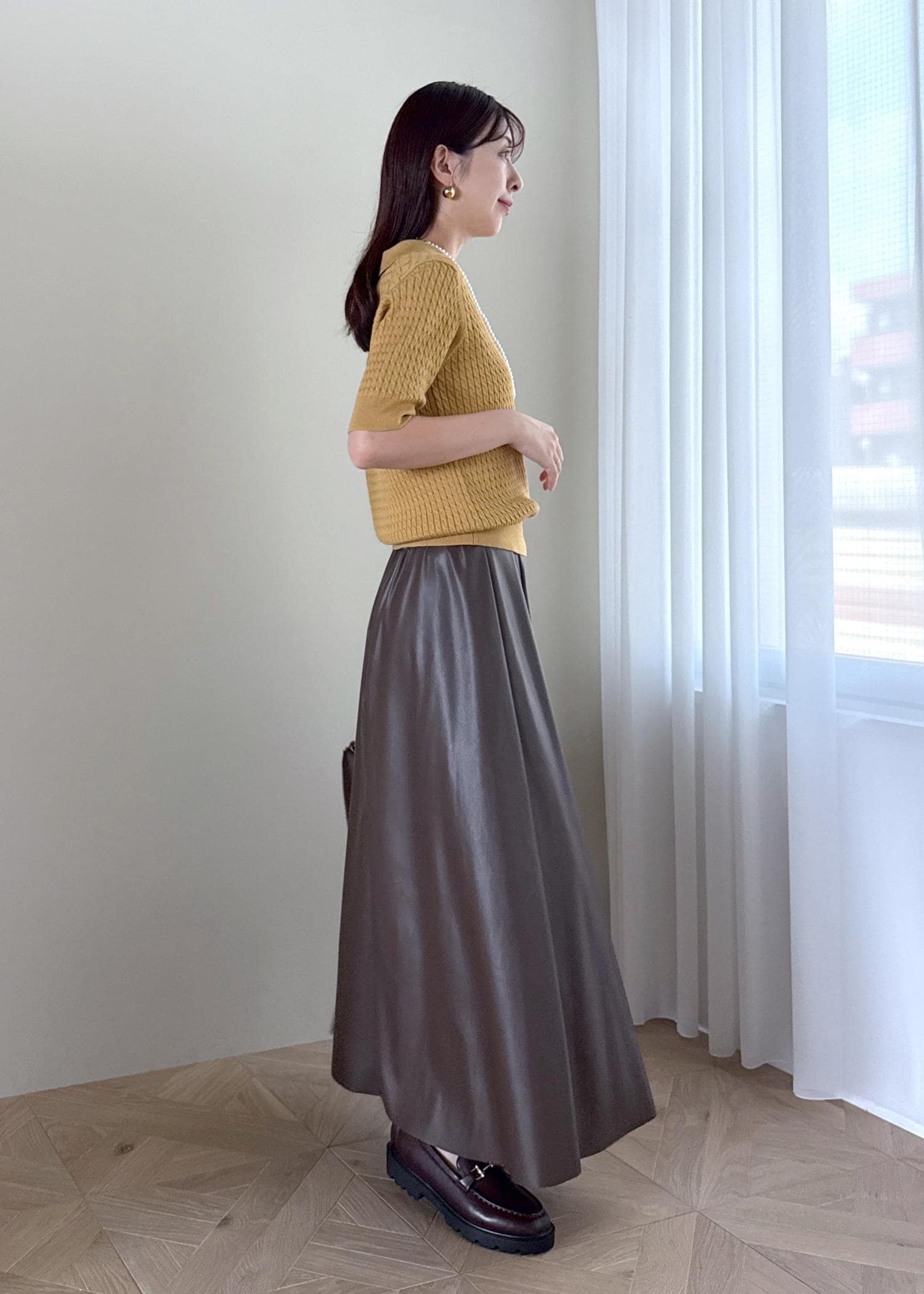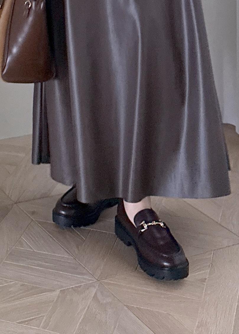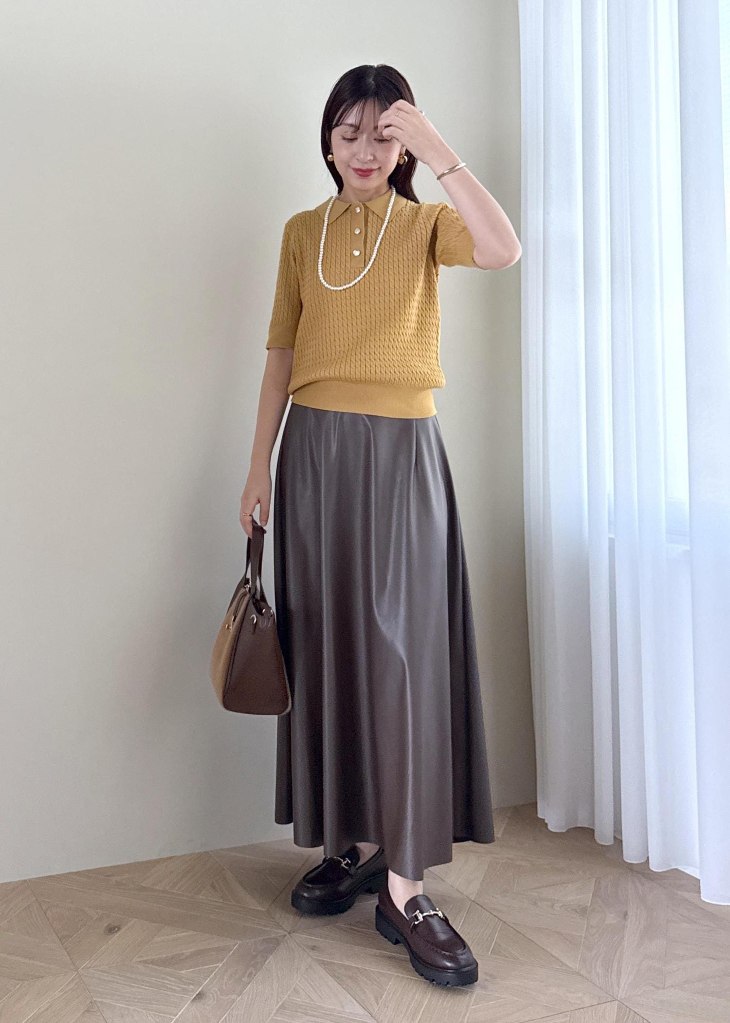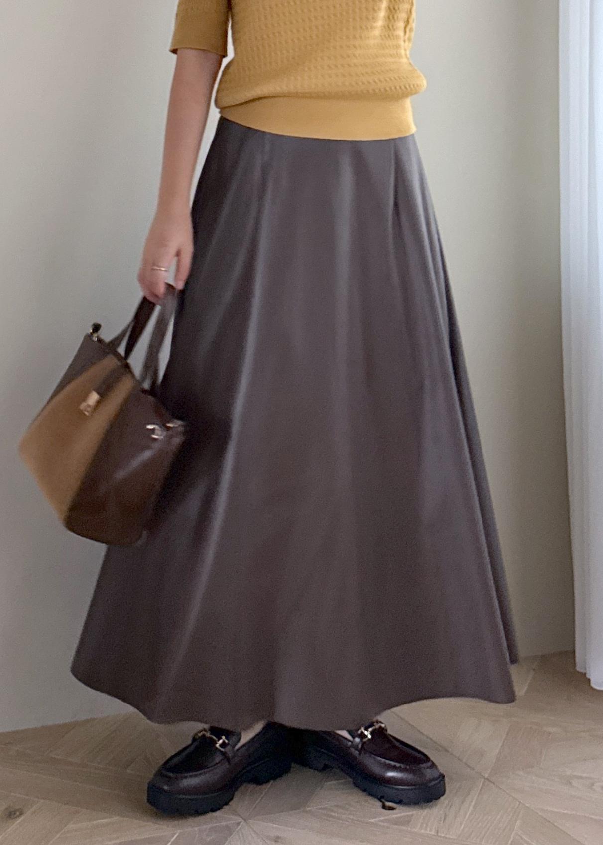 ROPÉ PICNICシンセティックレザーフレアロングスカートダークブラウン / M¥4,994レビューしっとり感のあるレザーで嫌なテカリはなくマットな生地。緩やかなAラインなので上品さがあります。着丈は162㎝でくるぶしより少し上くらいだったので秋冬はミドルブーツと合わせたりしたいです。