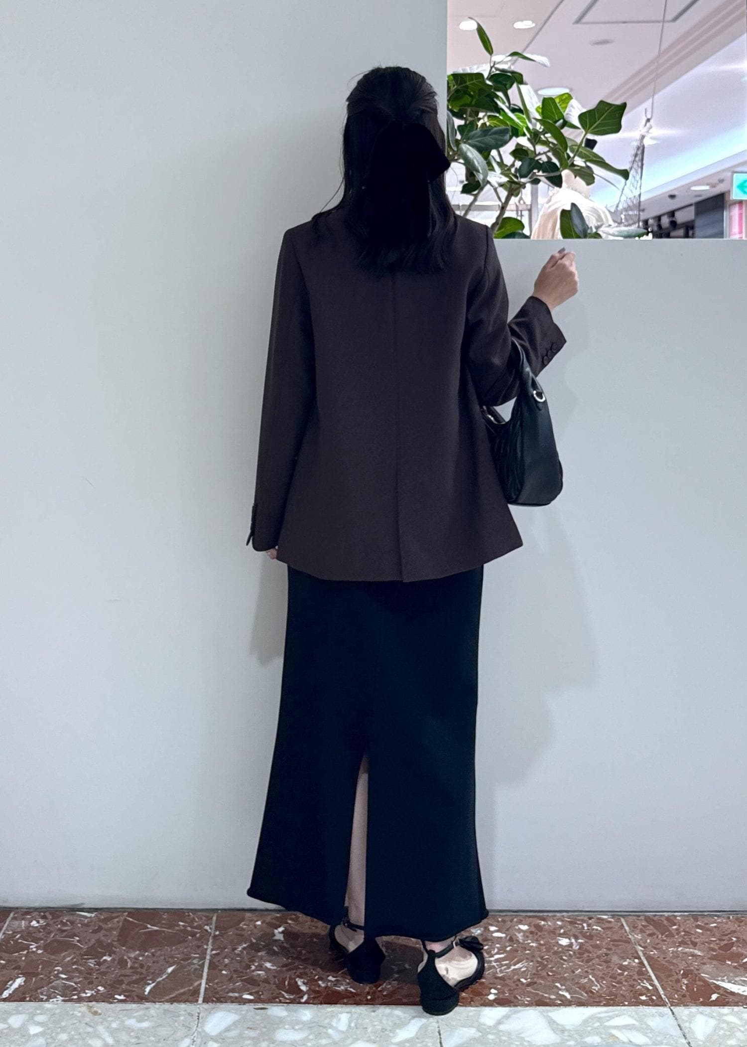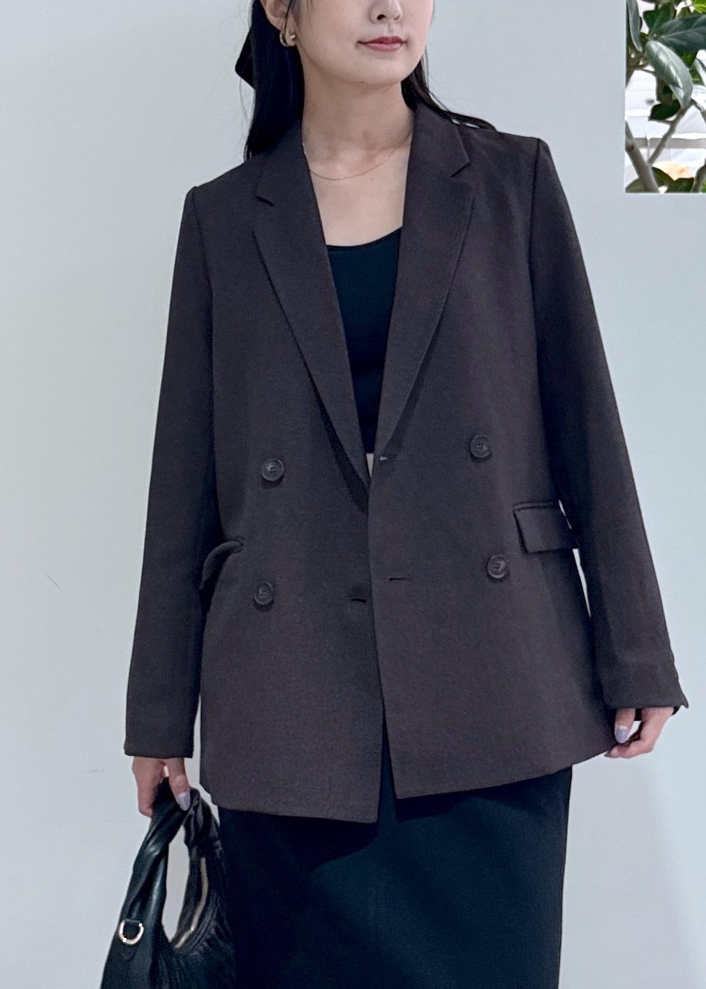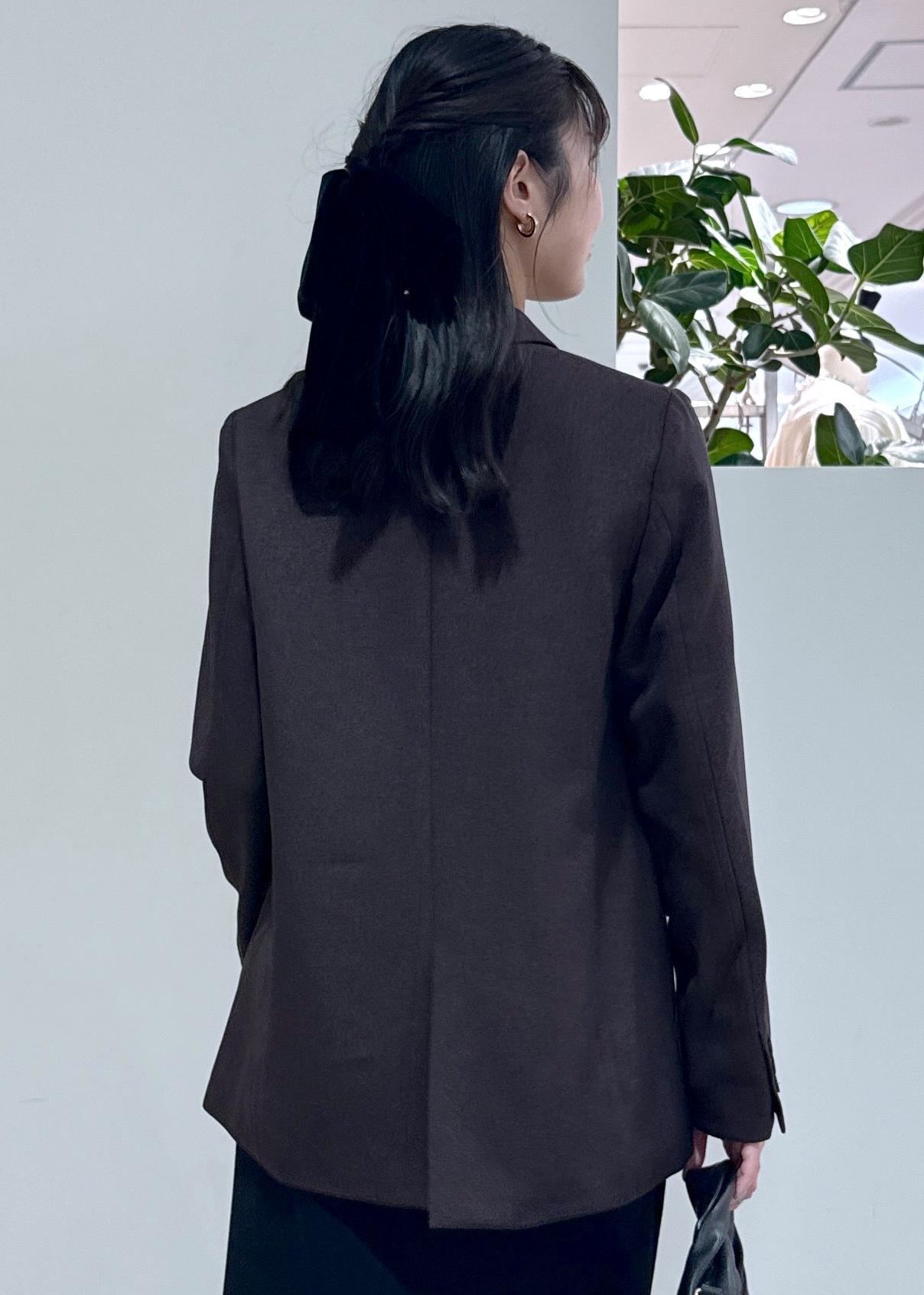 VIS【美easy】ウーリッシュダブルブレストテーラードジャケット【セットアップ対応/洗える】ダークブラウン / M¥8,899レビュー164cm、Mサイズ着用でヒップの隠れる丈感。