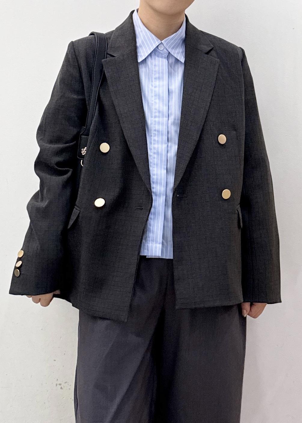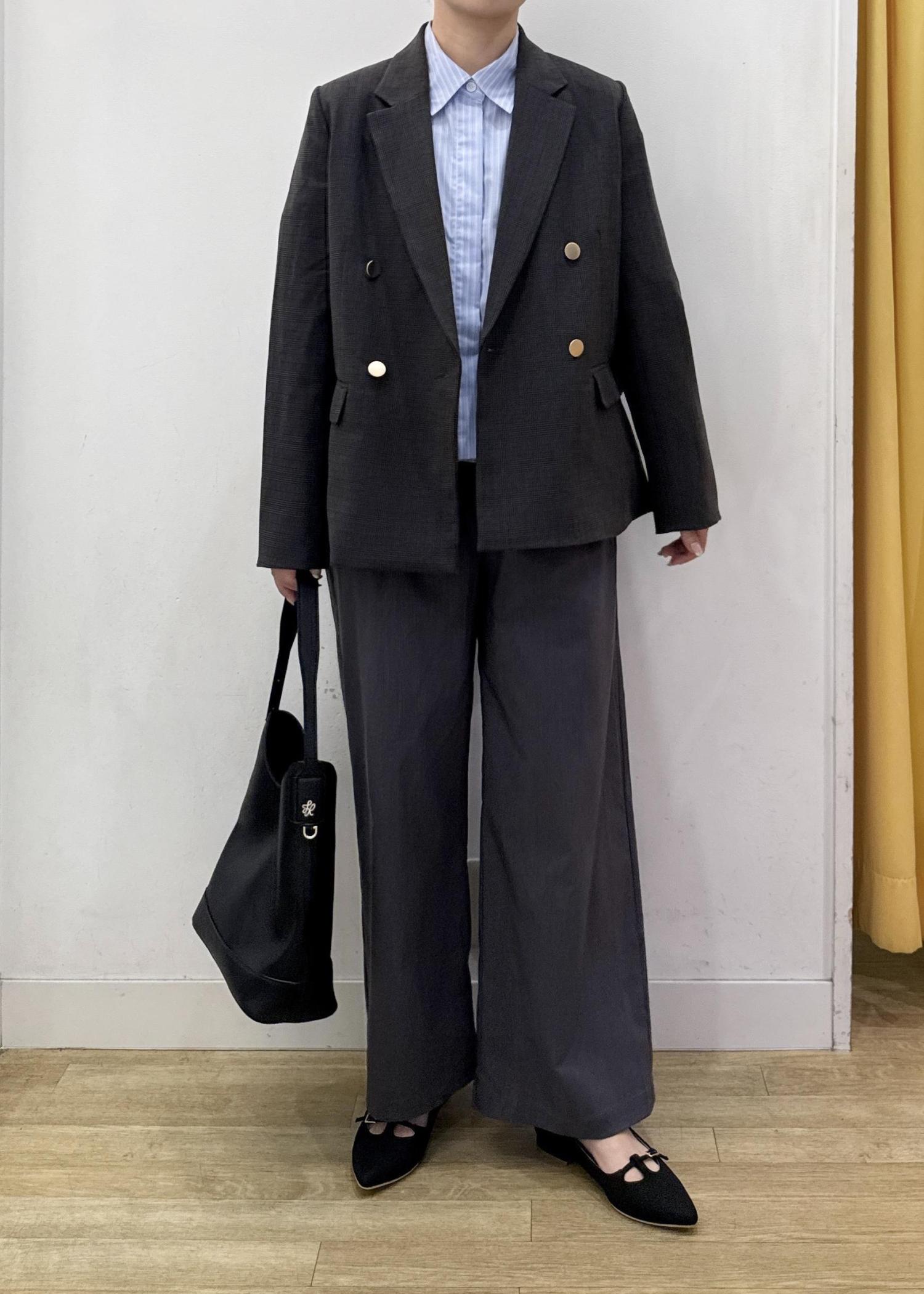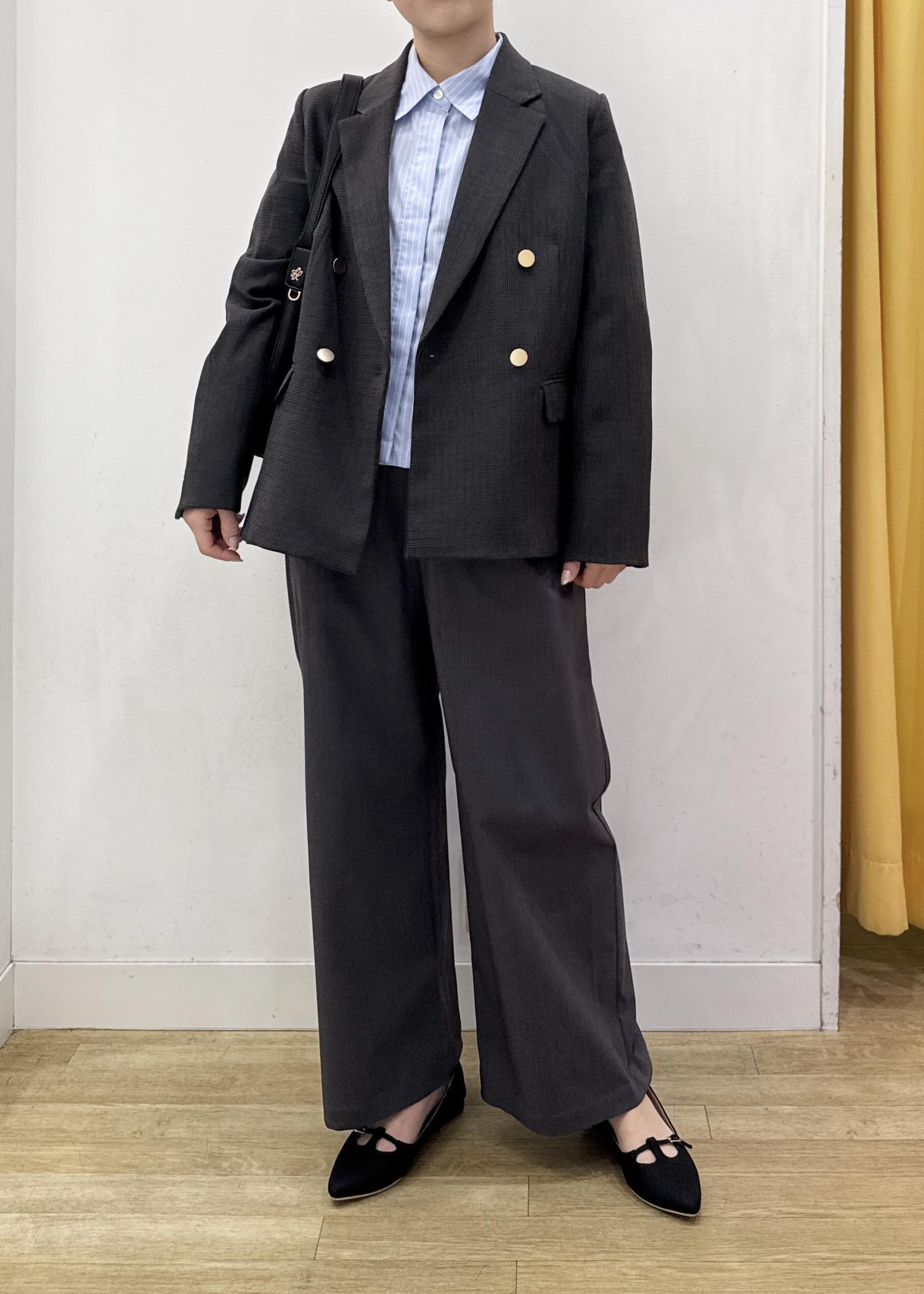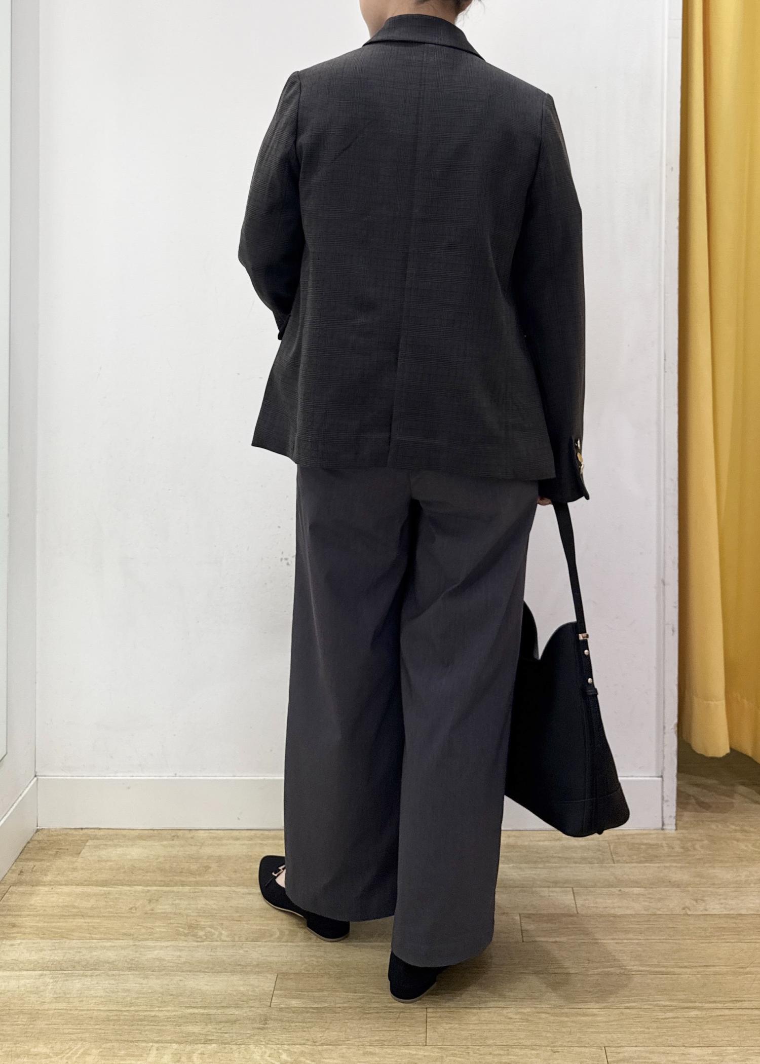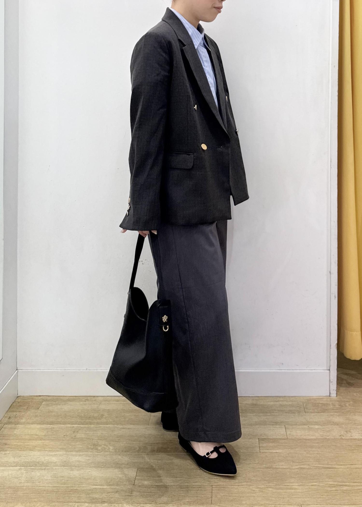 着丈はヒップにかかるぐらいの長さで、スカート、パンツどちらにも合わせやすい着丈です。 -