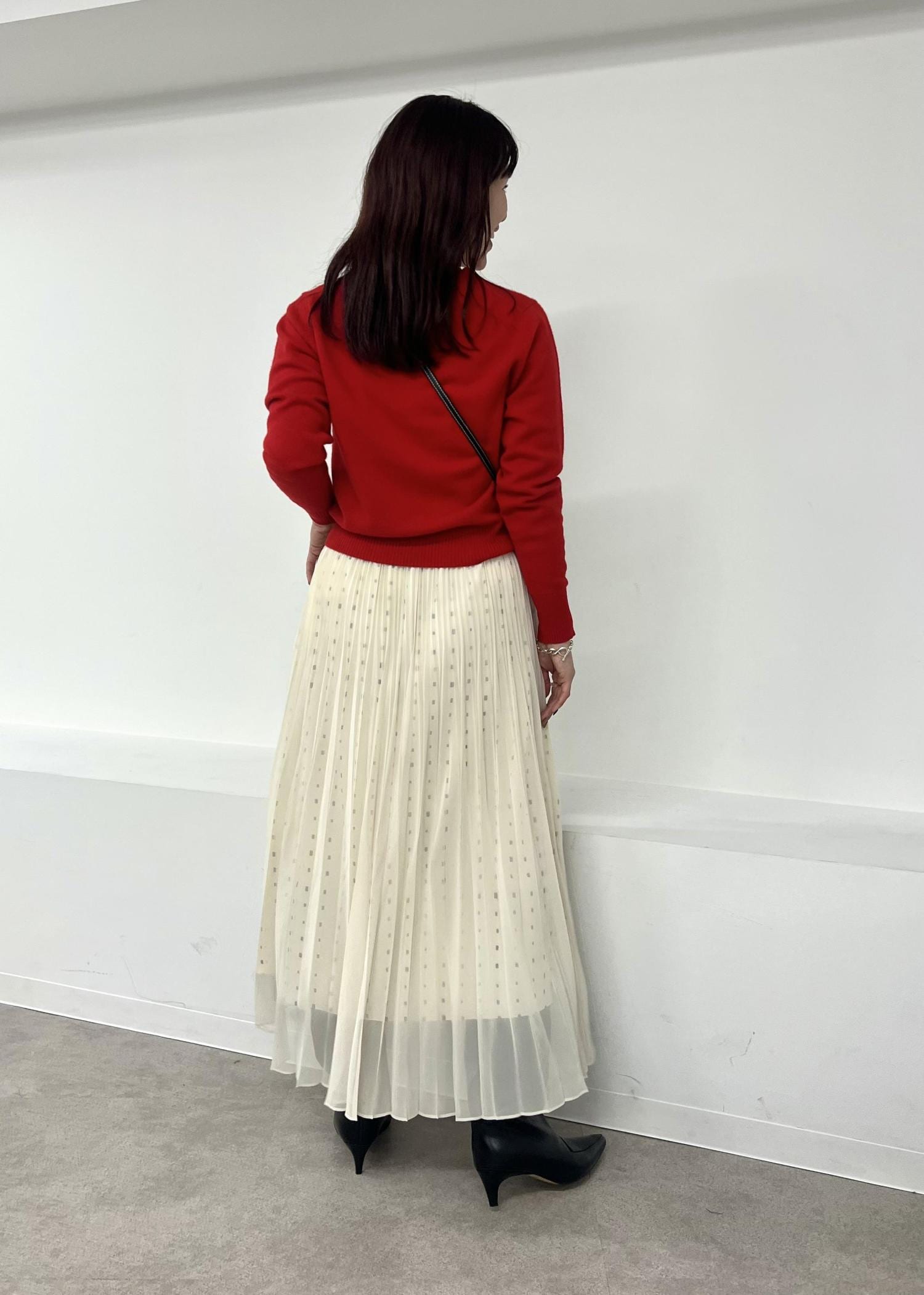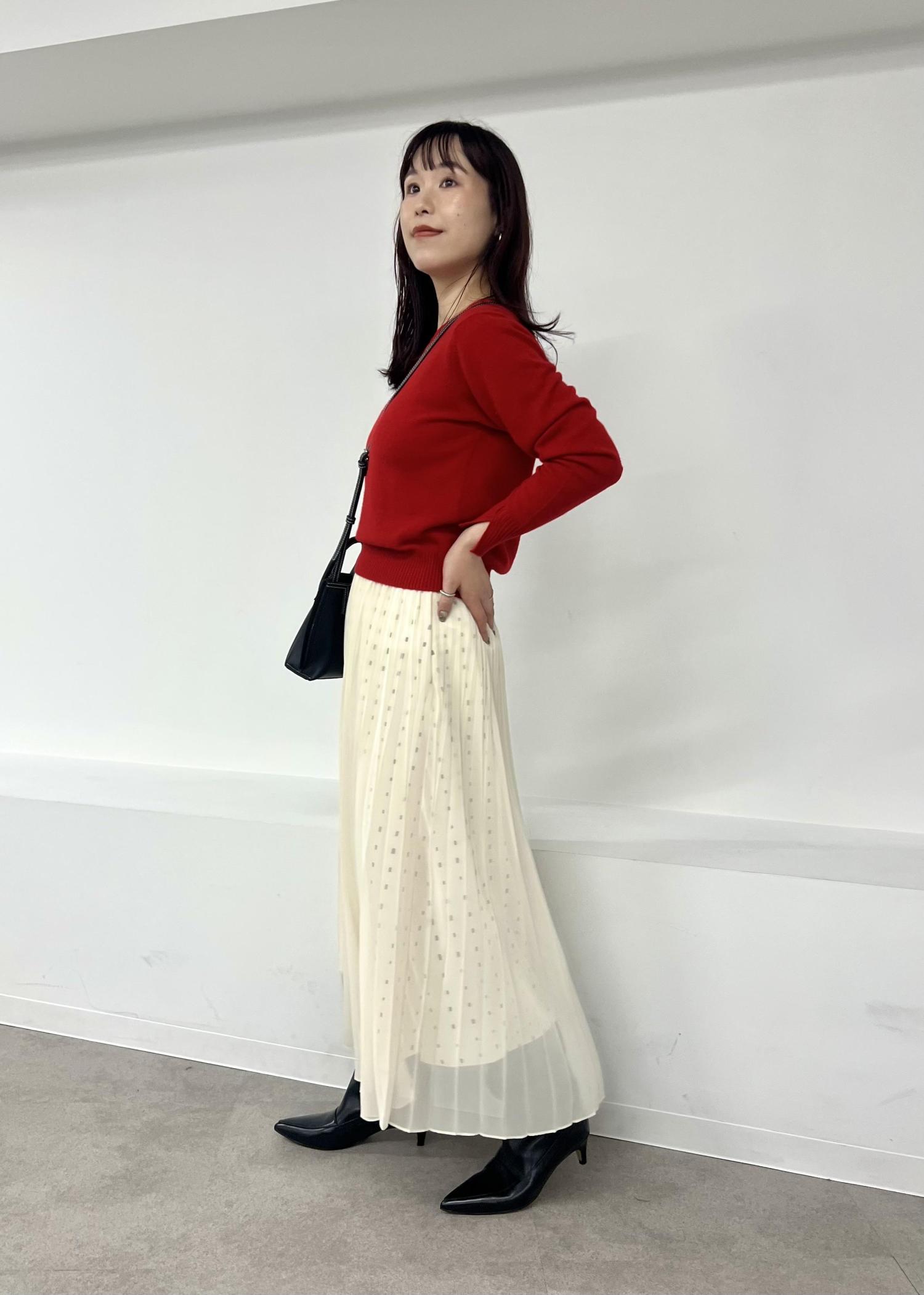 ボトムは動くたびに揺れ感が華やかなプリーツスカート。