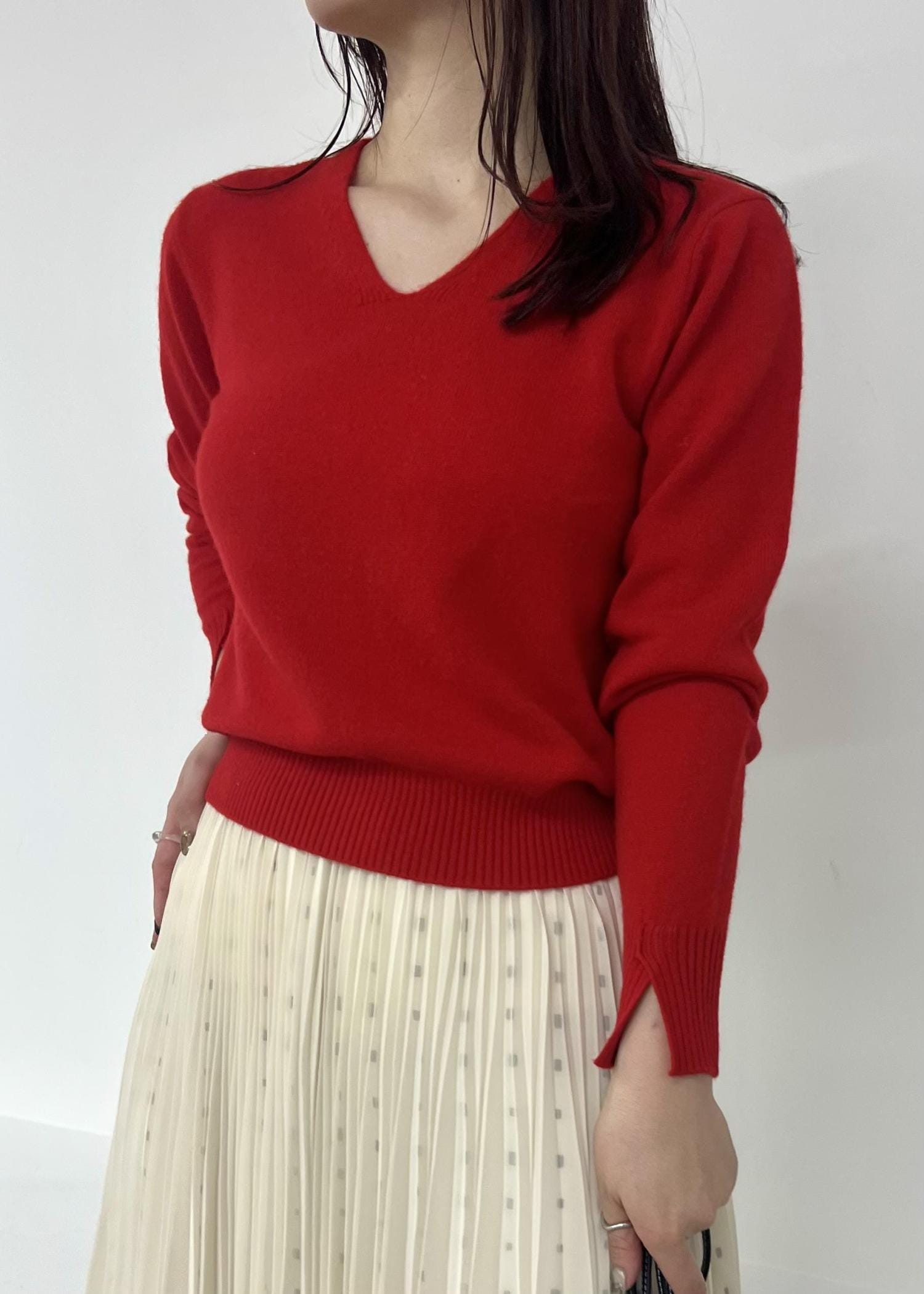 NEW!ROPÉカシミヤVネックニットプルオーバーレッド / F¥25,300レビュー着丈はお腹周りがカバーできるくらいでお尻は隠れない短めの丈感。裾にリブを施しているので、ブラウジングが簡単に出来ます◎