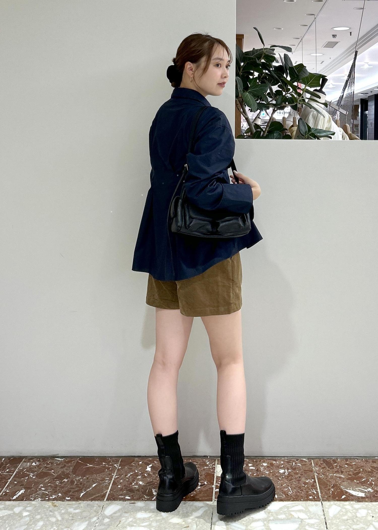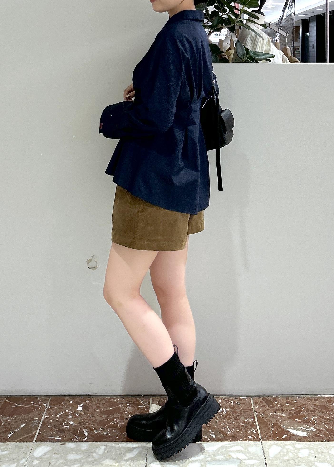 生地は程よい厚みがありストレッチ性のある生地感です。 -