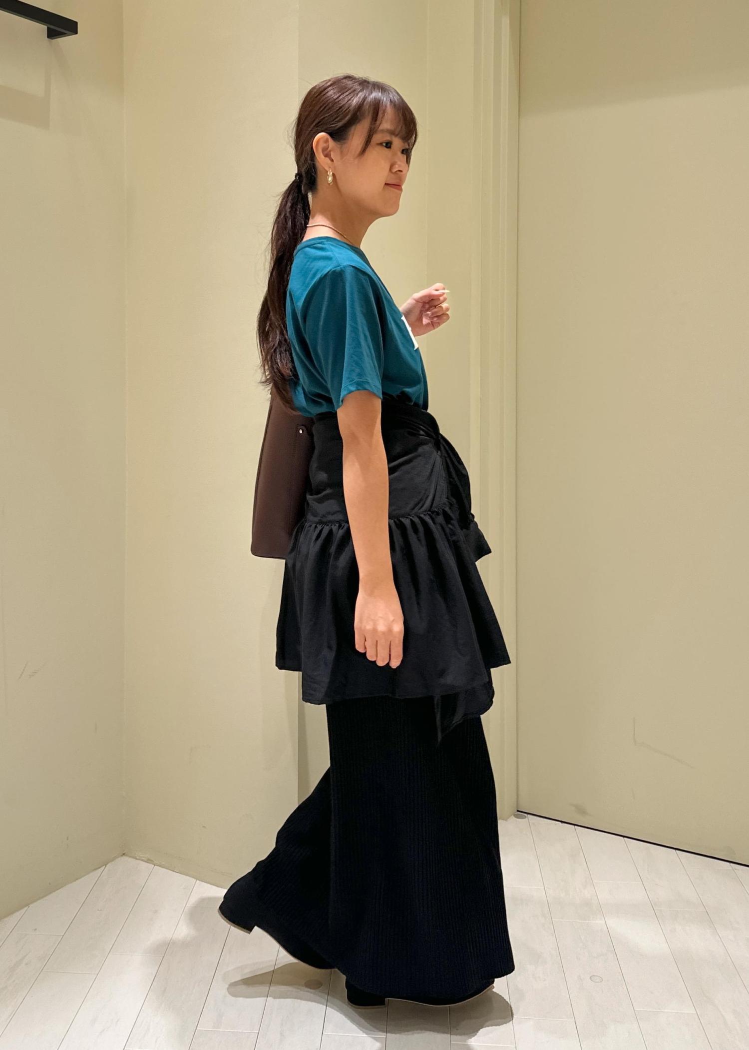 150cmの私でMサイズ着用していますが、ウエストが少しゆるめなのでウエスト細身の方はSサイズをオススメします。