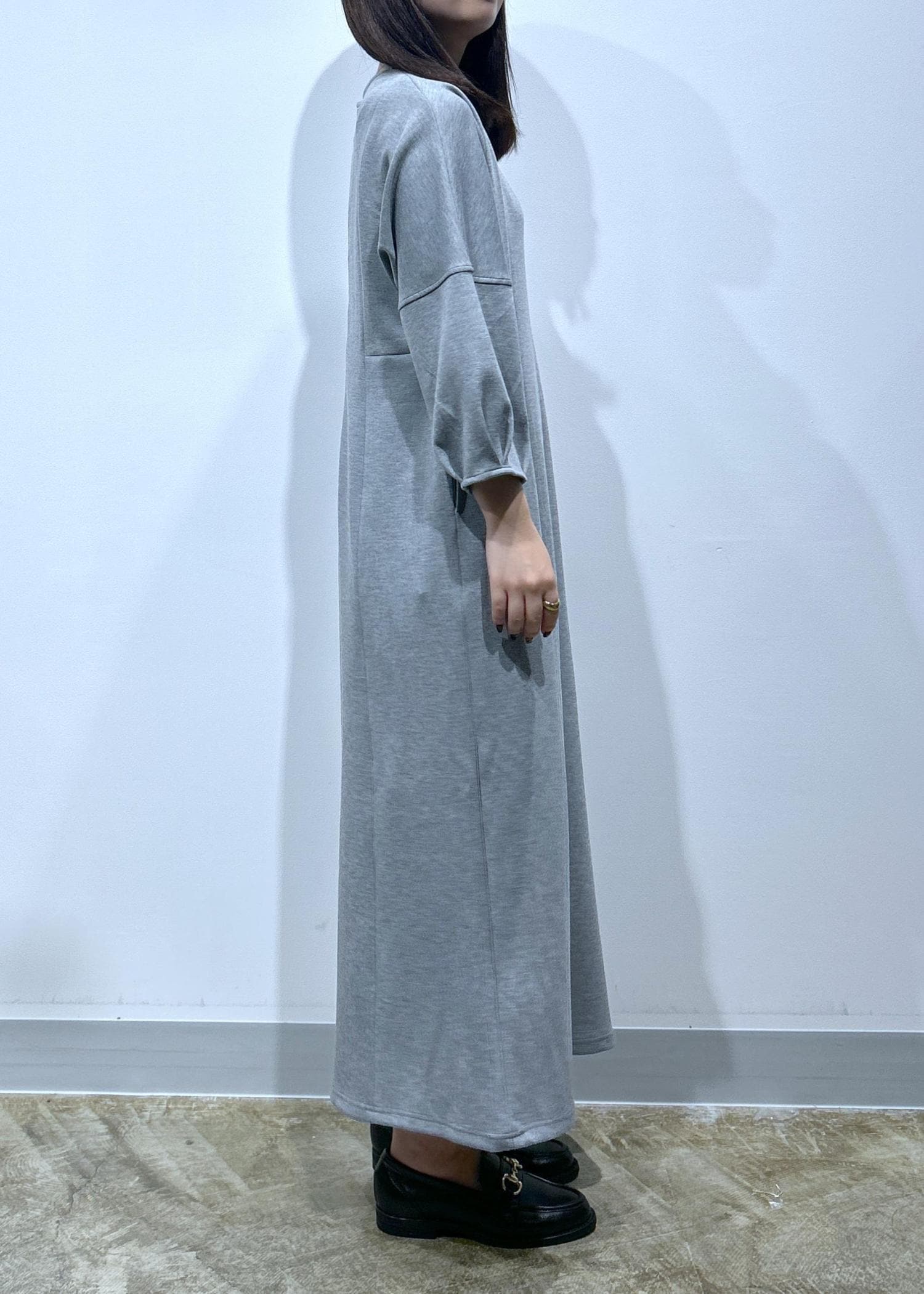 LE CERCLE par ropéフォルムワンピースグレー / F¥4,675レビューオーバーサイズながら落ち感があり、膨らみとのバランスでスタイルが綺麗に見えます!
