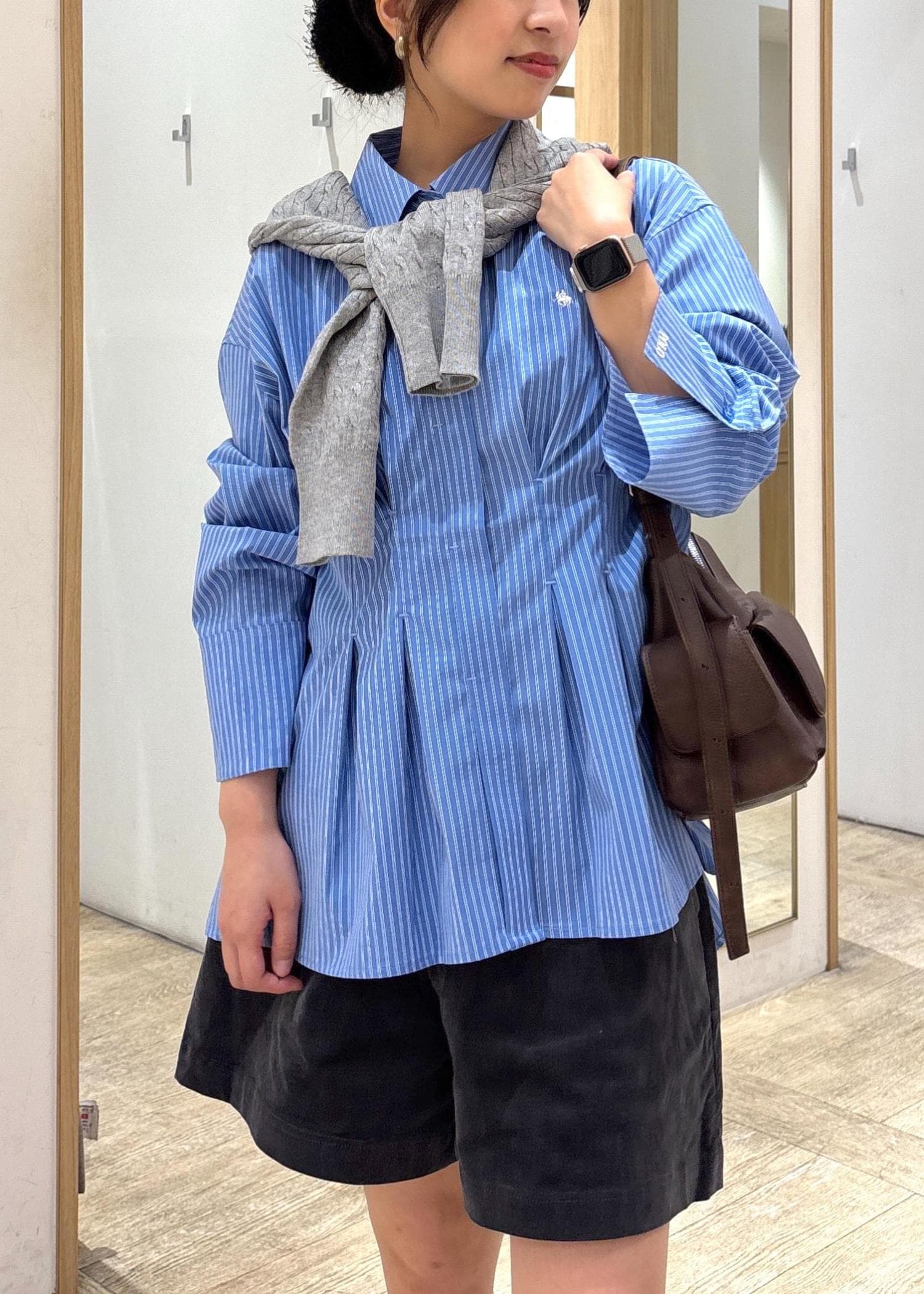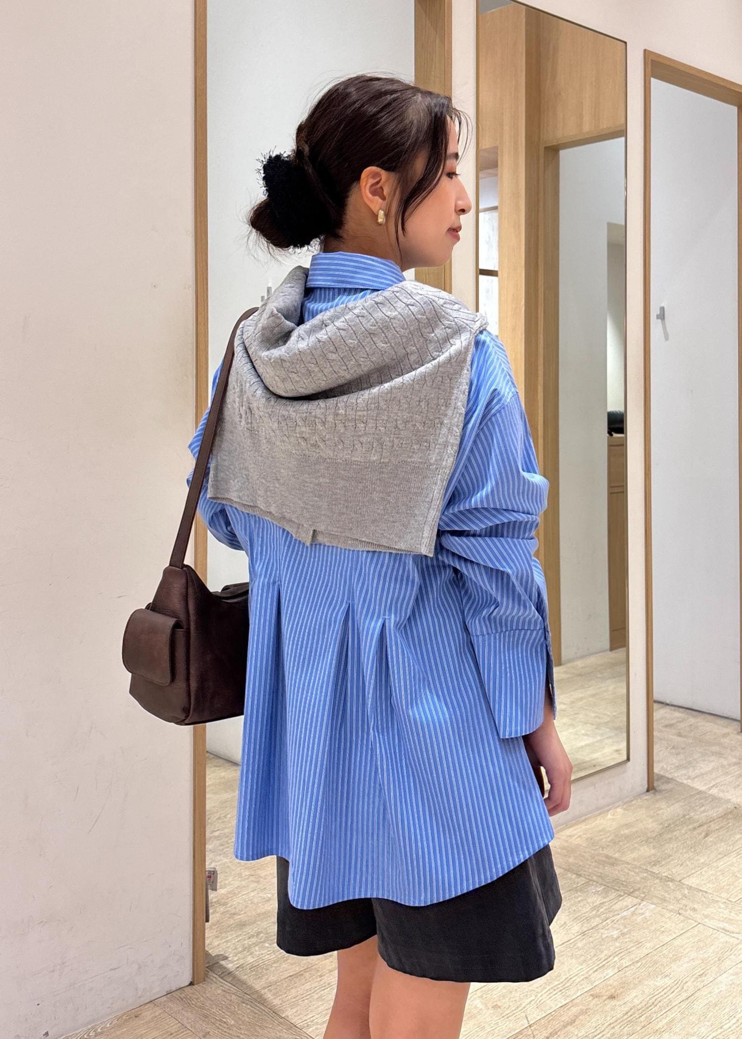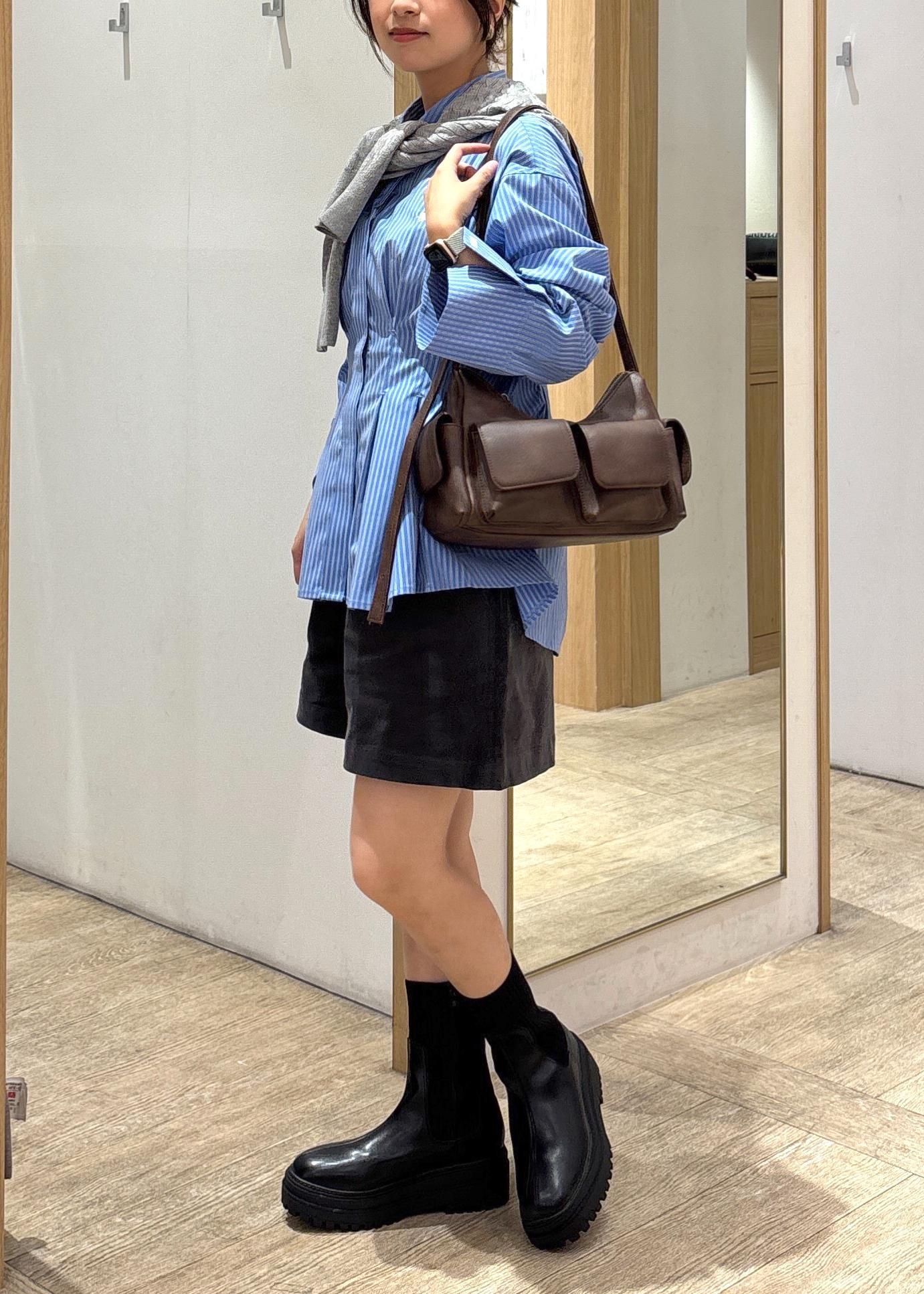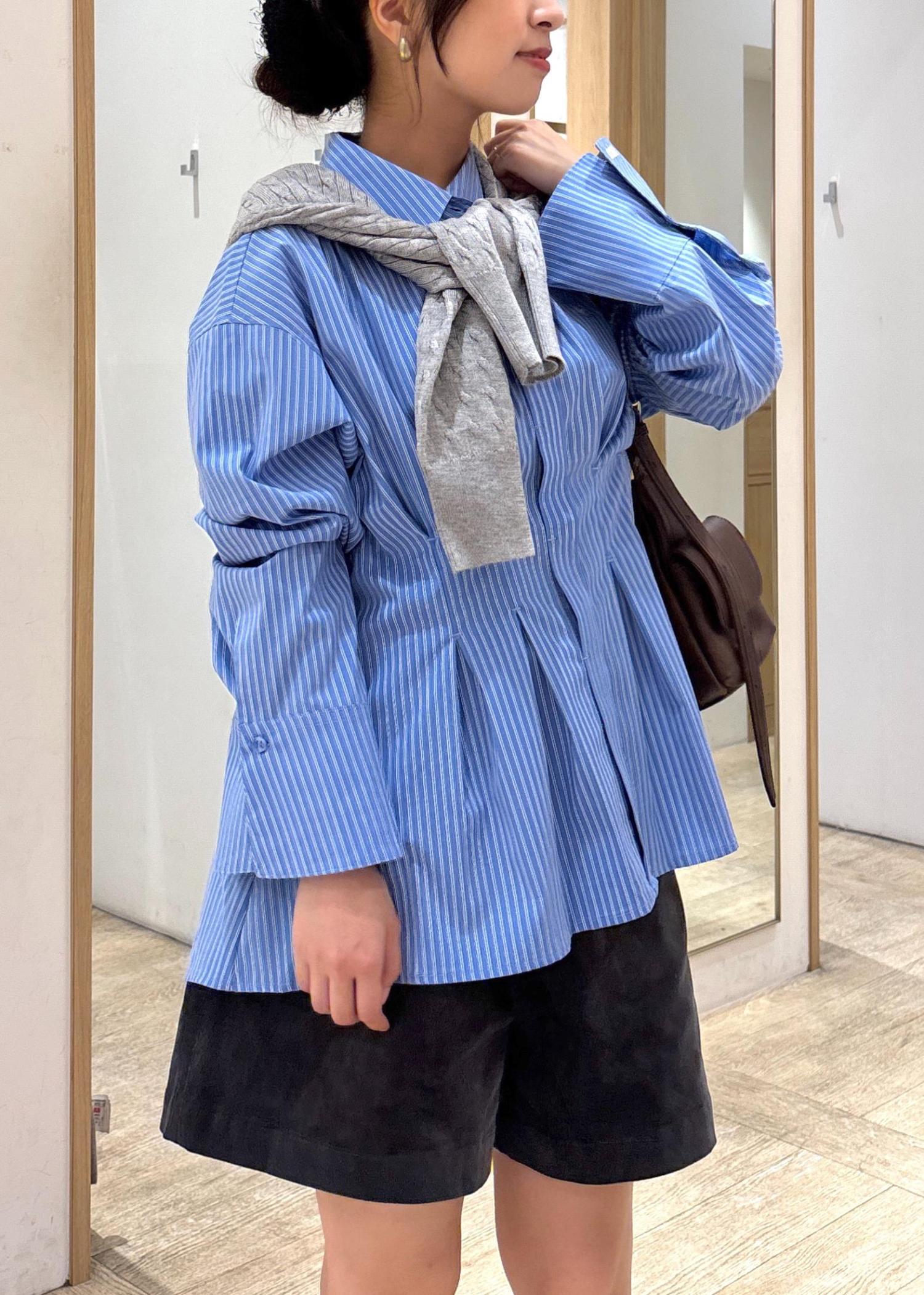 シャツはスウェットやカーディガンとレイヤードして着ると、寒くなってからも着やすくておすすめ☺︎