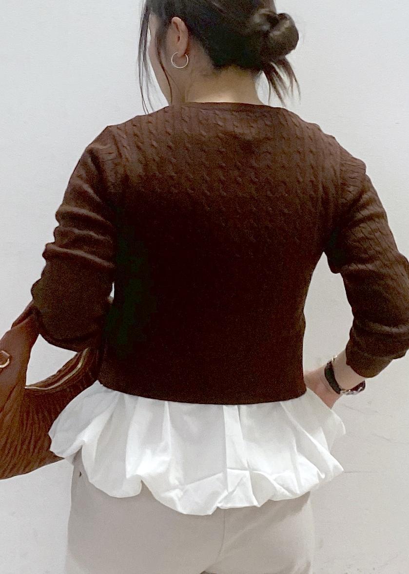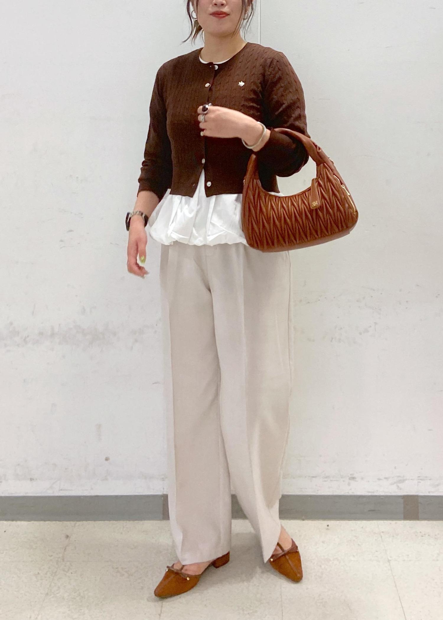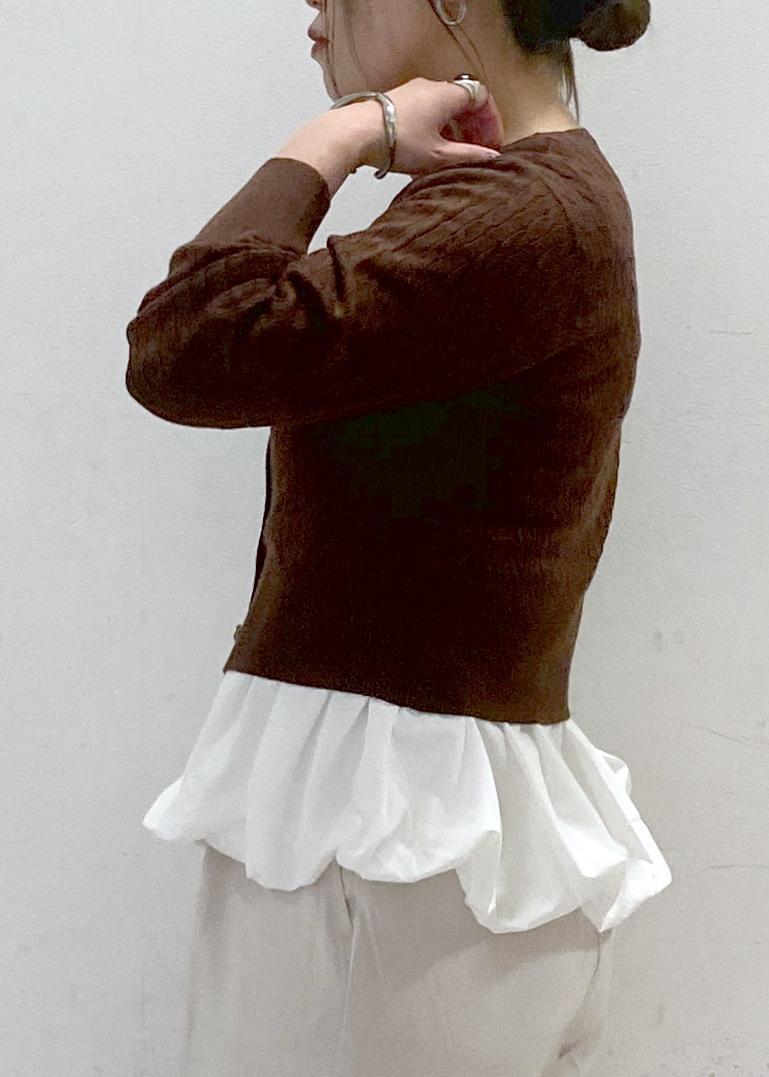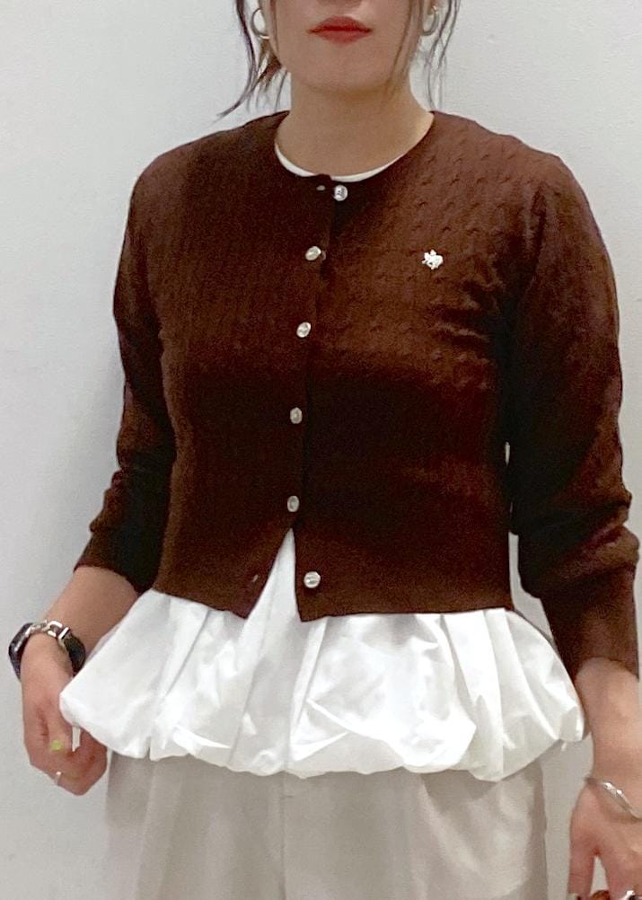 VIS【POLO BCS】VIS別注ミニケーブルノーカラーニットカーディガンダークブラウン / F¥6,930レビューおへそが隠れる丈感です。
