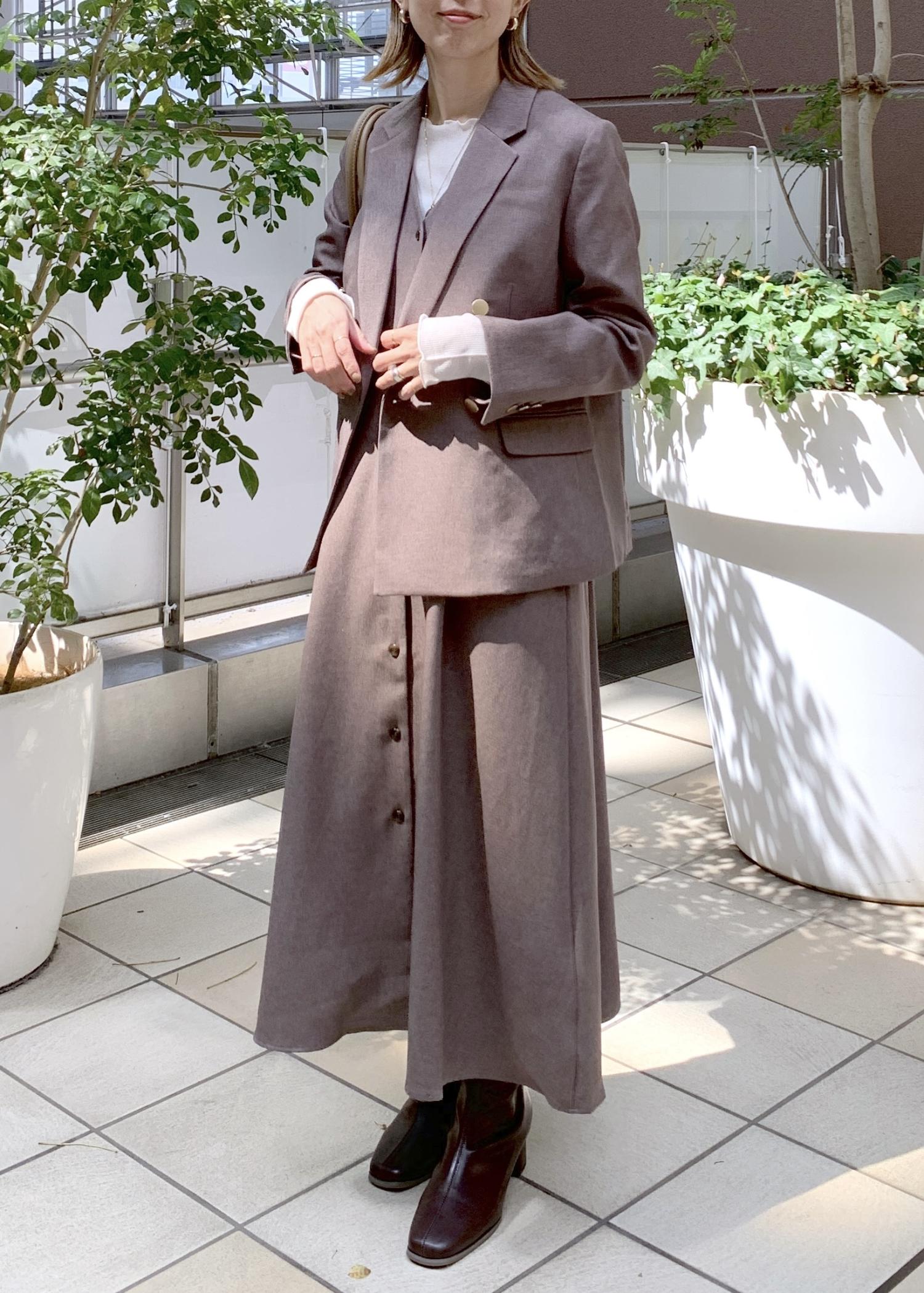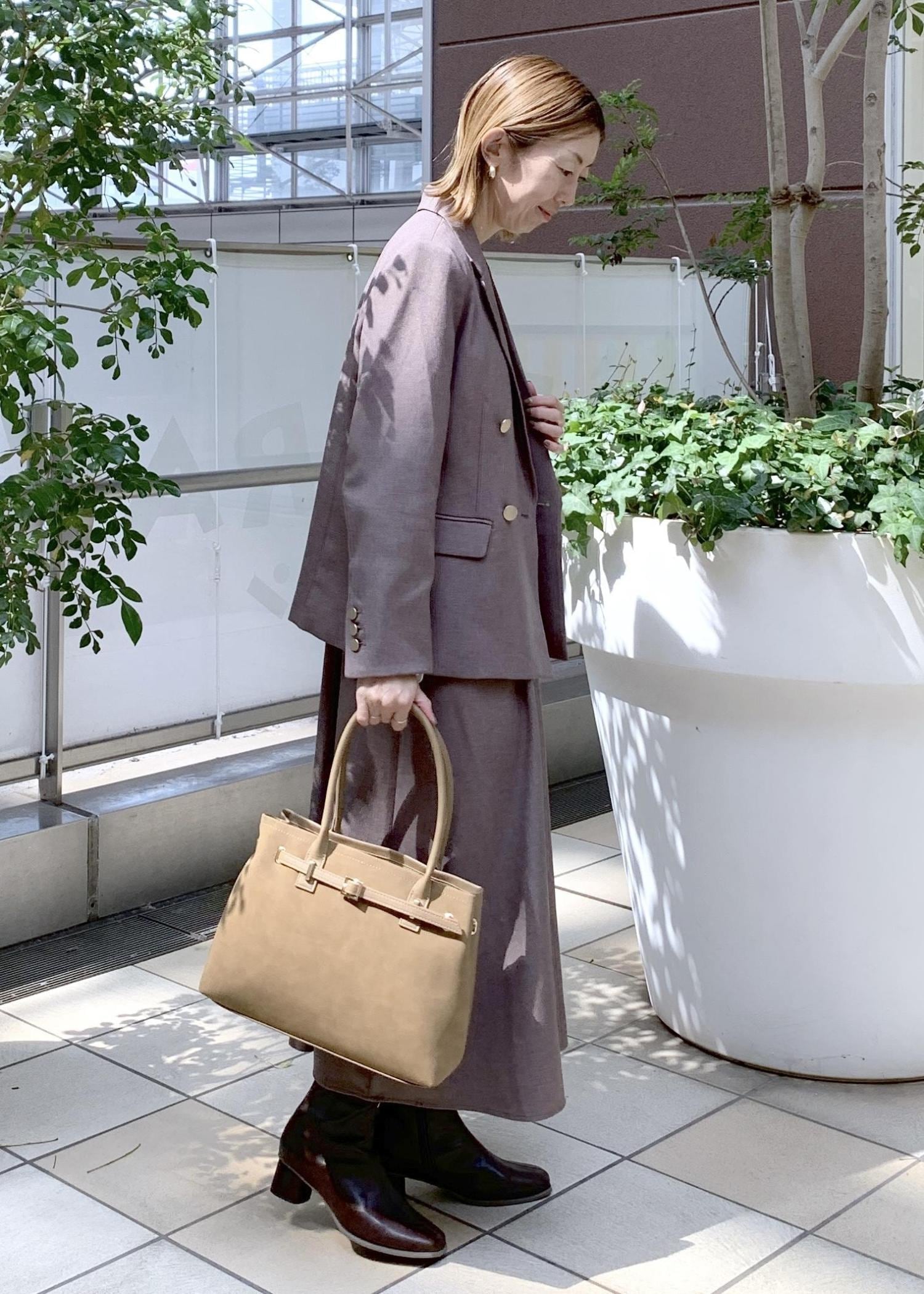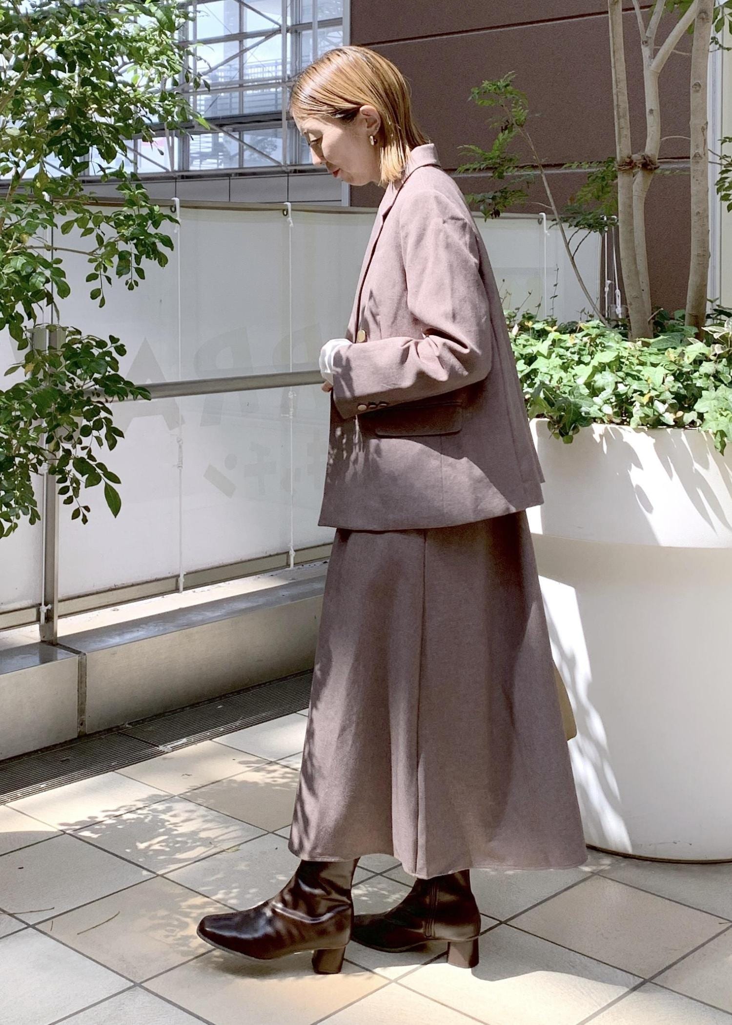 レディハンサムシリーズのジャケットとジャンスカのセットアップ。