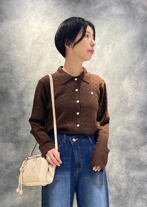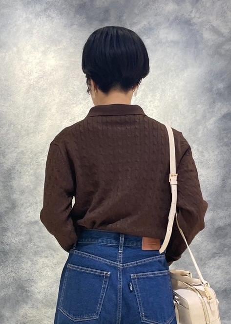 VIS【POLO BCS】VIS別注ミニケーブルポロ襟ニットカーディガンダークブラウン / F¥7,150レビュー柔らかい素材でチクチク感なく着て頂けます。
