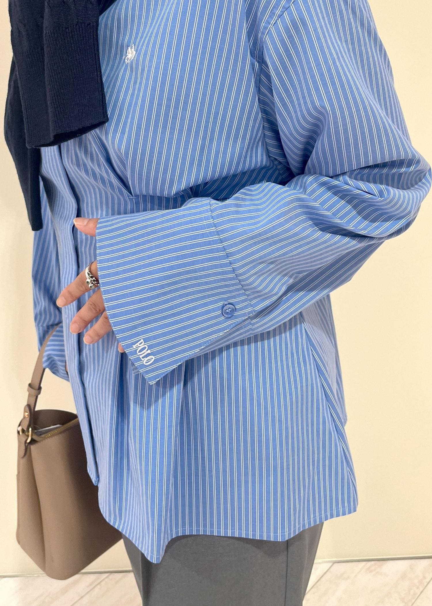 VIS【POLOBCS】VIS別注ウエストタックフレアシャツブルー系 / F¥6,930レビューオーバーサイズなシャツで一枚で着ても、羽織りとしても◎