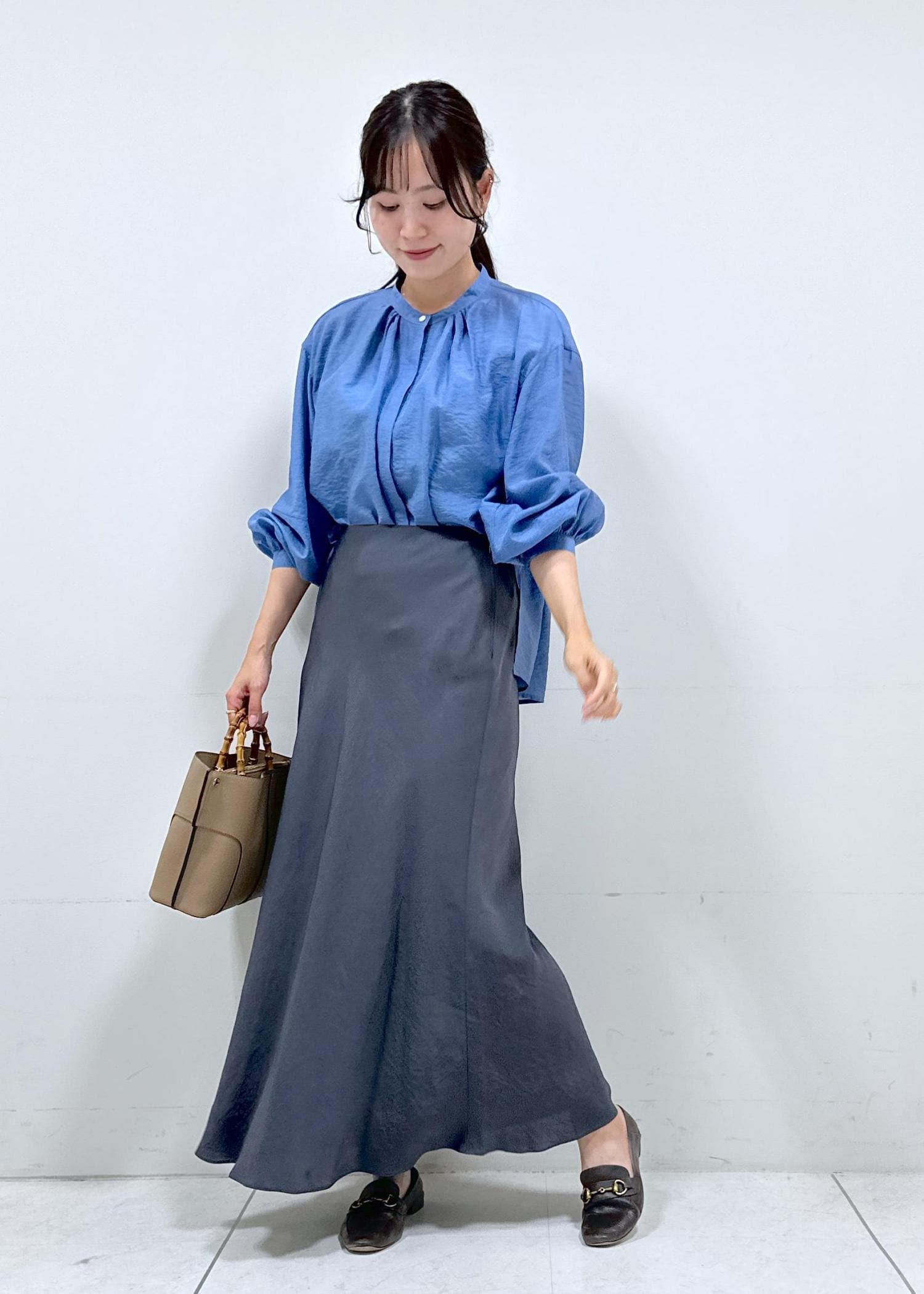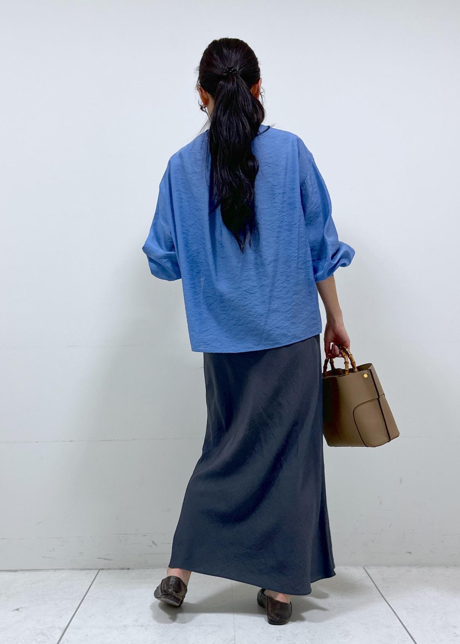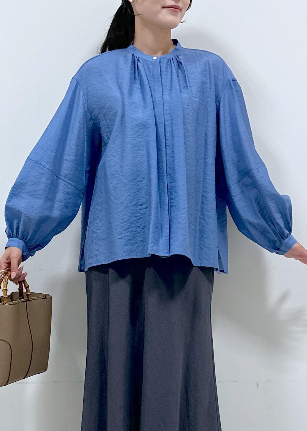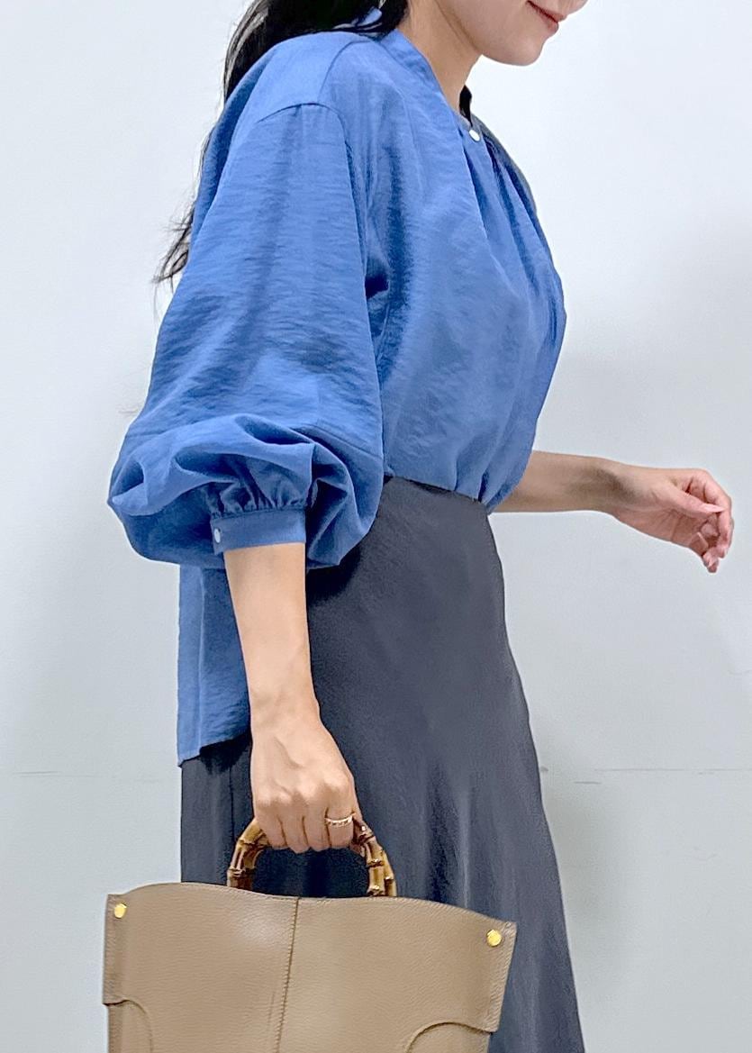 ROPÉキュプラシルクボリュームスリーブブラウス/イージーケアブルー系 / F¥19,800レビュー身長162cmのフリーサイズ着用。