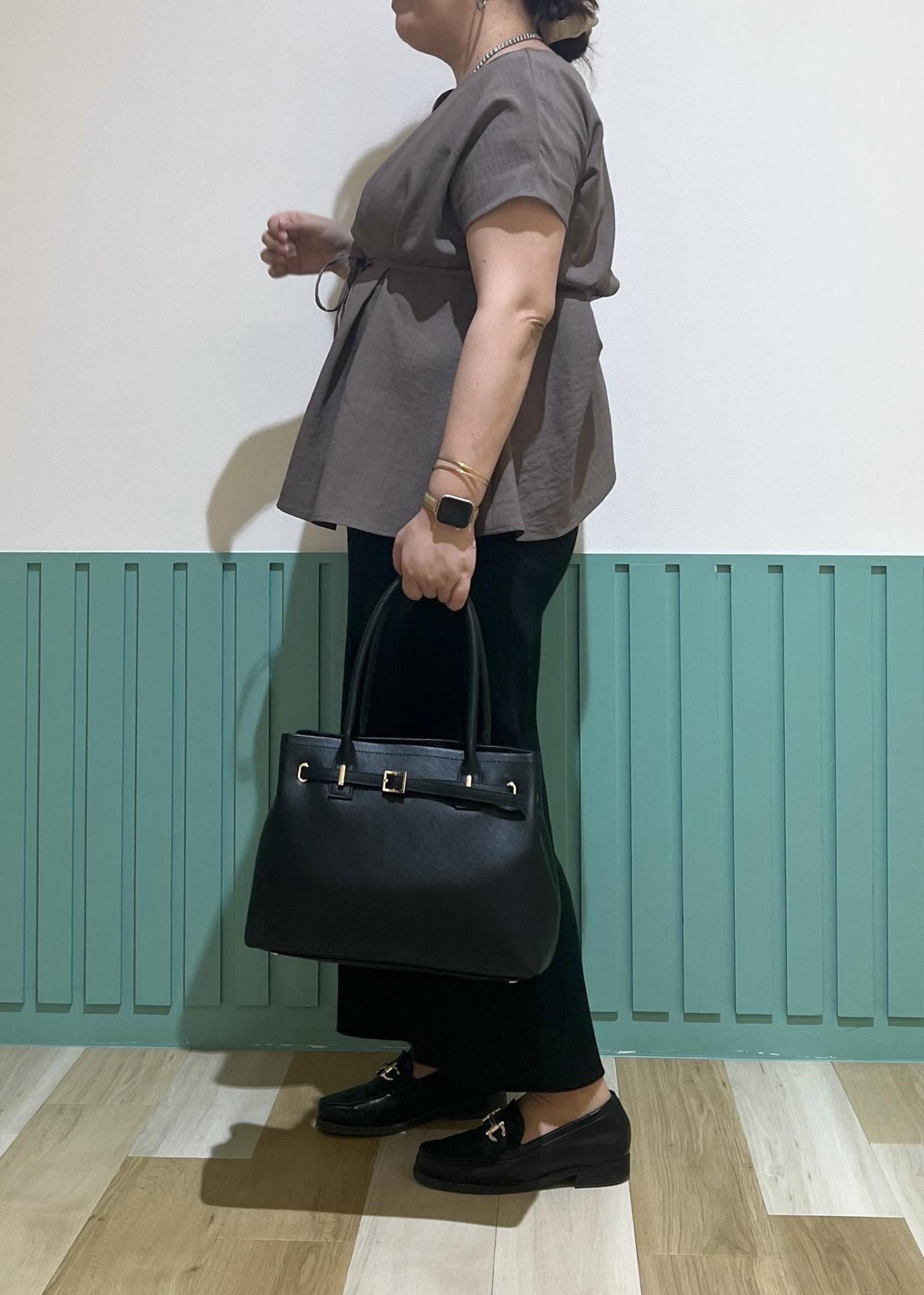 ROPÉ PICNIC PASSAGEベルトデザインクラシックトートバッグブラック / F¥4,612レビューちょうど良いサイズ感のバッグ。