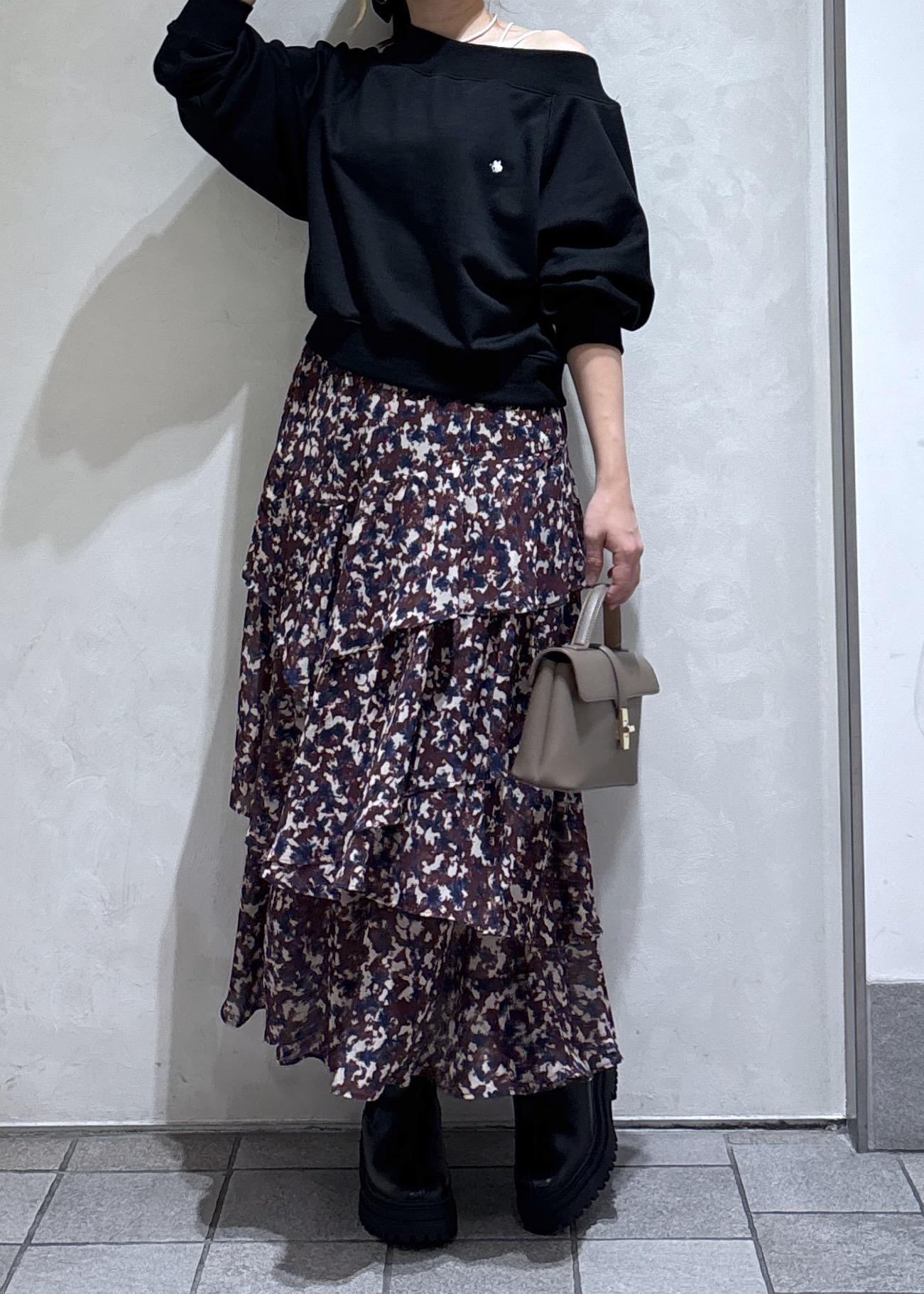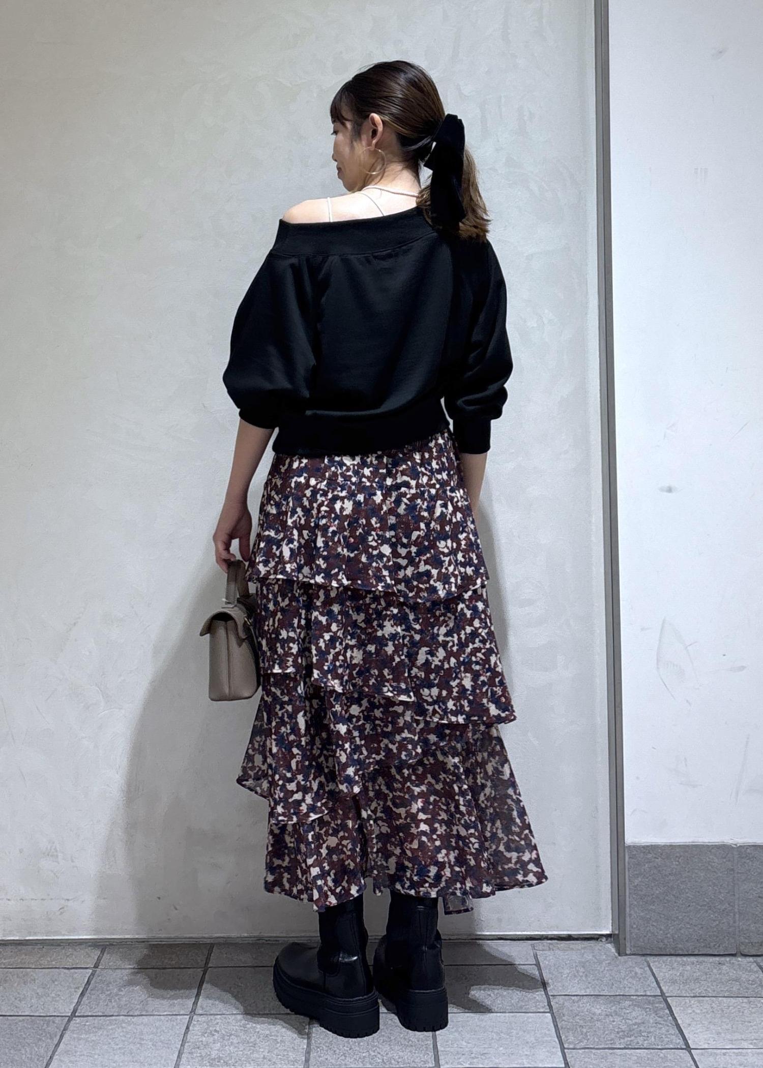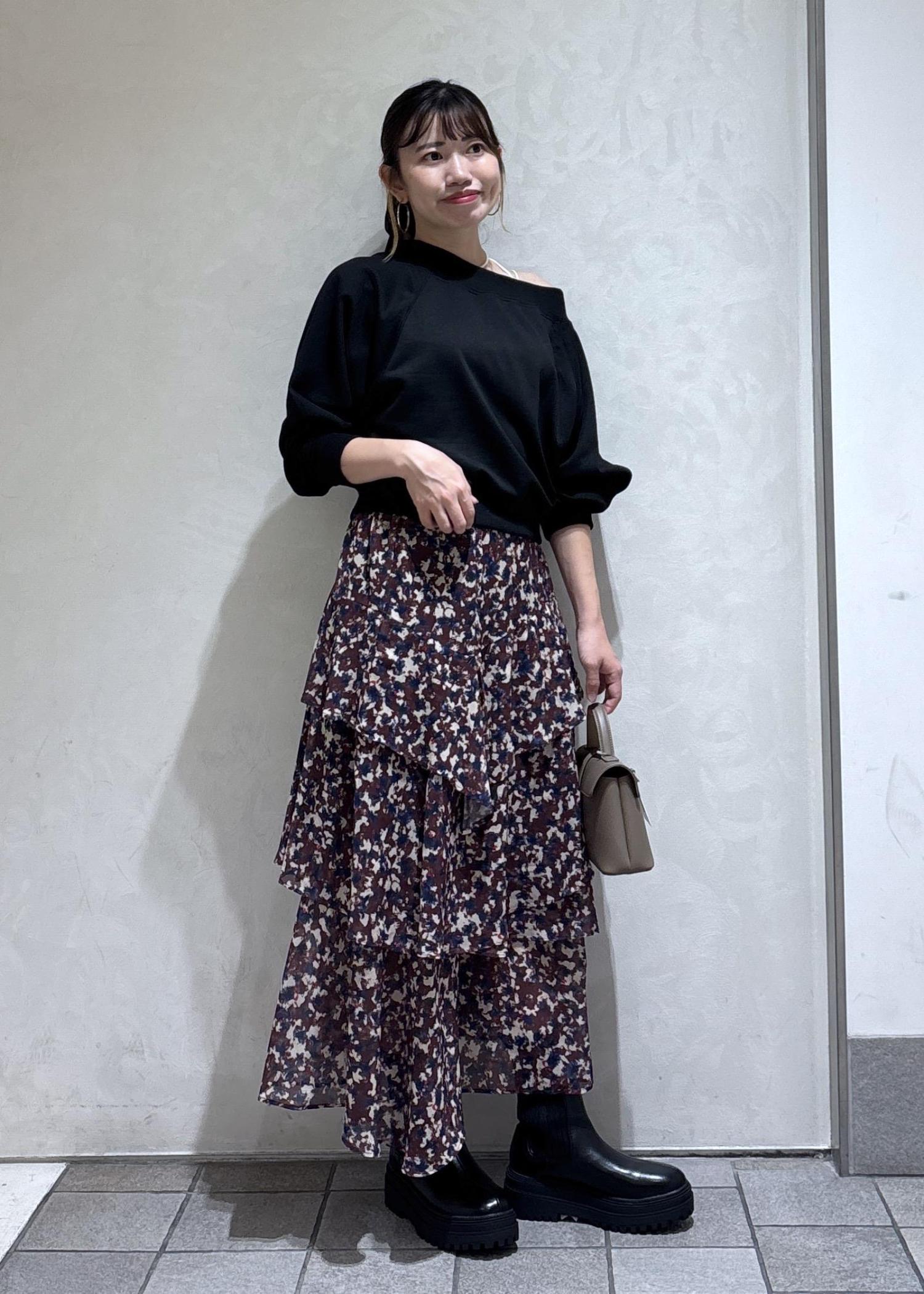 VIS花柄アソート楊柳ティアードスカートブラウン系 / F¥4,613レビューウエストゴムなので履きやすいです!