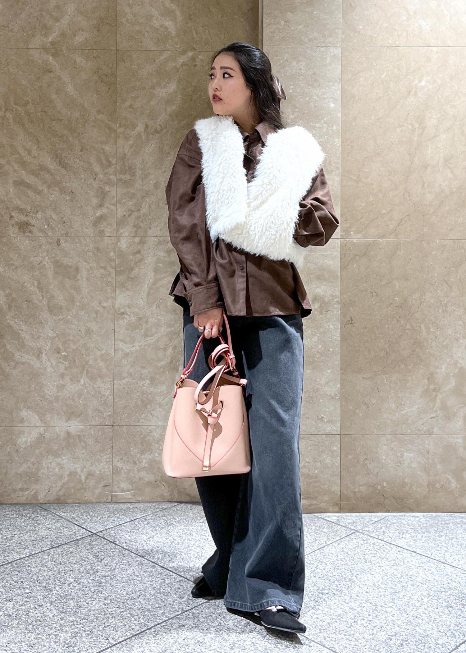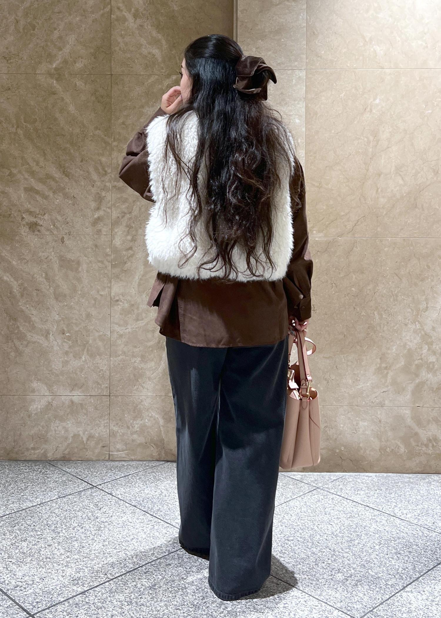 VISスエードライクロングスリーブシャツダークブラウン系 / F¥4,843レビュースエードの感じがとても可愛く少しビックシルエットな感じもカジュアルにも綺麗めにも着用できます◎
