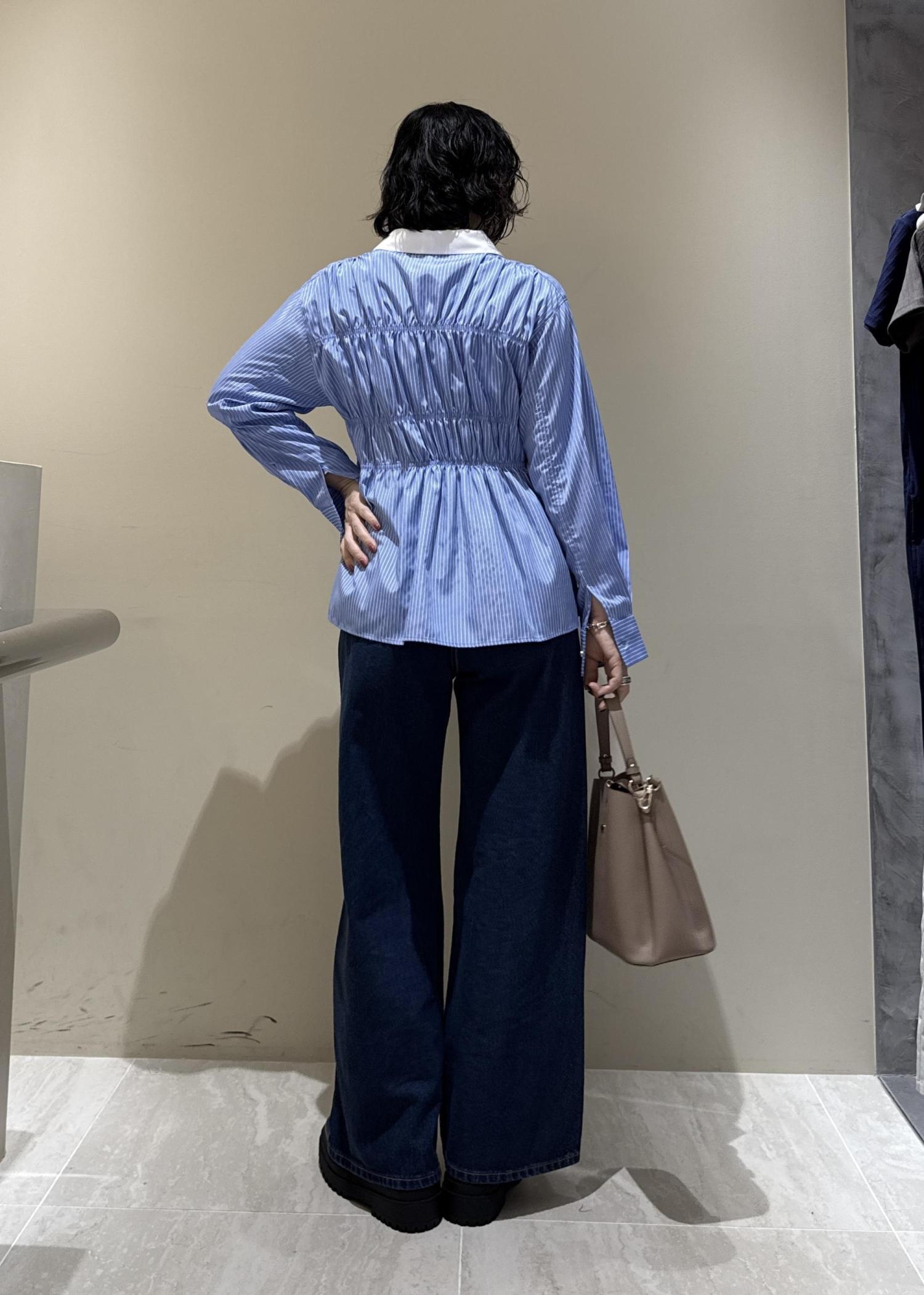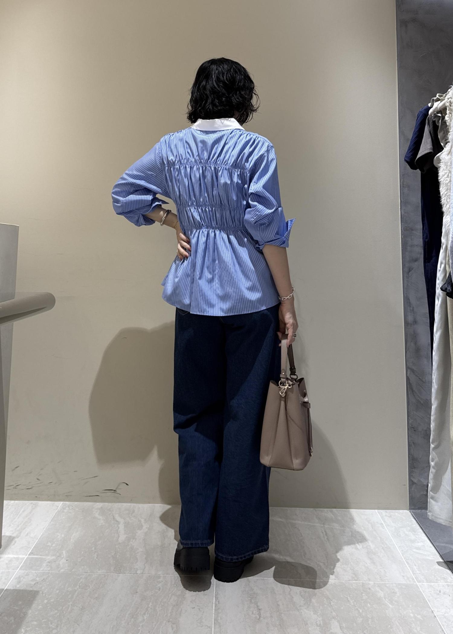 シャツなのにシワになりにくくシャーリング部分がゴムでとても楽な着心地なんです!
