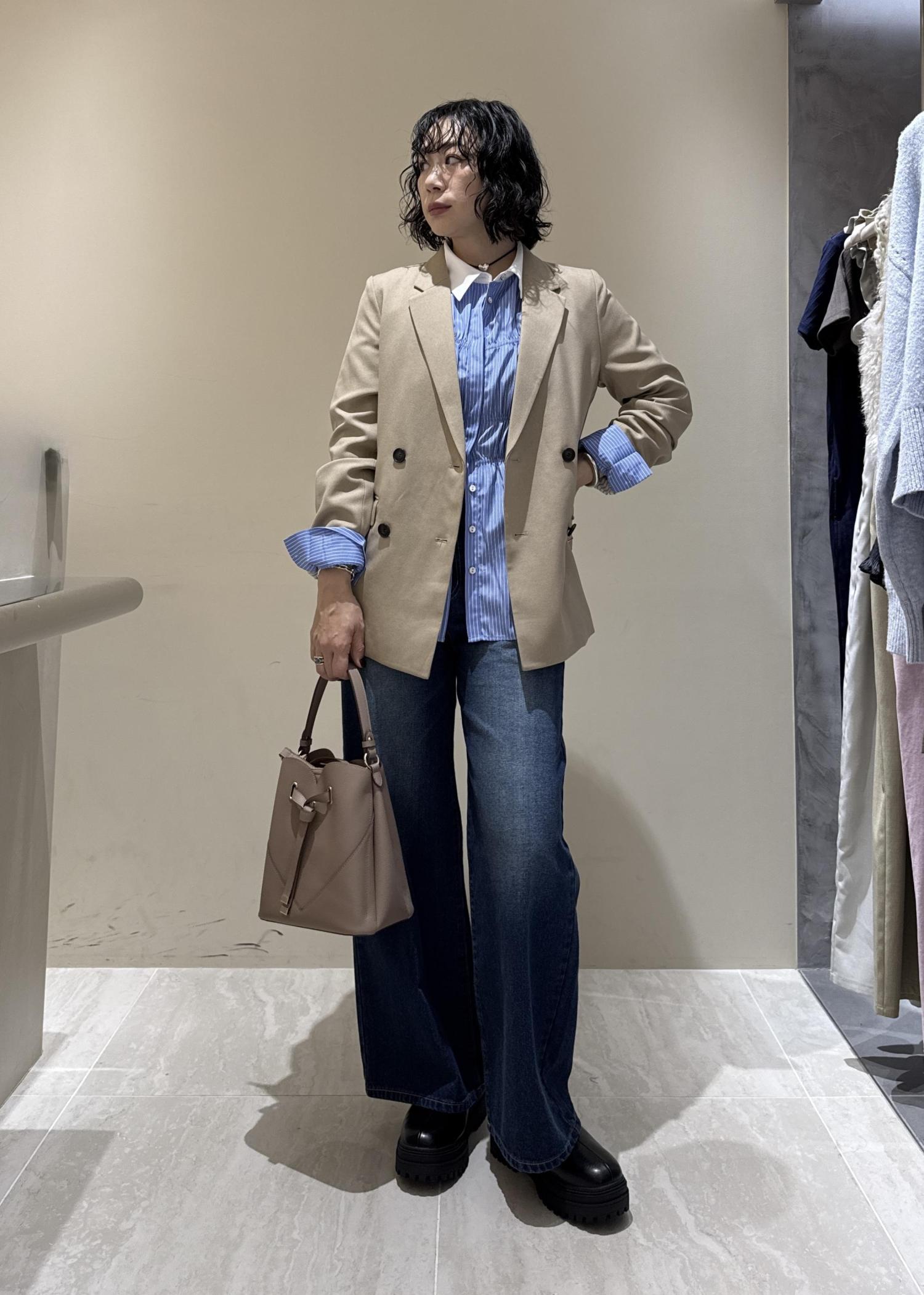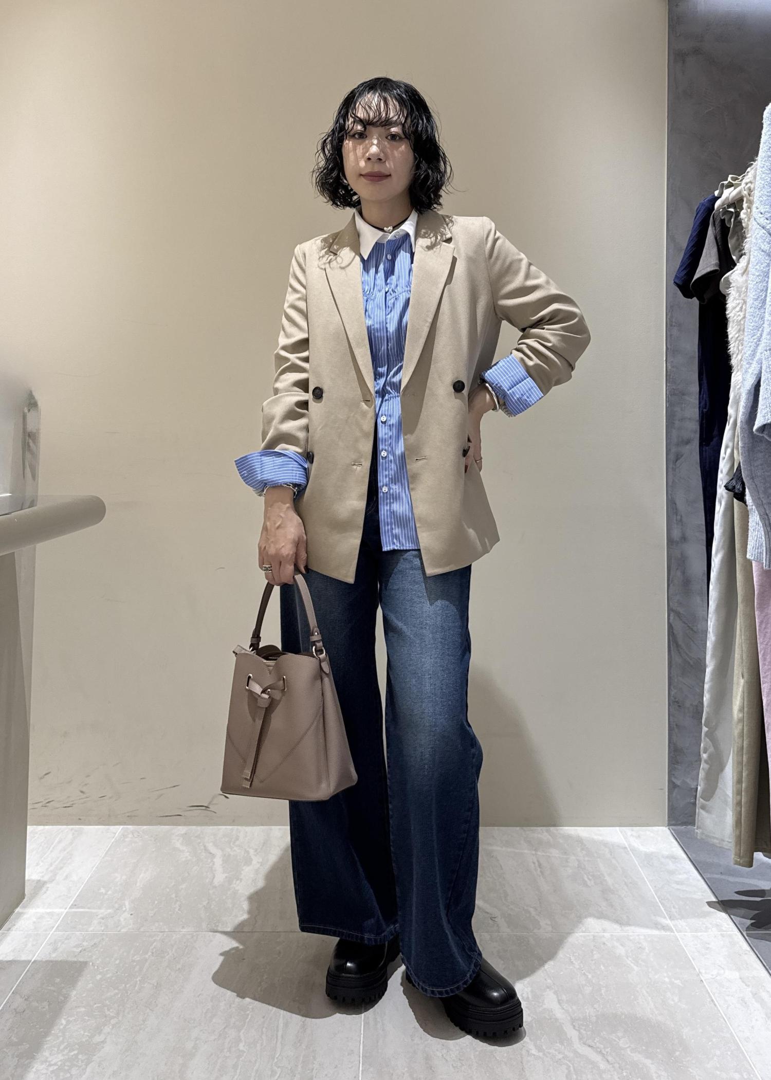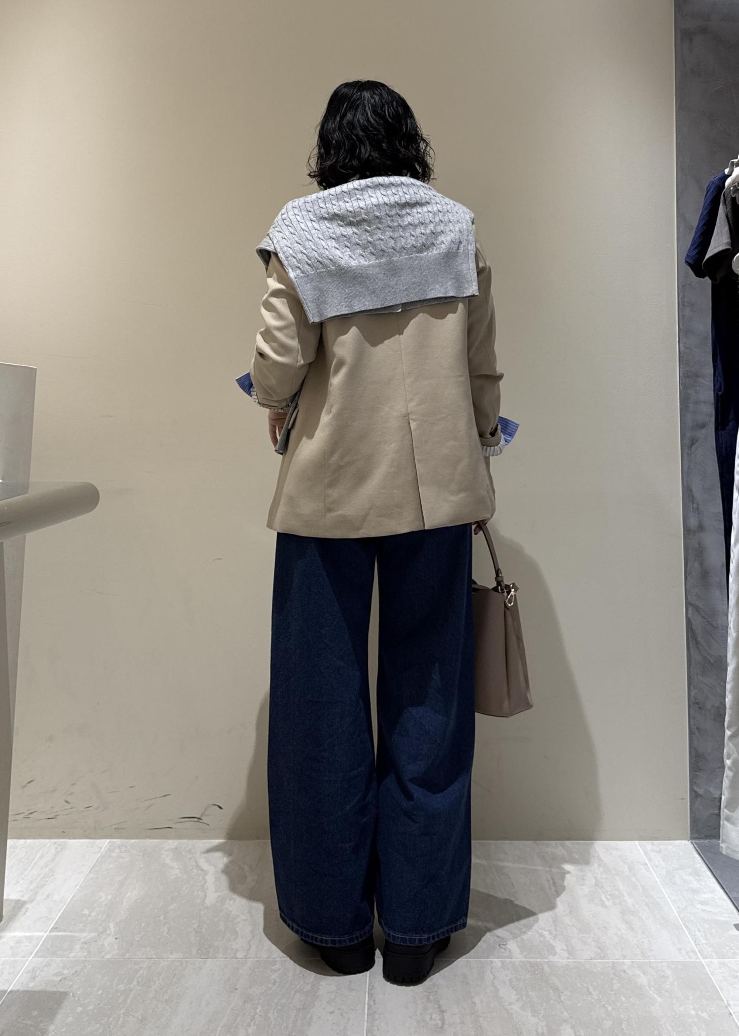 袖周りは余裕があり、着丈が少し短めなコンパクトなシルエットですのでハイウエストのボトムとの相性はバッチリです◎