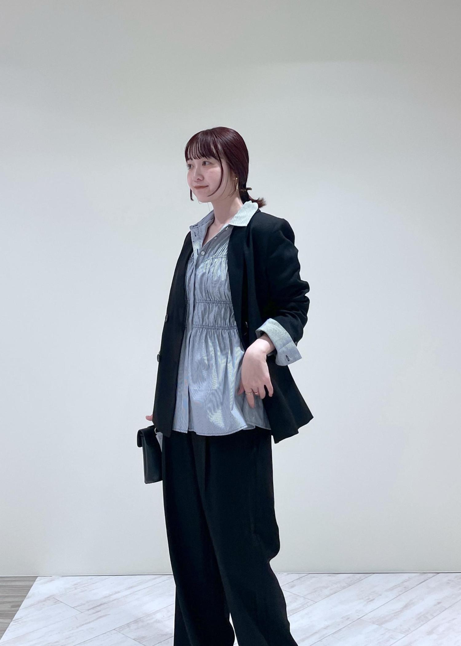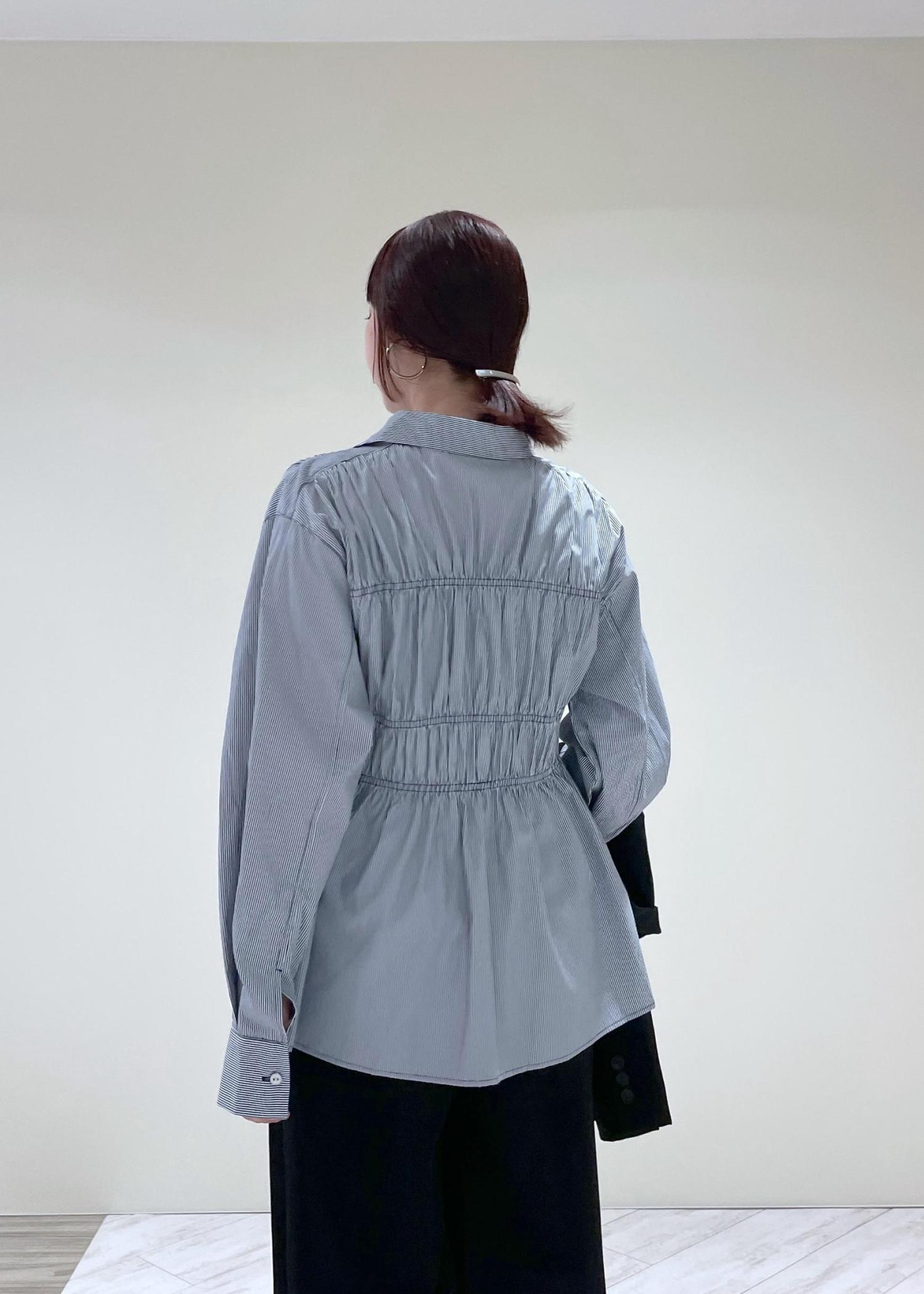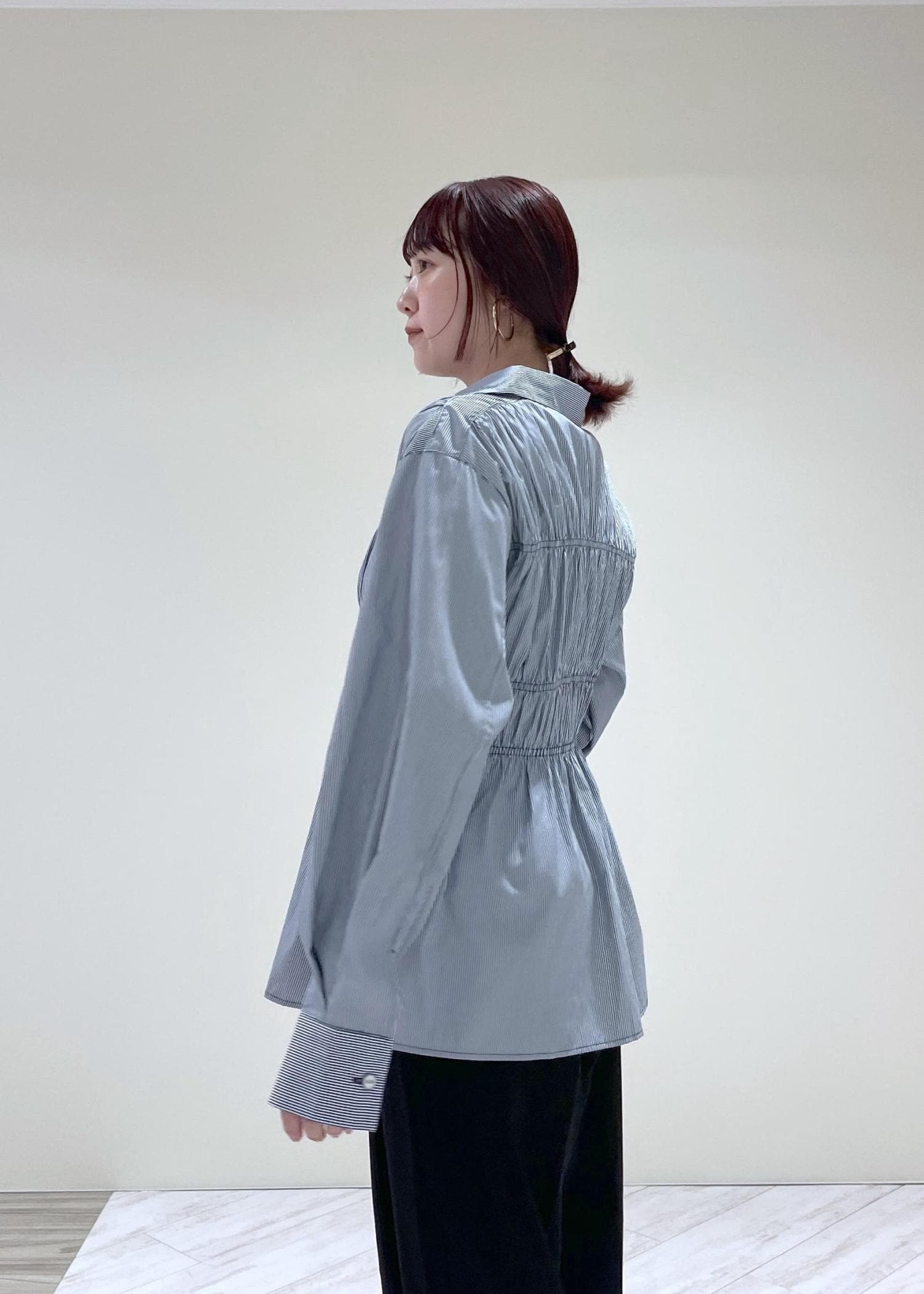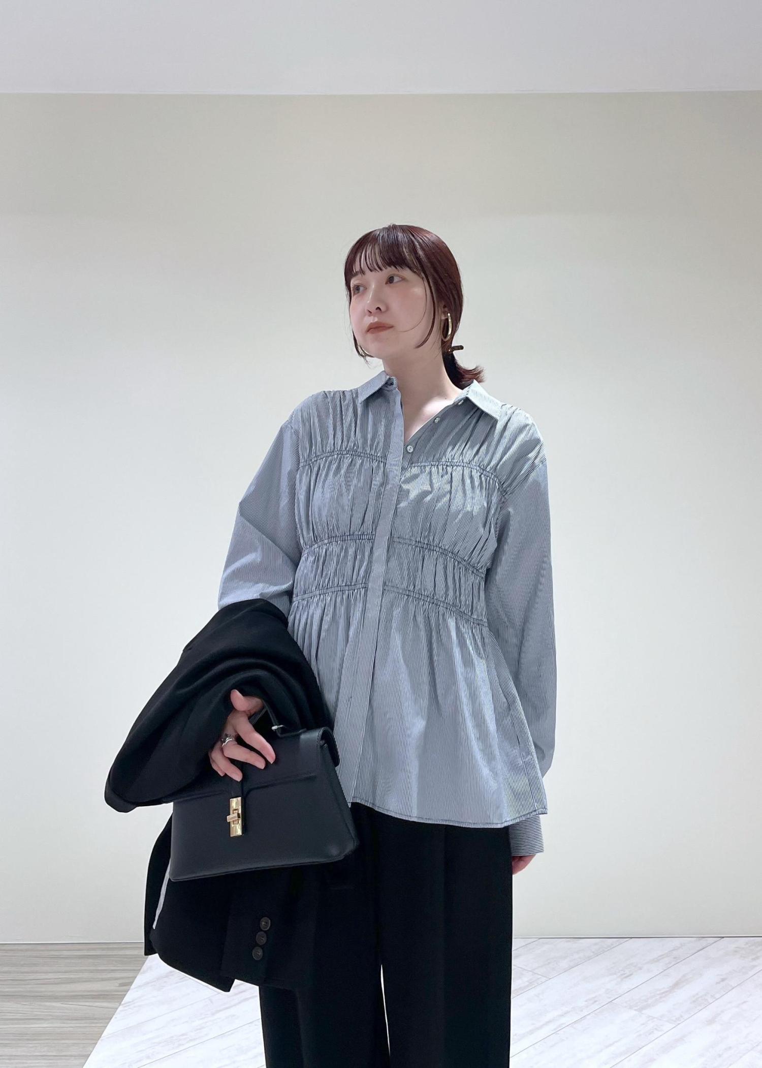 VISシャーリングデザインシャツネイビー系 / F¥5,489レビュー人気のシャーリングデザイン♡1枚でもレイヤード使いもしやすい万能アイテムです。ゆとりあるサイズ感ですが程よくボディラインに沿い、シルエットを綺麗に見せてくれます◎骨ストの気になる上半身の厚みをカバーしてくれるので重宝してます!