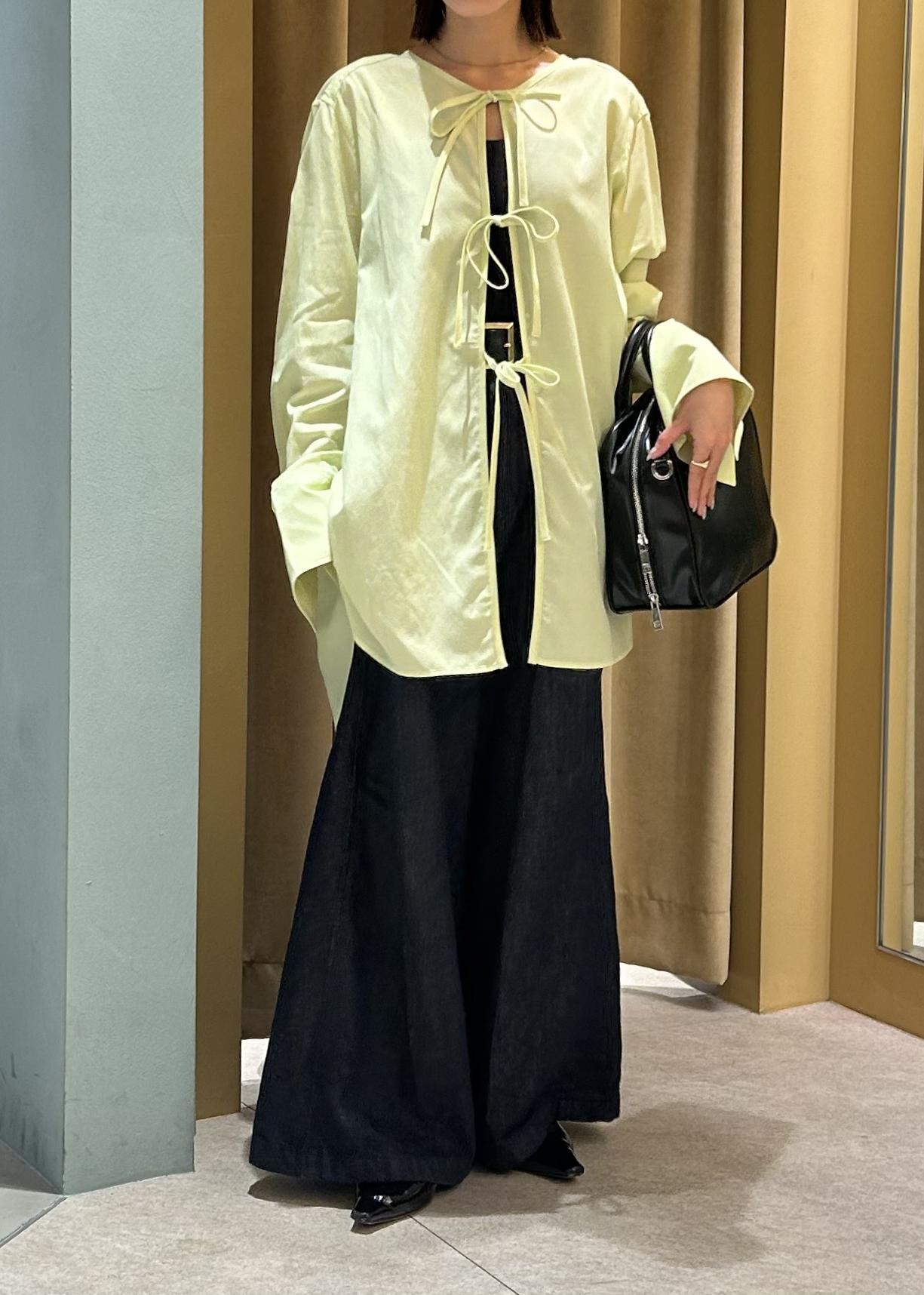 ADAM ET ROPÉ FEMME【サステナブル】リボンブラウスライトグリーン / F¥17,600レビューフロントのリボンが目を惹くブラウス♡