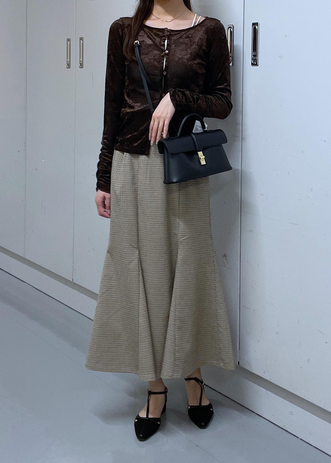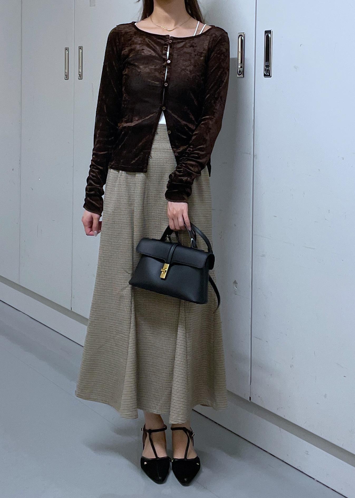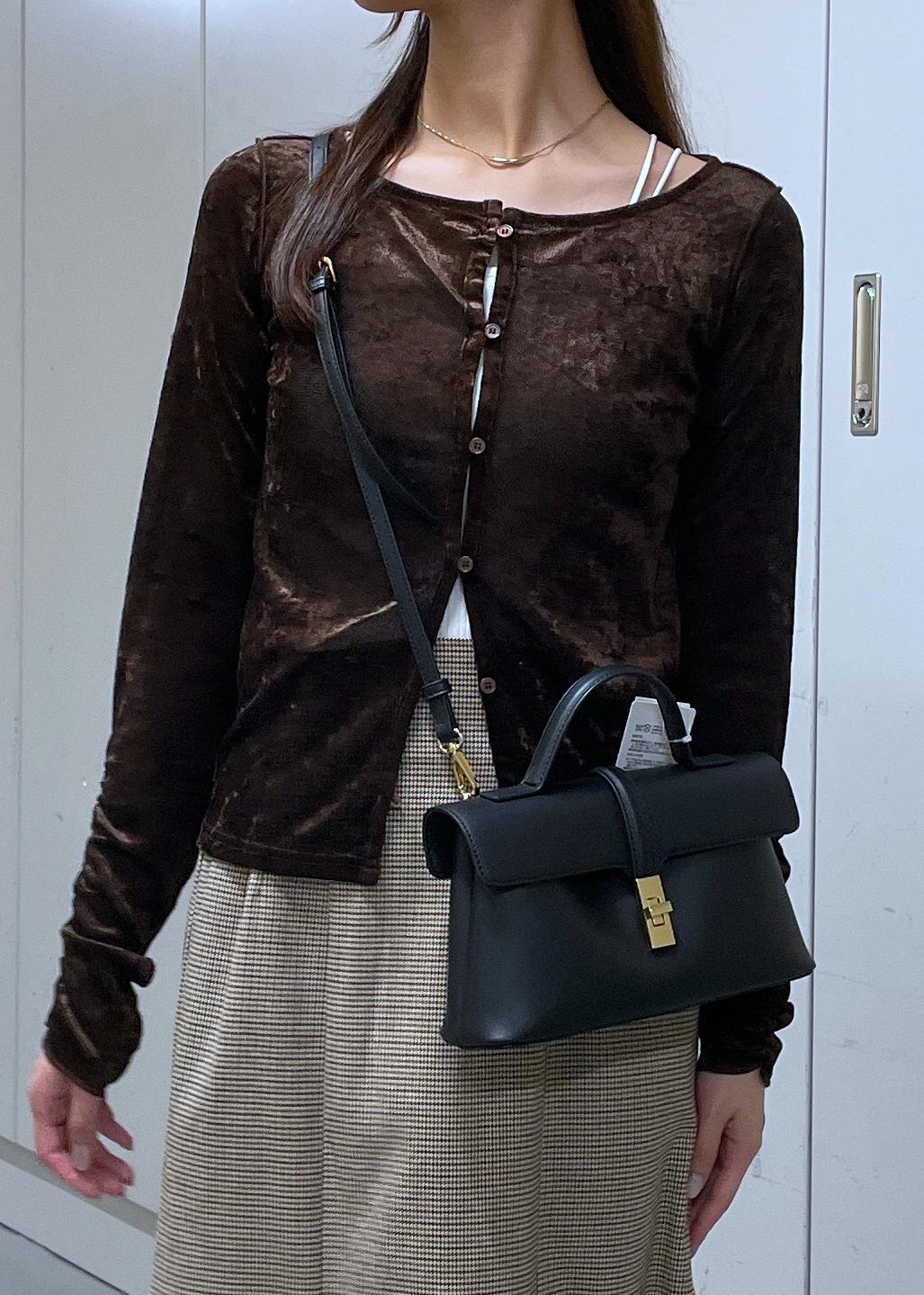 VIS【2WAY】花柄&無地アソート袖シャーリングベロアカーディガンダークブラウン / F¥3,951レビュー167cmの身長で袖の長さは余裕がありました。