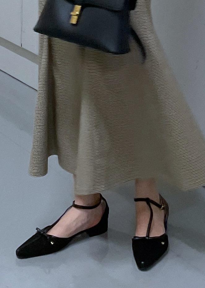 足首にストラップがついているのと足先にかけて細くなっていくので、少し圧迫感を感じやすいかもしれません。 -
