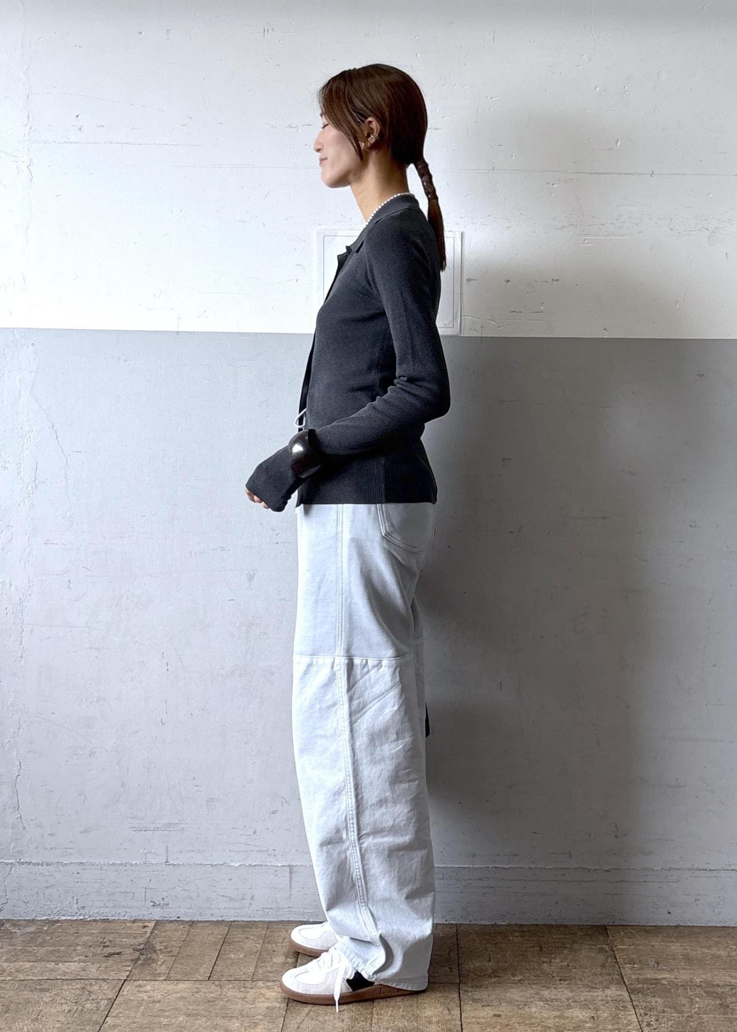 今回はすっきりシルエットのカーディガンと合わせてみました。