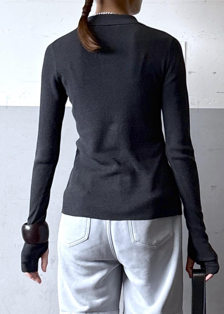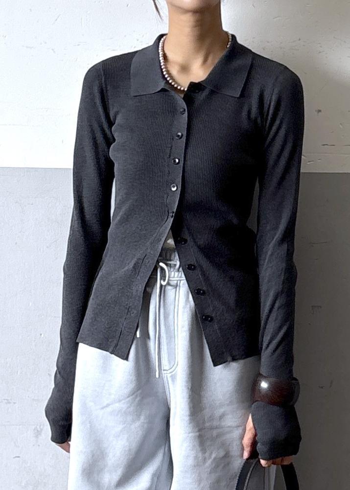 ADAM ET ROPÉ FEMMEポロニットリブカーディガンチャコール / F¥19,800レビューヒップにかかるくらいの着丈です。